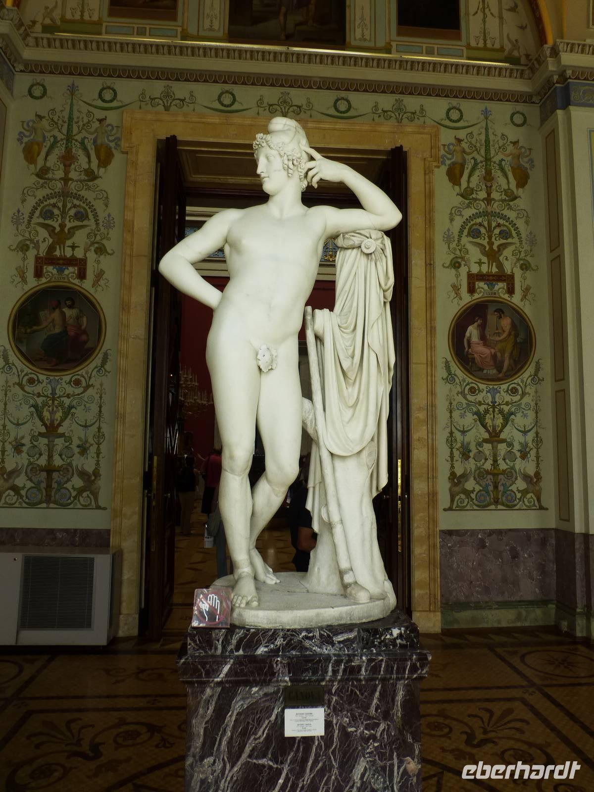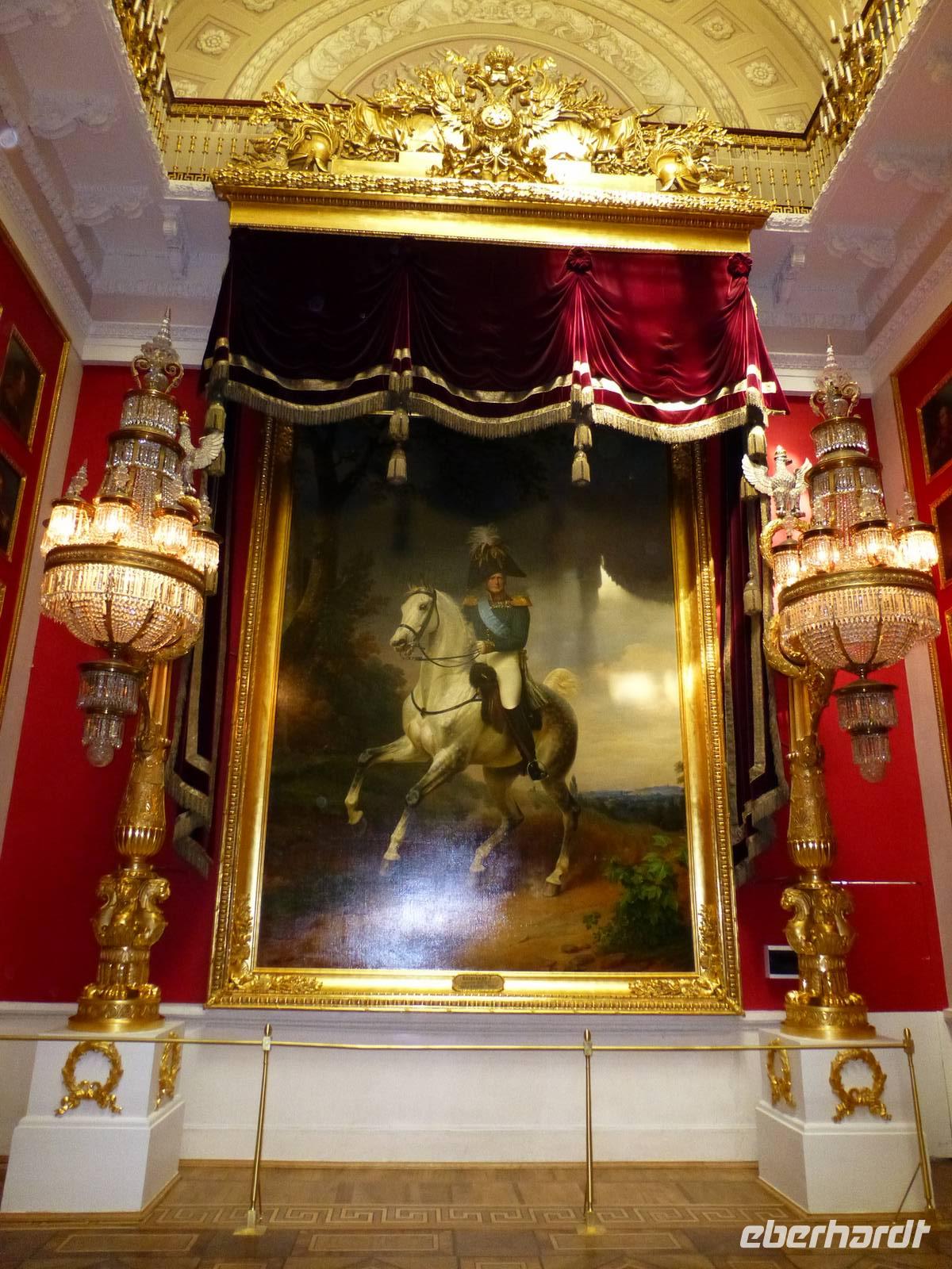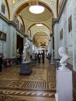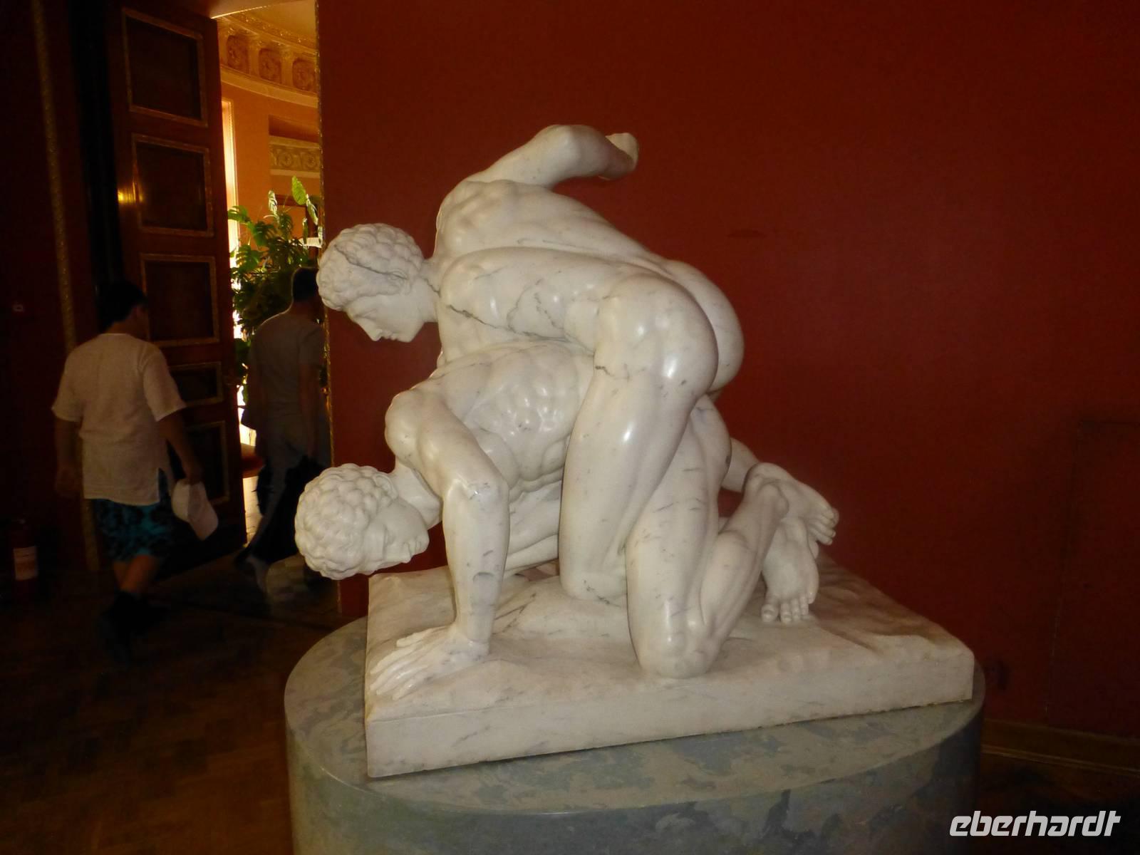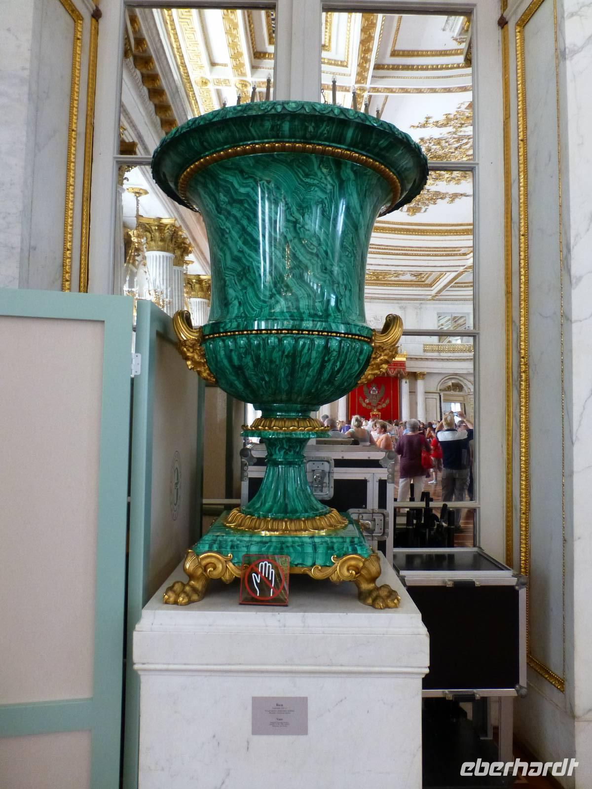 Nach einer kurzen Mittagspause reihten wir uns in die zu diesem Zeitpunkt noch kurze Warteschlange vor der Eremitage ein und standen schon einige Minuten später inmitten großer Menschenmassen in den prachtvollen Hallen der Eremitage. Ohne Natalia hätten wir wahrscheinlich erst einmal eine längere Zeit gebraucht, um uns zu orientieren. Sie allerdings führte uns sicher die imposante Jordantreppe hinauf zum Thronsaal des Winterpalasts. Überall waren Kunstgegenstände, mit Gold und Stuck verzierte Wände, prachtvolle Parkettböden - und natürlich Menschen, die diese ansehen wollten. Es war nicht immer leicht, durch diese Massen zu manövrieren, aber mit Natalias Hilfe gelang es uns allen - und es lohnte sich!