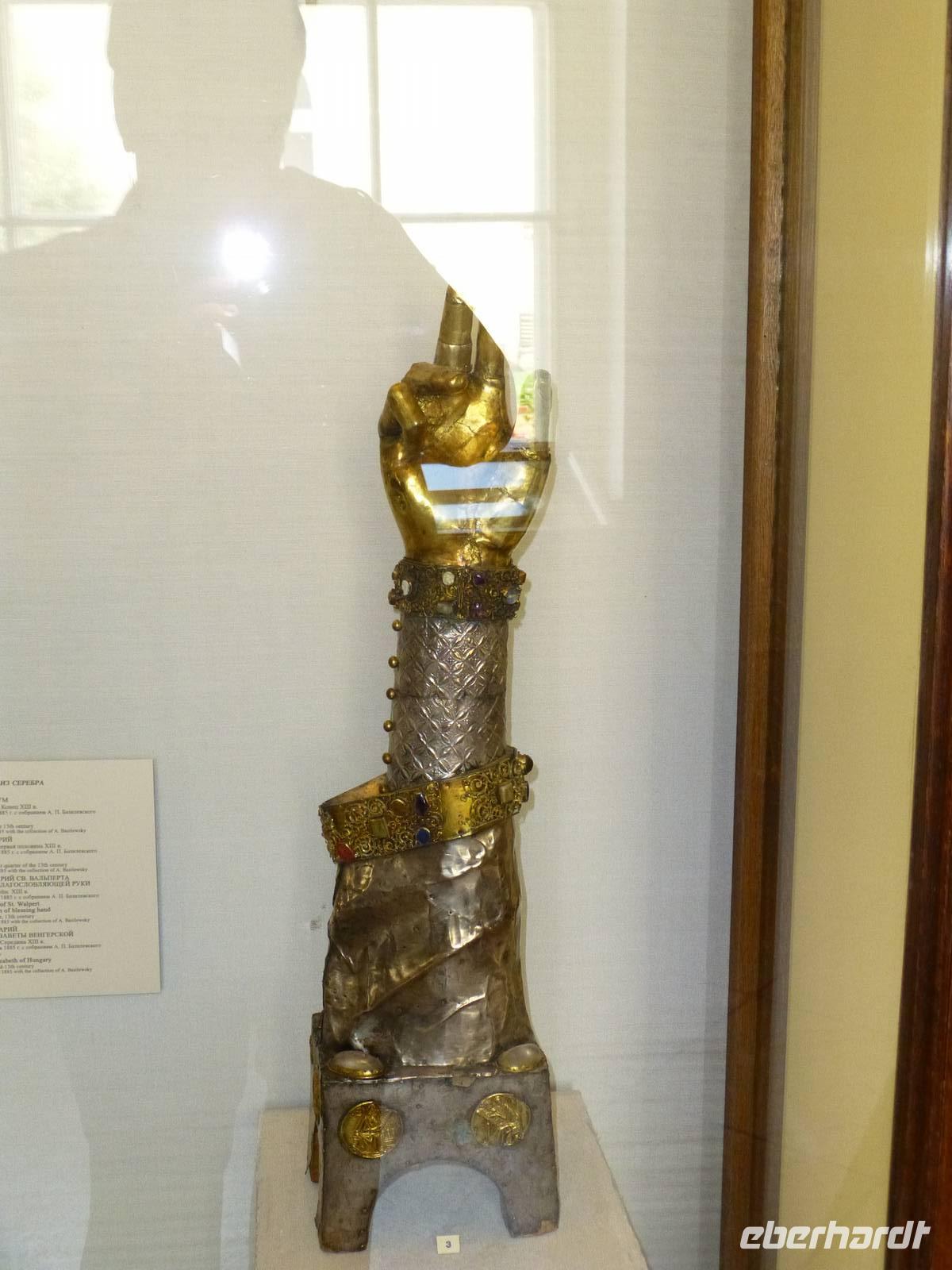 Im Anschluss durften wir noch die Wohnung von Felix Jussupow besichtigen, dem Mörder Rasputins. Und er war nicht nur der Mörder Rasputins, nein, er verübte die Tat sogar in der eigenen Wohnung, eben der Wohnung, die wir besichtigten. Natalia erzählte uns anschaulich die Geschichte um Rasputin und wie Felix Jussupow diesen mittels seiner schönen Frau in seine Wohnung lockte. Im Keller dann geschah der eigentliche Mord, für uns mit Wachspuppen nachgestellt. Nach dem Keller endete auch schon unsere kleine Besichtigung.