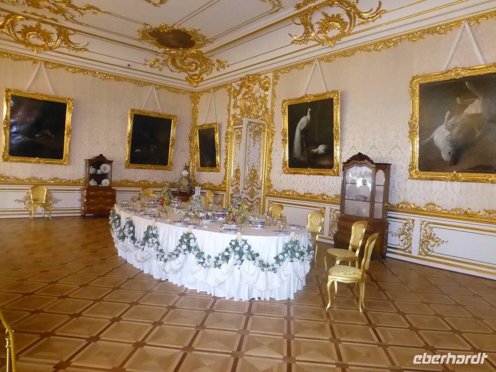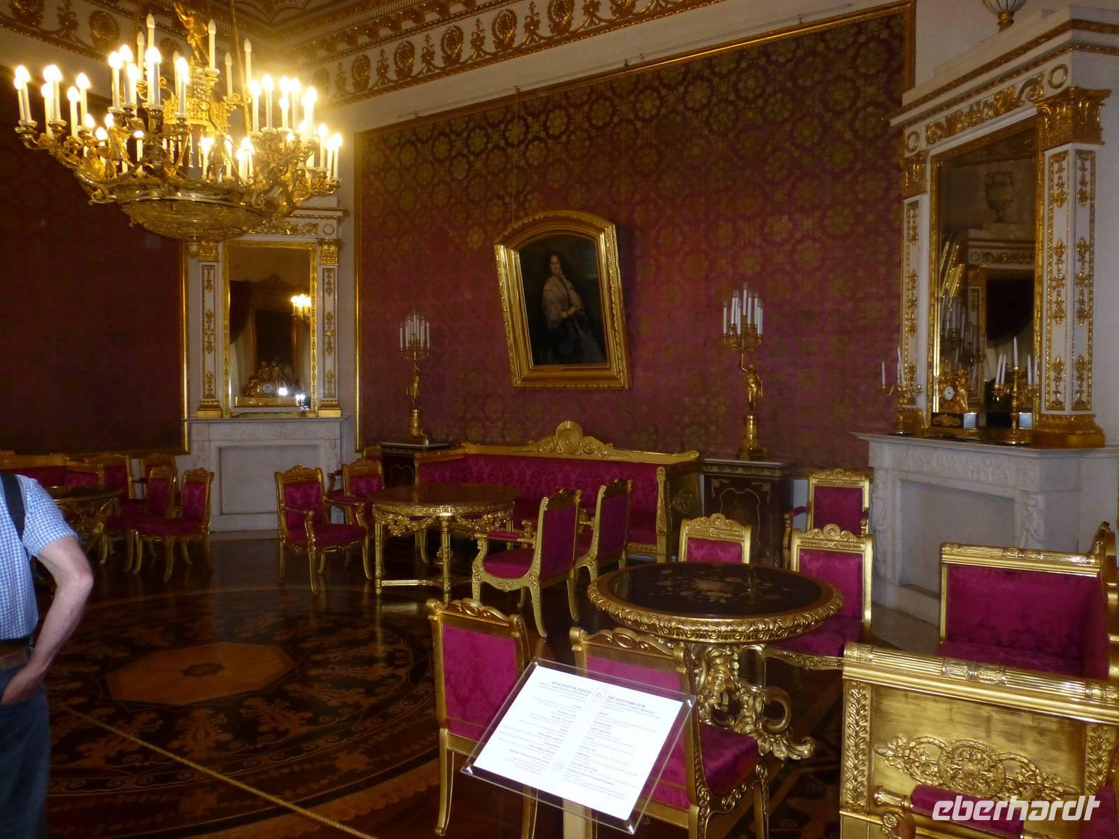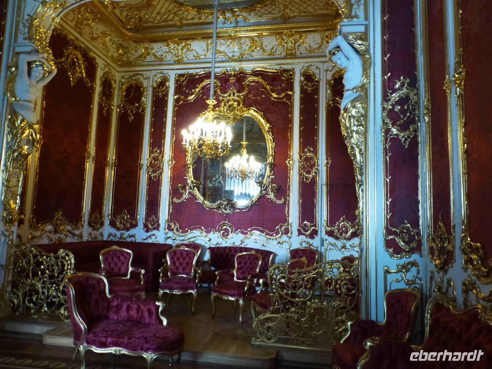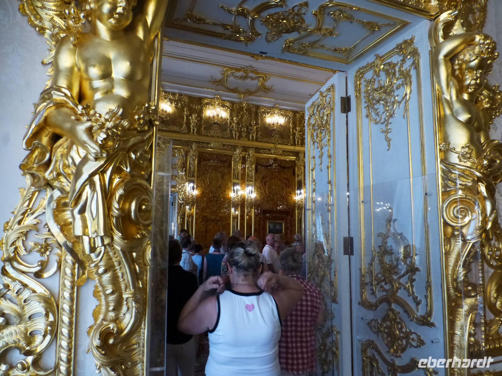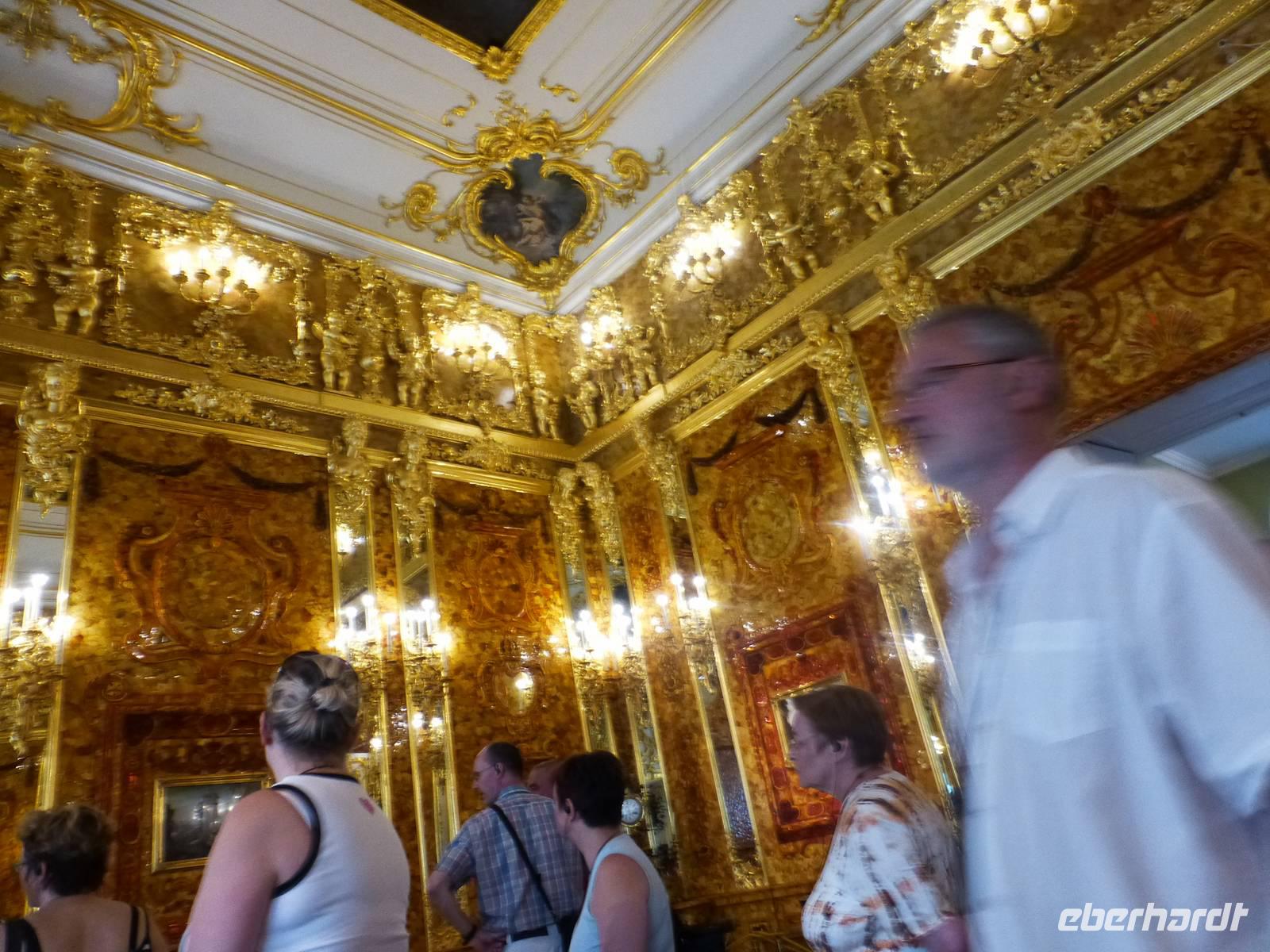 Was soll man sagen? Umwerfend. Die kompletten Wände getäfelt mit verschiedenfarbigen Bernsteinen in den verschiedensten Größen. Leider allerdings mit Fotografierverbot, was besonders schmerzhaft für die japanischen Gruppen gewesen sein dürfte. Wir konnten uns jedenfalls kaum von dem Zimmer losreißen und so war es in jedem Fall zu früh, dass wir das Zimmer wieder verließen. Ein beeindruckenderes Zimmer gab es jedenfalls auf dieser Reise kaum wieder zu bestaunen. Schöne Zimmer aber doch, denn davon durchquerten wir noch einige.