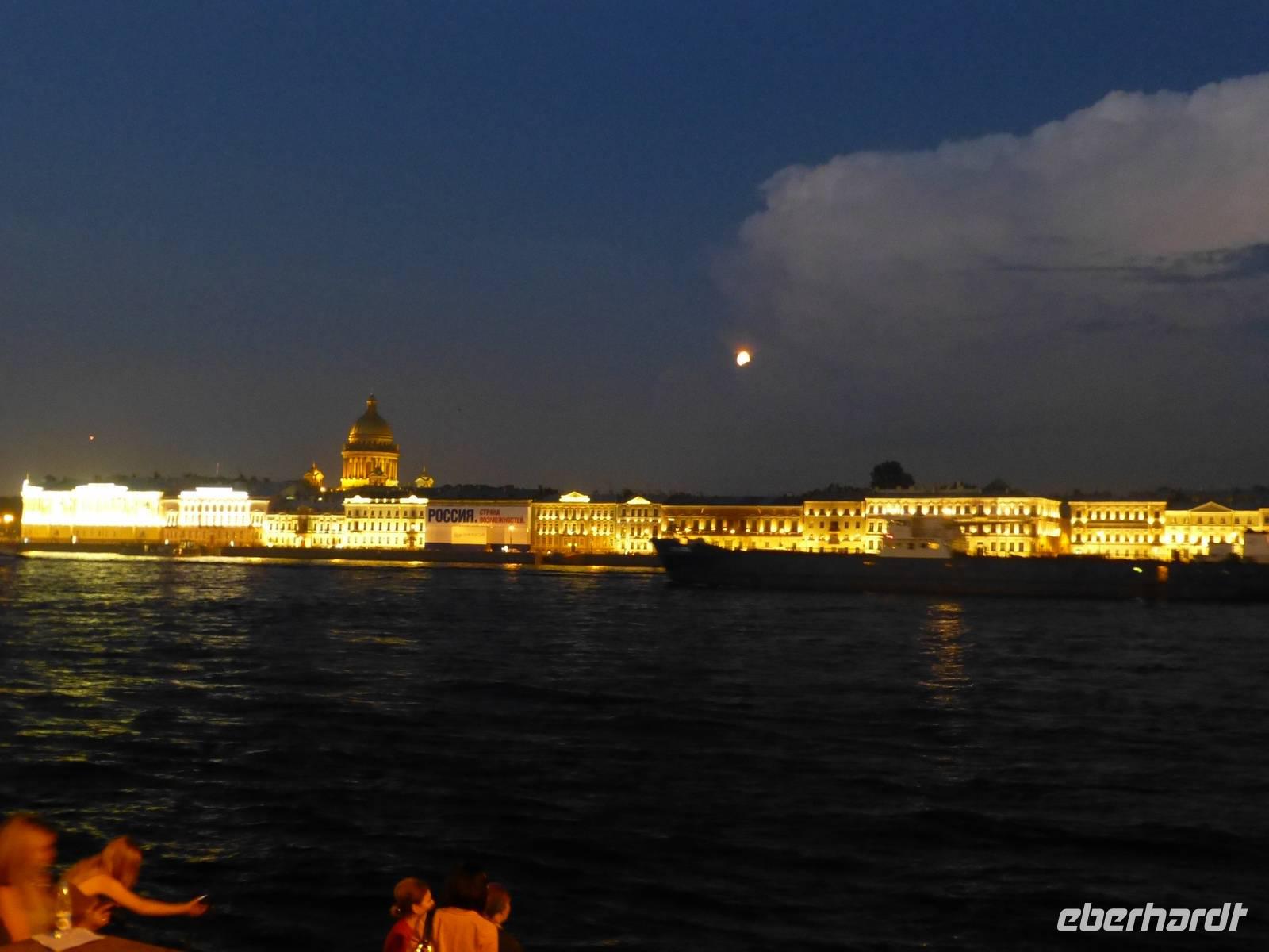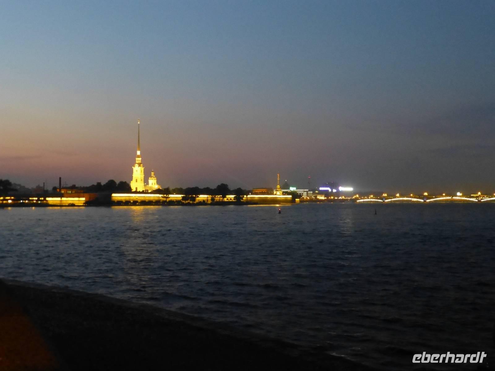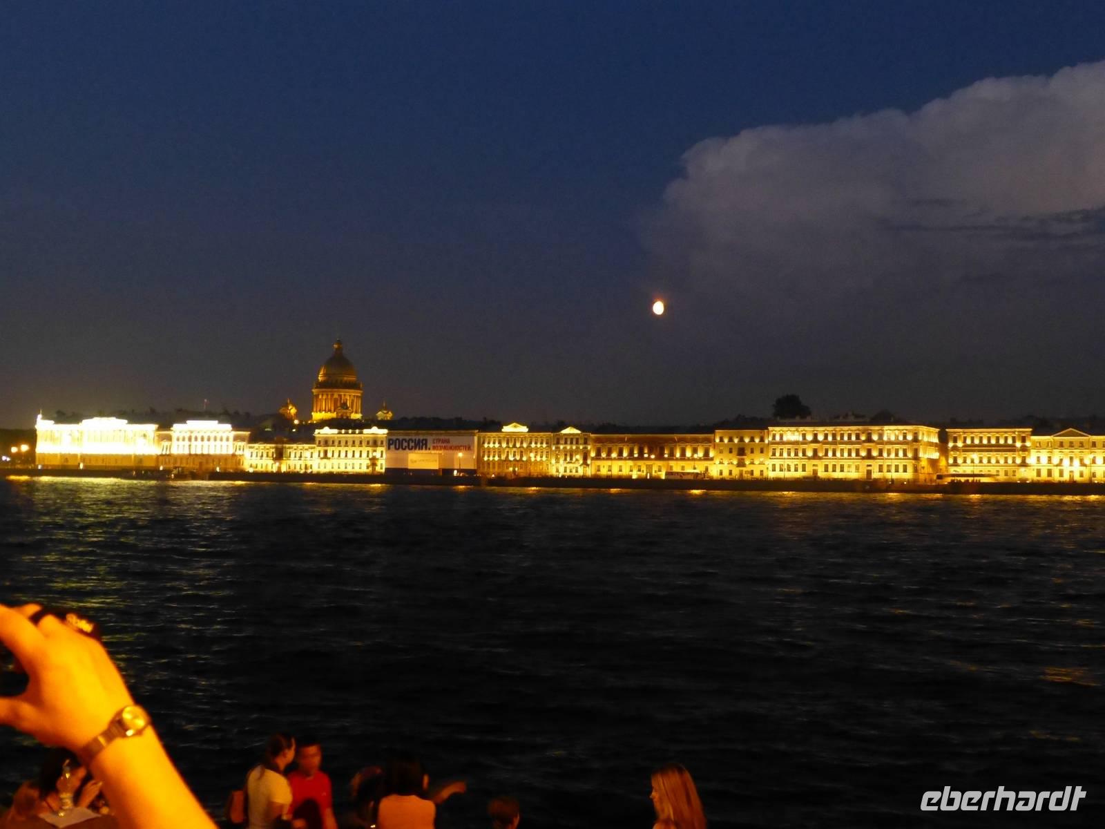Um 23.45 Uhr kamen wir nochmals vor dem Hotel zusammen - die Lichterfahrt erwartete uns. In St. Petersburg geht im Juni die Sonne erst kurz nach 0 Uhr unter, daher musste die Fahrt so spät stattfinden. Natalia hatte uns aber bereits versprochen, uns am nächsten Tag ausschlafen zu lassen, von daher kein Problem.