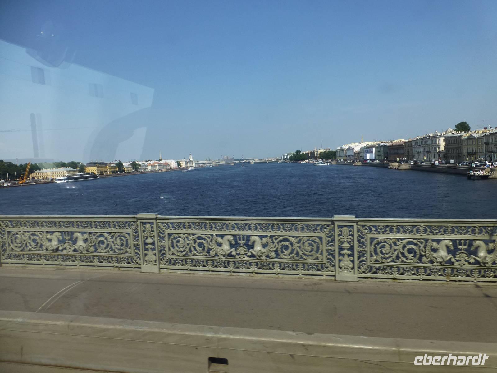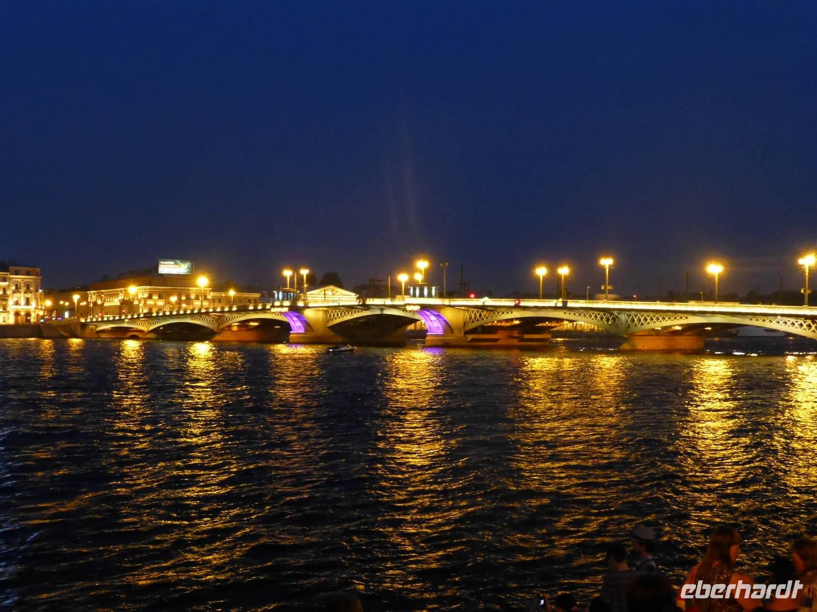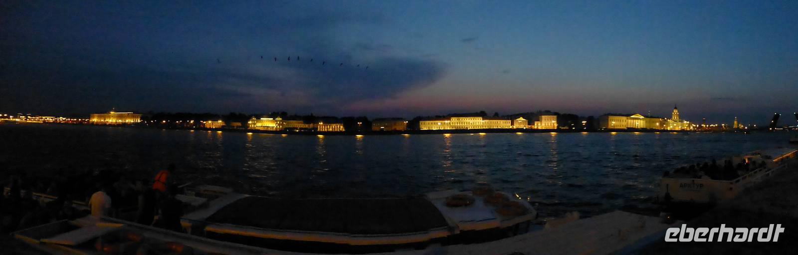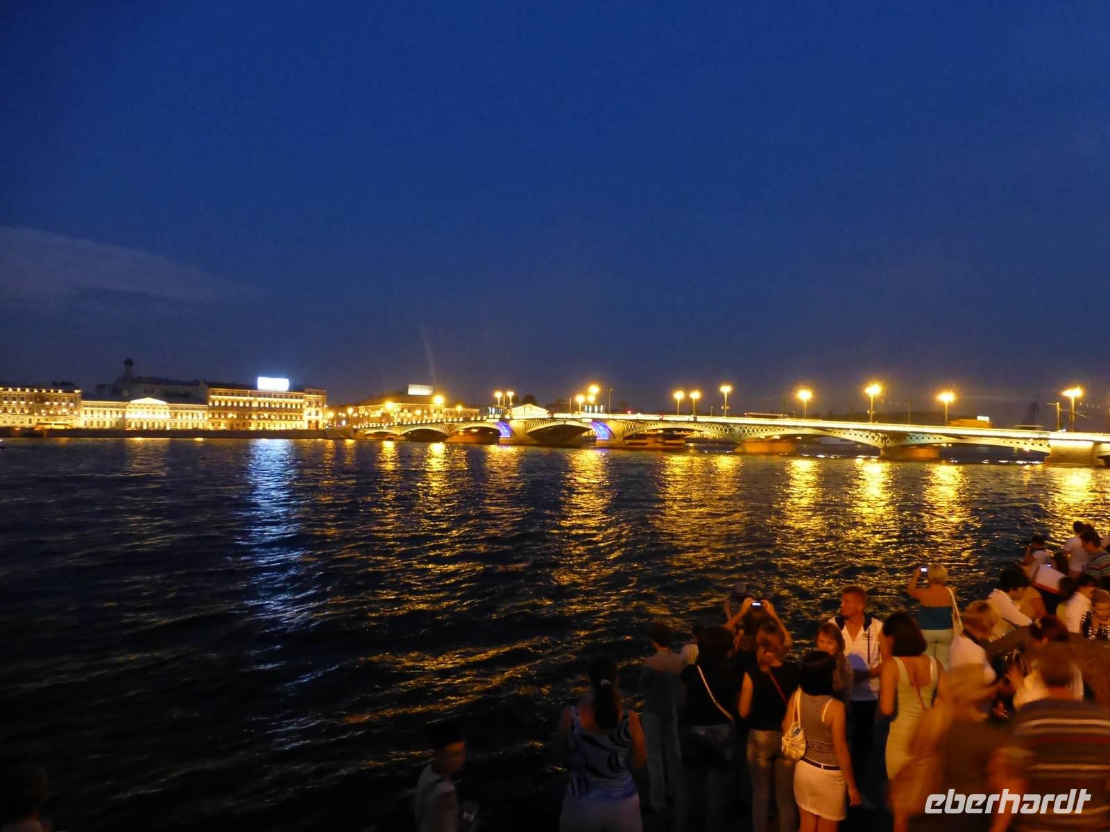 Um 23.45 Uhr kamen wir nochmals vor dem Hotel zusammen - die Lichterfahrt erwartete uns. In St. Petersburg geht im Juni die Sonne erst kurz nach 0 Uhr unter, daher musste die Fahrt so spät stattfinden. Natalia hatte uns aber bereits versprochen, uns am nächsten Tag ausschlafen zu lassen, von daher kein Problem.