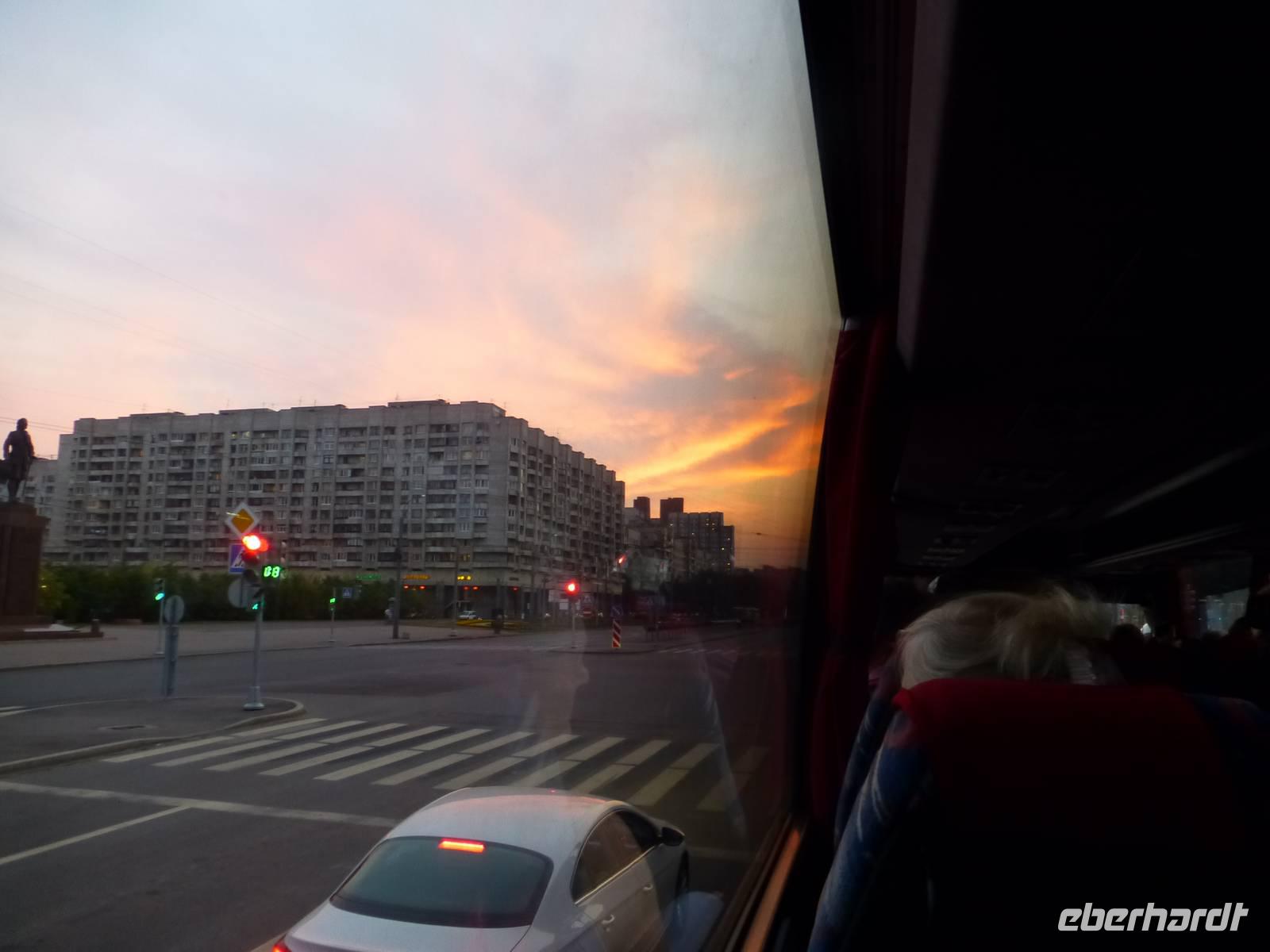 Auf der Heimfahrt dann verabschiedeten wir uns schon einmal von Natalia und Wadim, die uns so sicher und immer hervorragend durch ihre Stadt gebracht hatten. Einer der russischsprachigen Gäste fand zum Abschied noch ein paar schöne Worte für die beiden. Sicherlich würden wir beide bei einem erneuten Besuch sehr gerne wiedersehen.