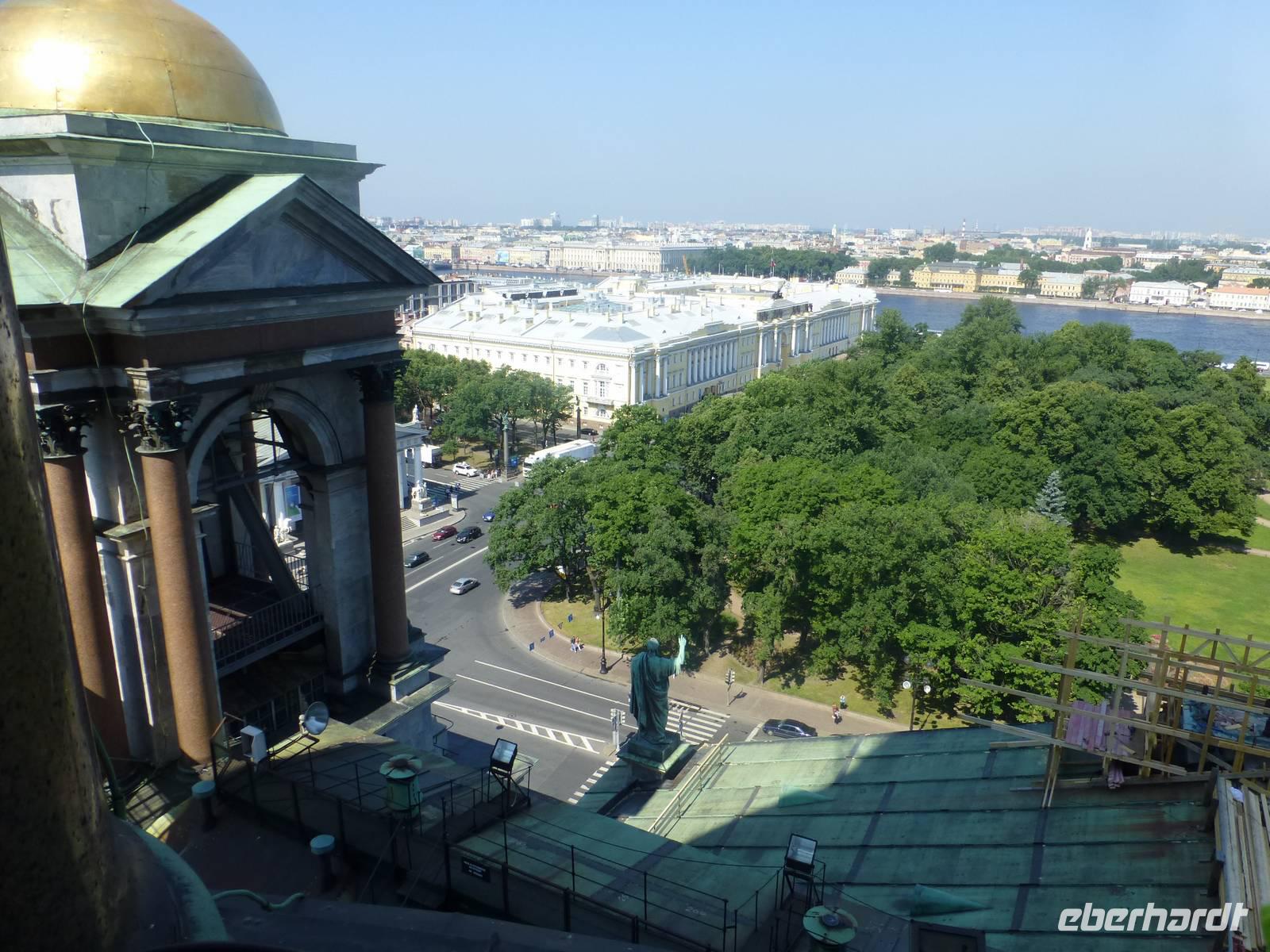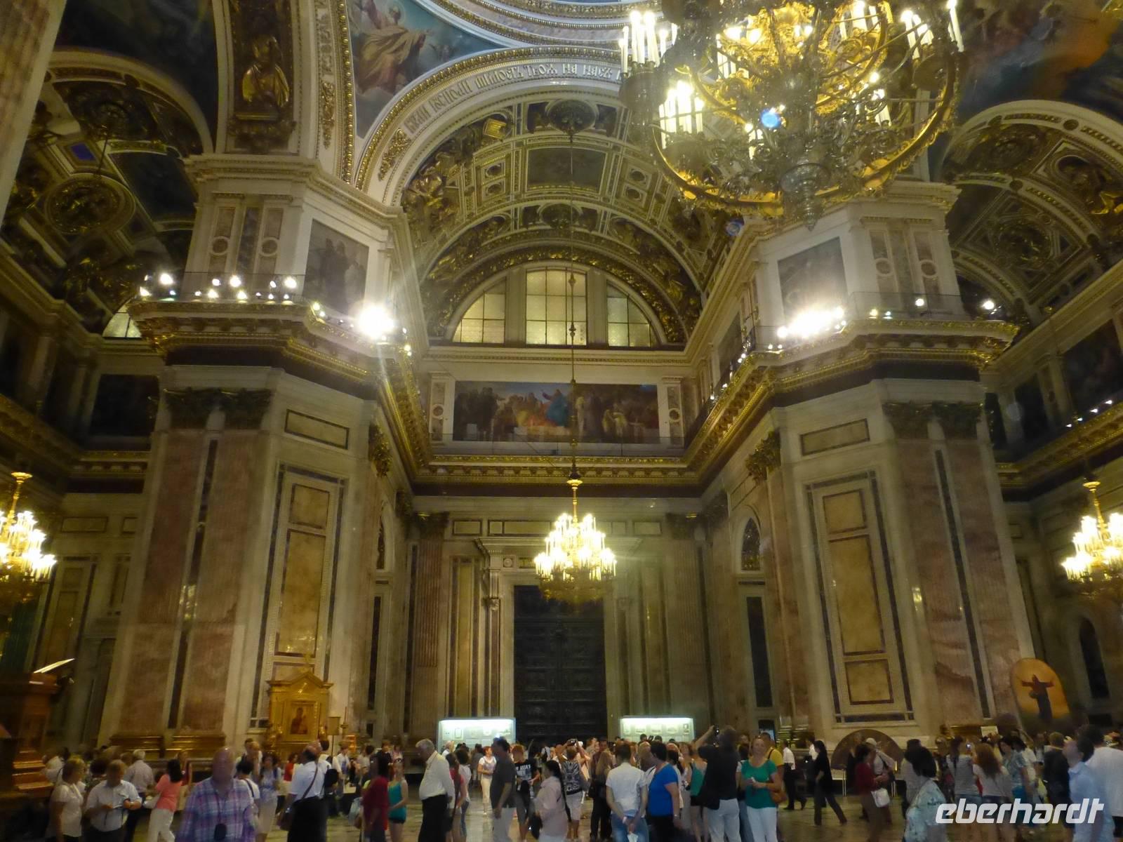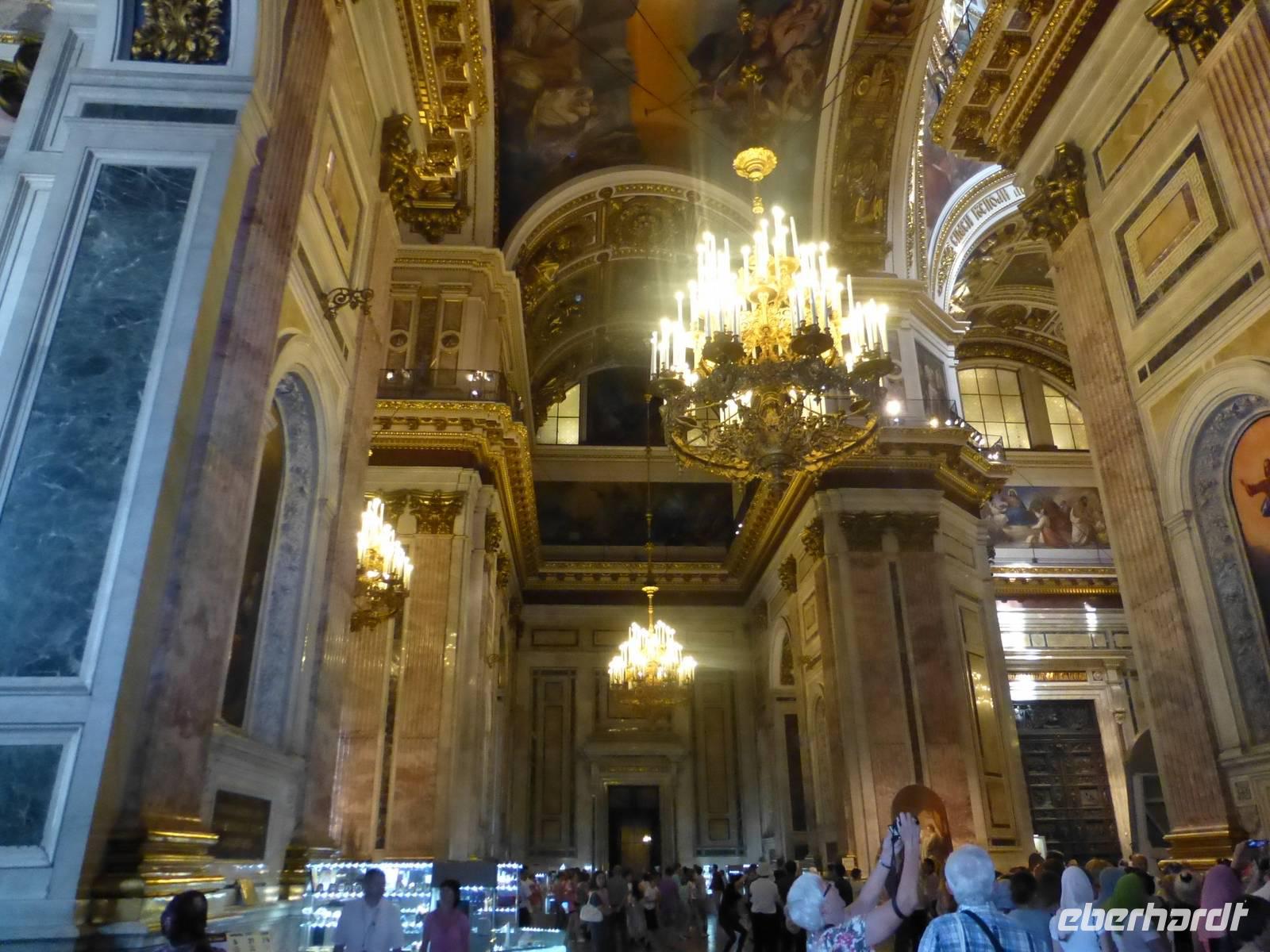 Wir fuhren gemeinsam zur Isaaks-Kathedrale, mit ihrer Kuppel eines der markantesten Gebäude der Stadt. Während Natalia unsere Eintrittskarten organisierte, betrachteten wir schon mal eingehend das Äußere der Kathedrale. Dann durften wir sie betreten und waren im Inneren sicherlich erst einmal von dem riesigen Raum beeindruckt. 10.000 Menschen sollen in diesem Raum Platz finden können, glücklicherweise mussten wir das an diesem Tag nicht unter Beweis stellen.