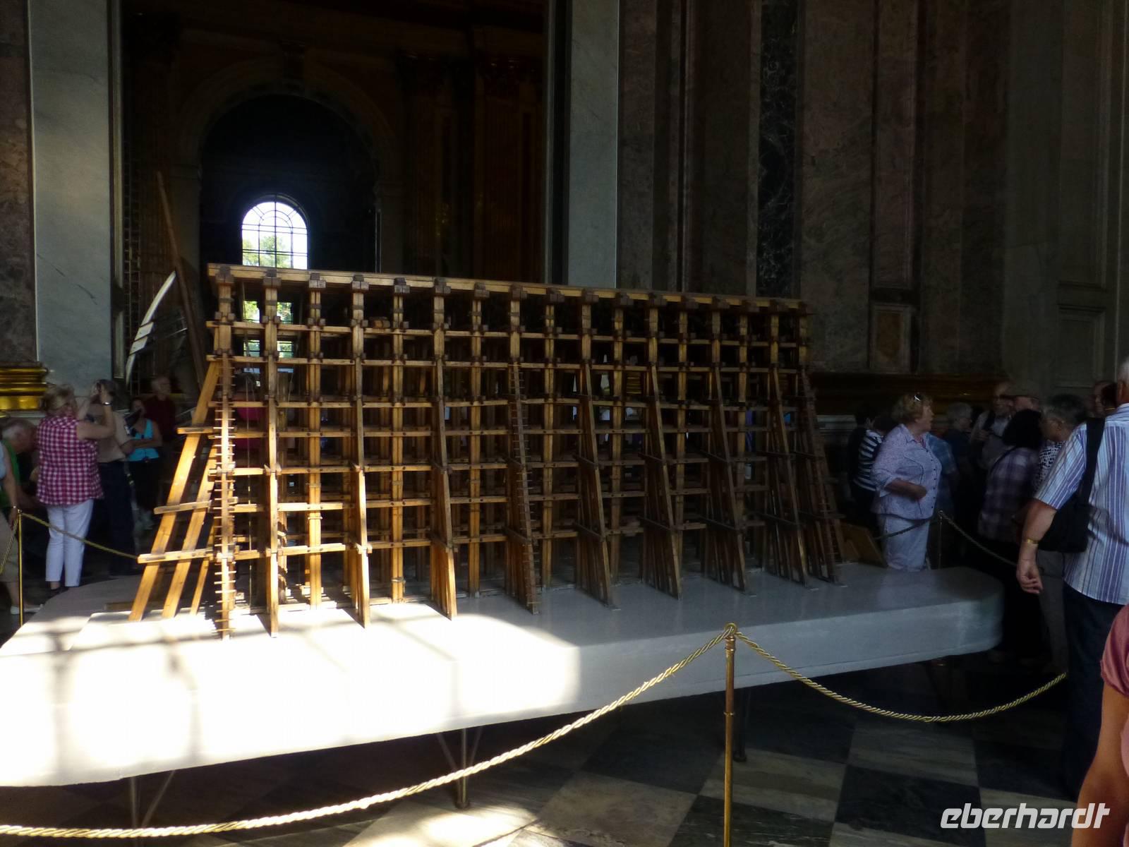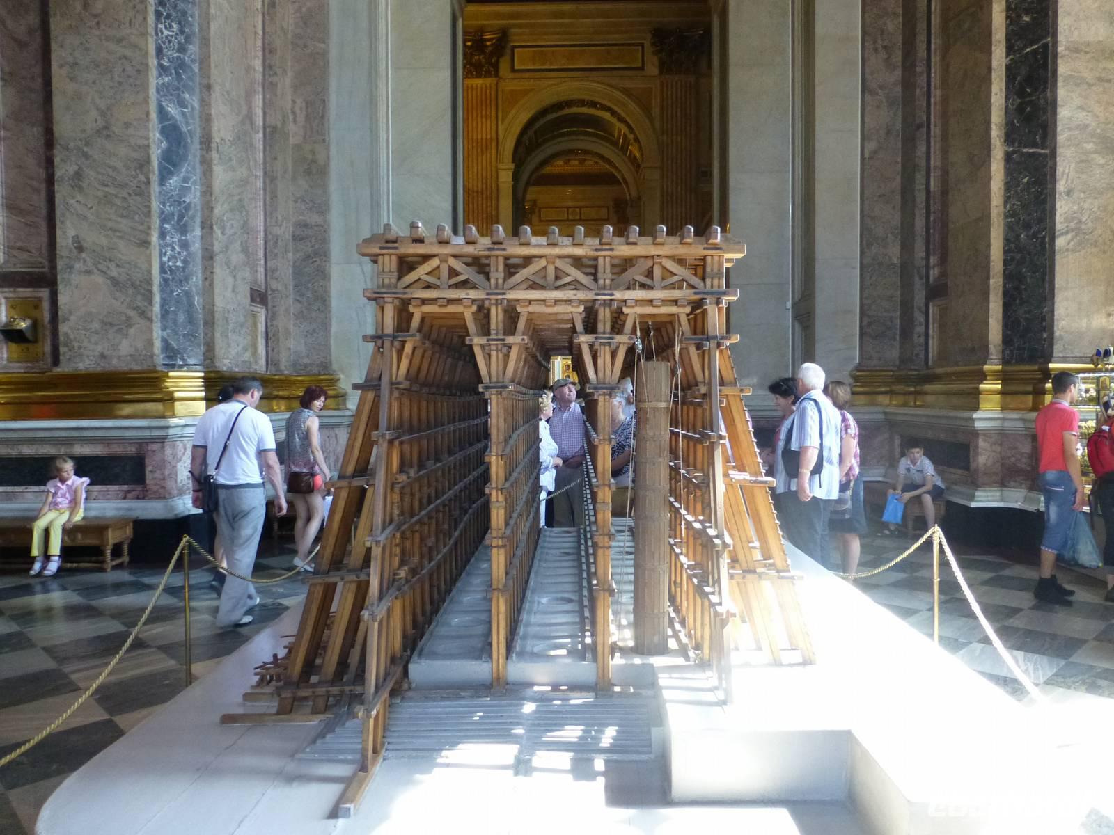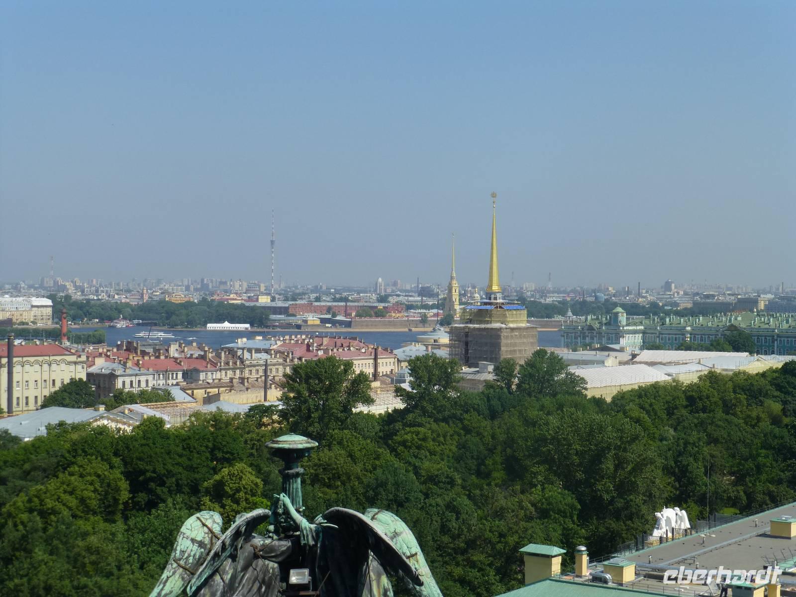 Natalia führte uns einmal durch das komplette Gebäude, erzählte uns viel zur Entstehung der Kathedrale, die sozusagen drei Vorgängermodelle hatte, über den Architekten Auguste de Montferrand und natürlich zur Kathedrale an sich. Wir sahen auch das Zentrum der Kathedrale unter der Kuppel, aus der zu Sowjetzeiten ein gewaltiges Focaultsches Pendel herabhing. Heute hing unter der Kuppel wieder ein Vogel, wie vor der Sowjetzeit.