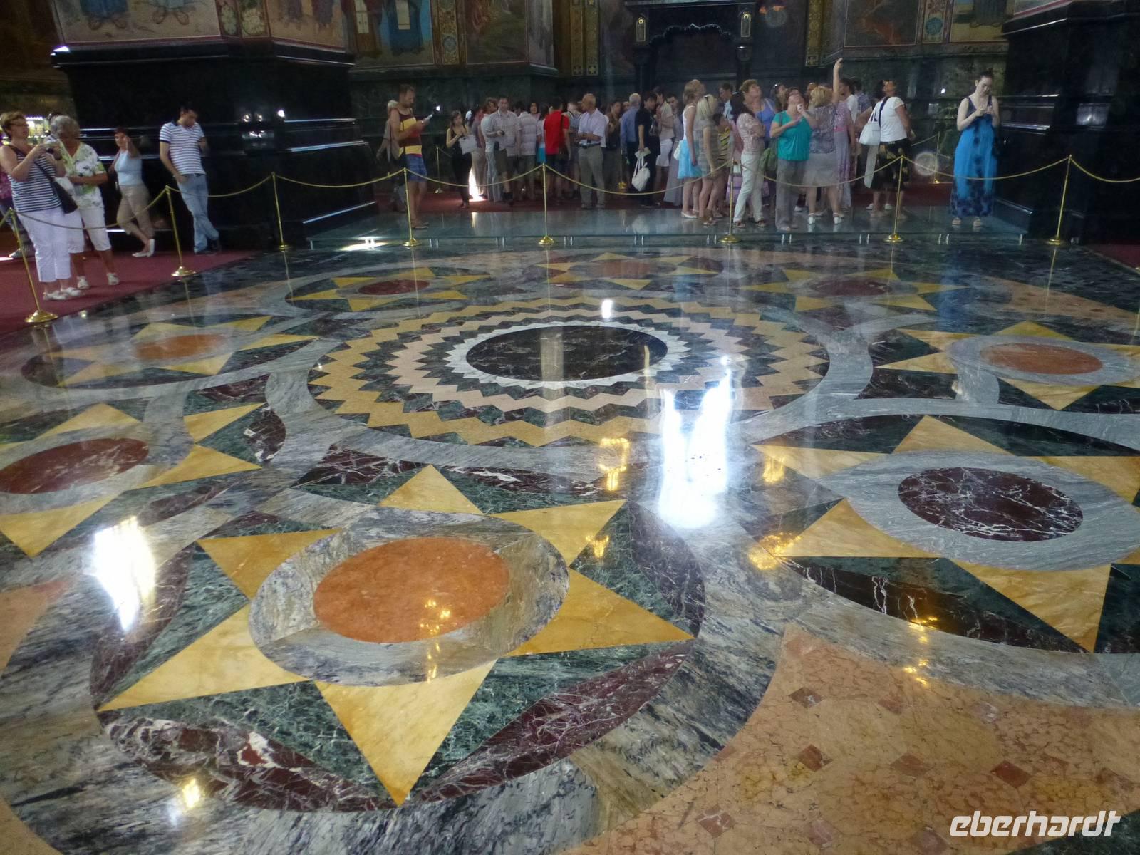 Und natürlich sahen wir auch den Platz mit den Originalpflastersteinen, an dem das Attentat auf Zar Alexander I. verübt worden war, daher auch der Name Erlöserkirche auf dem Blut oder eben kurz Blutskirche.