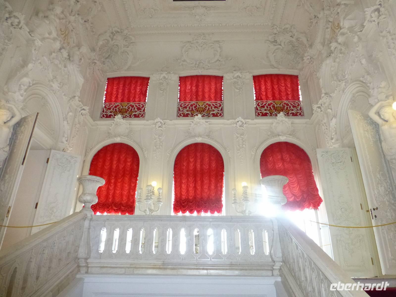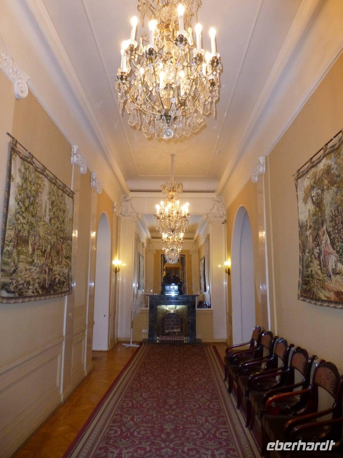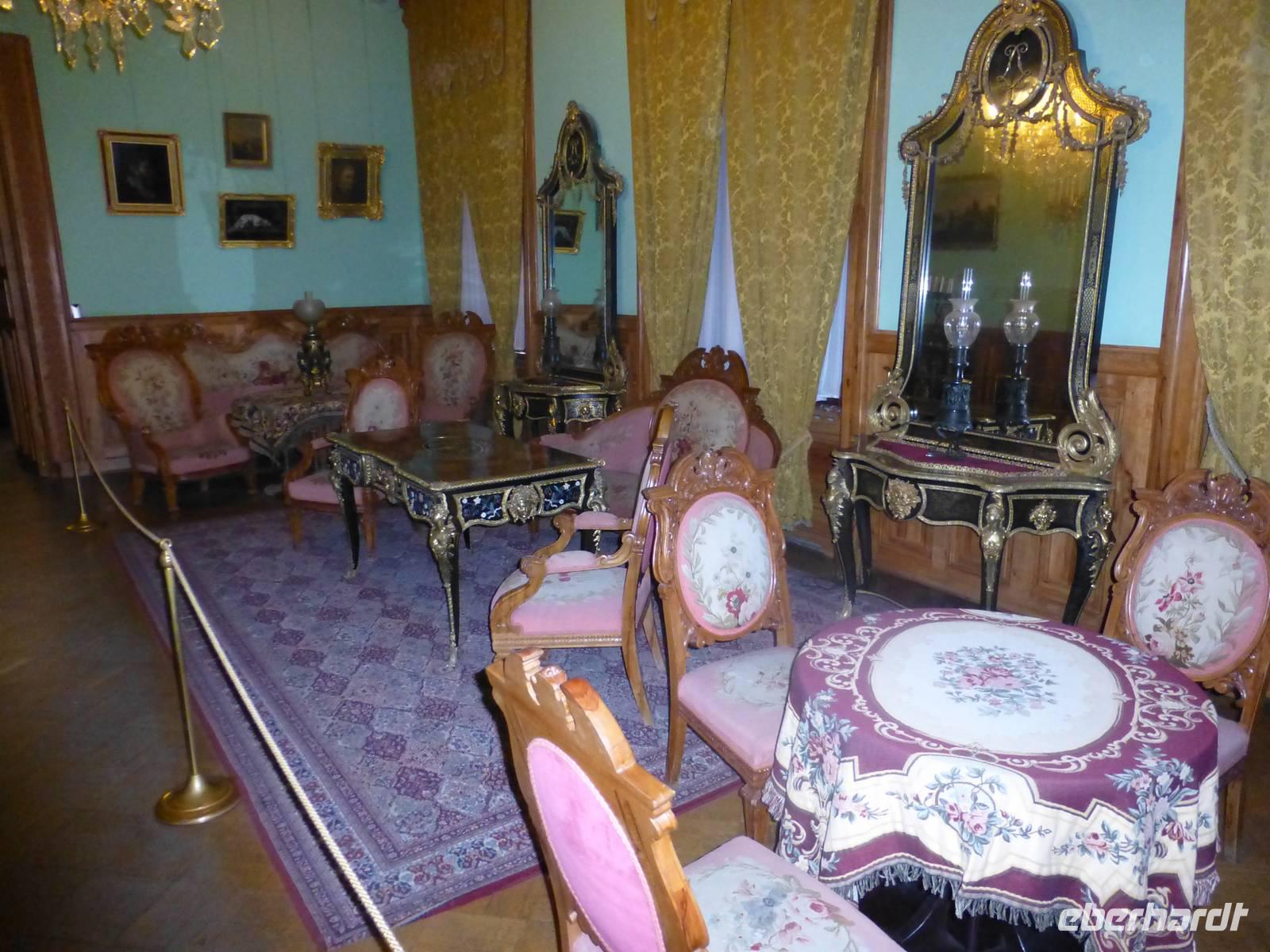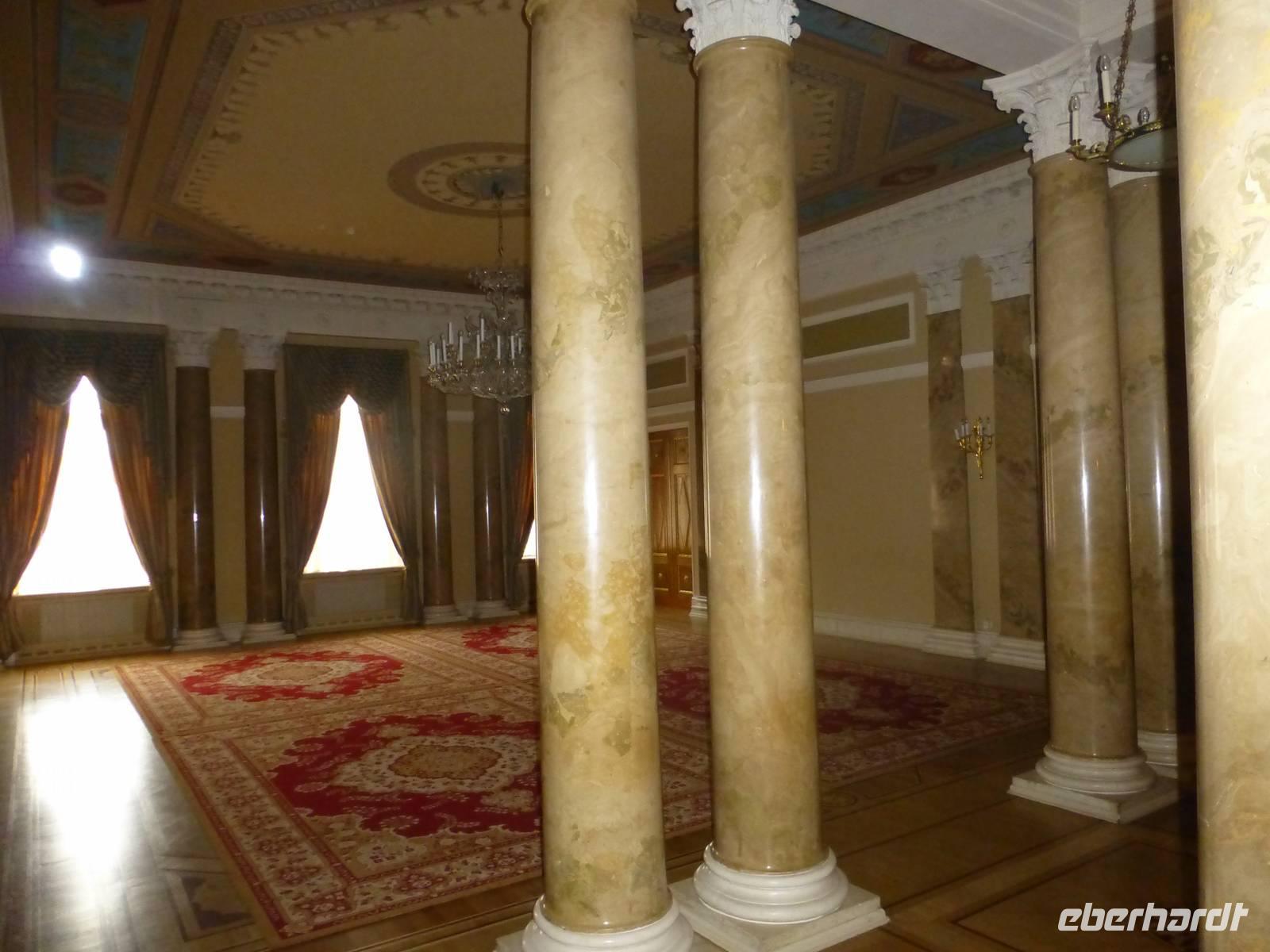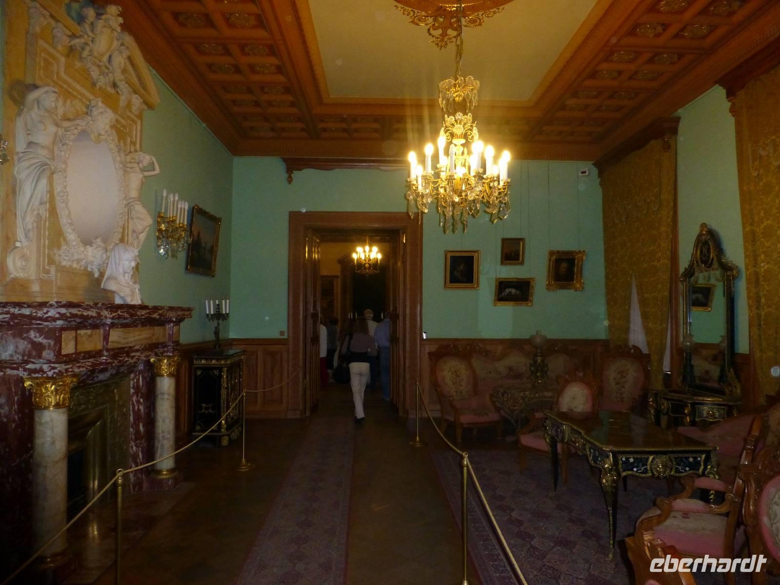 Und wieder einmal wurden wir nicht enttäuscht, keiner der bisherigen Paläste konnte mit der Vielfalt des Jussupow-Palasts mithalten. Wir sahen eine wunderbare Bibliothek, ein Billardzimmer, holzgetäfelte und seidenbespannte Gästezimmer, ein eigenes Theater und sogar einen kleinen Konzertsaal.