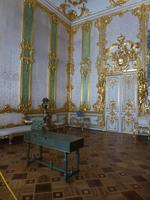 Eindrucksvoll war schon das große Treppenhaus, das komplett in weiß gehalten war - bis auf die roten Vorhänge. Der große Saal im Anschluss war ebenso atemberaubend, überall Gold und Spiegel und eine eindrucksvolle Deckenmalerei. Wir gingen weiter und sahen Katharinas Musikzimmer, Schlafgemach und Gästezimmer. Und dann kamen wir in ein ganz besonderes Zimmer, bei dem einige äußerten, dass sie nur für diesen Anblick nach St. Petersburg gekommen waren: Das Bernsteinzimmer.