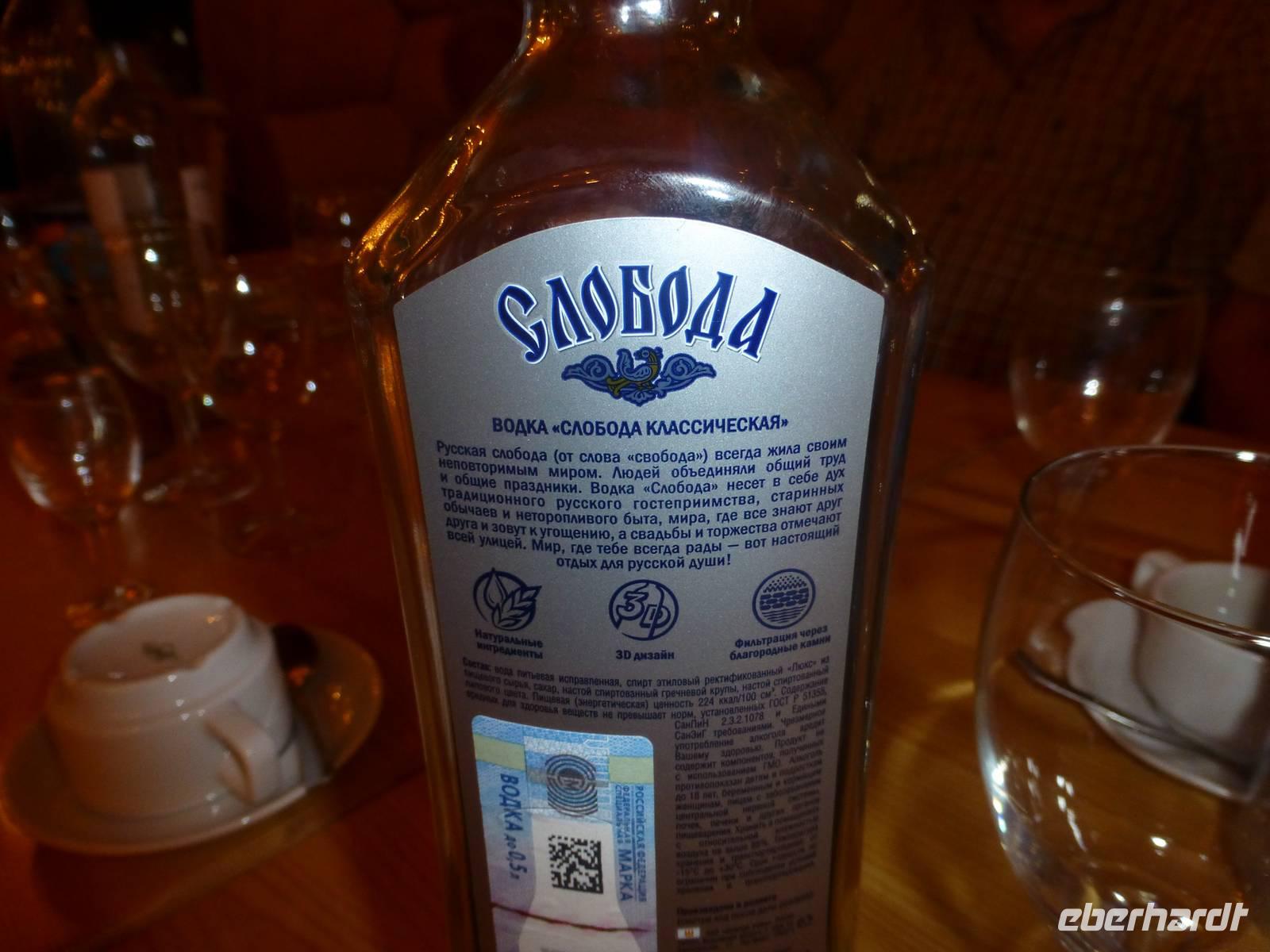 Die Rundfahrt führte uns wieder über die Brücken auf die Uferseite der Stadt, und dort zu einem örtlichen Souvenirgeschäft. Bevor es dort jedoch ans Shoppen ging, betraten wir ein Hinterzimmer, in dem uns Wodka und Kaffee angeboten wurden. Wie Natalia erzählte, trinkt man Wodka zu jeder Gelegenheit in Russland. Uns fiel es nicht schwer, uns diesem Brauch zu fügen - Oder wie Natalia es ausdrückte: Nur das erste Glas ist schwierig, der Rest trinkt sich fast wie von selbst.