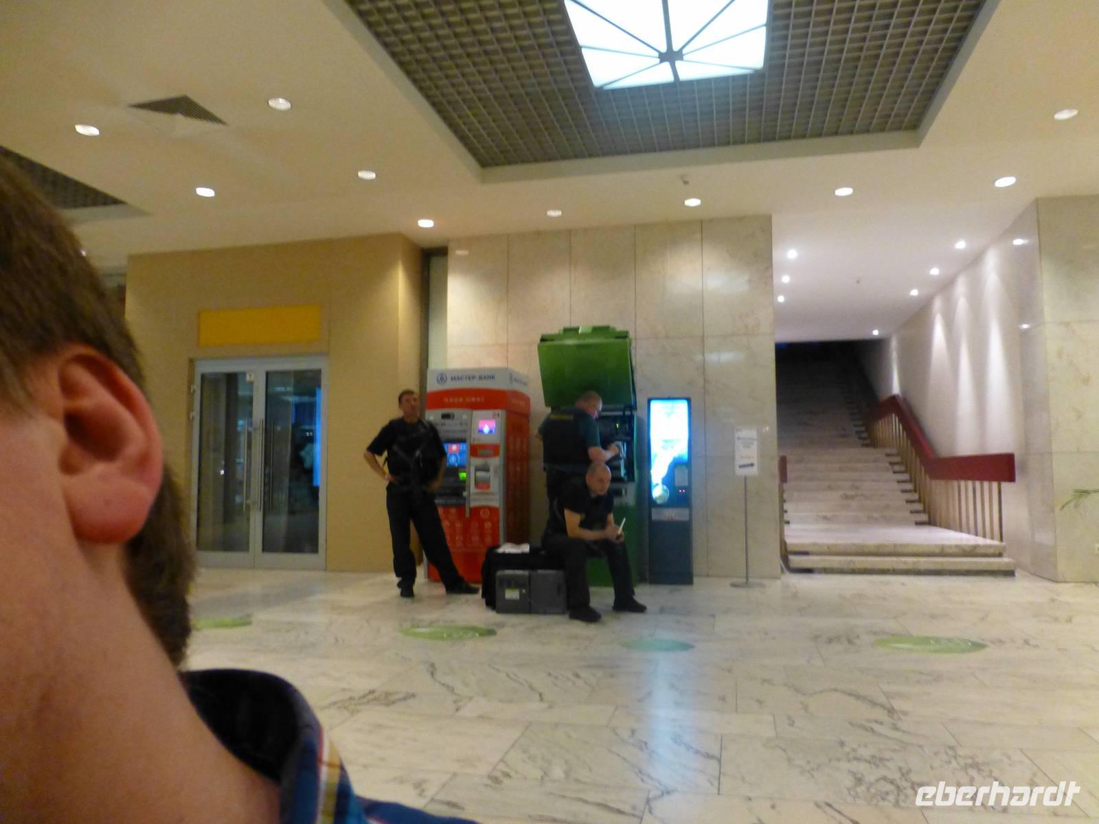 Und dann erwartete uns unser erstes tatsächliches Abenteuer auf russischem Boden: Die Passkontrolle im Flughafen. Sah am Gate noch alles normal aus, so bot sich in der Halle vor der Passkontrolle ein ganz anderes Bild: Massen von Menschen, die auf ihre Einreise in die russische Föderation warteten. Wir versuchten, die Warteschlange mit Humor zu nehmen und stellten uns brav an. Nach zwei Stunden hatten dann endlich auch die letzten von uns die Passkontrolle passiert und nahmen ihre Koffer in Empfang.
