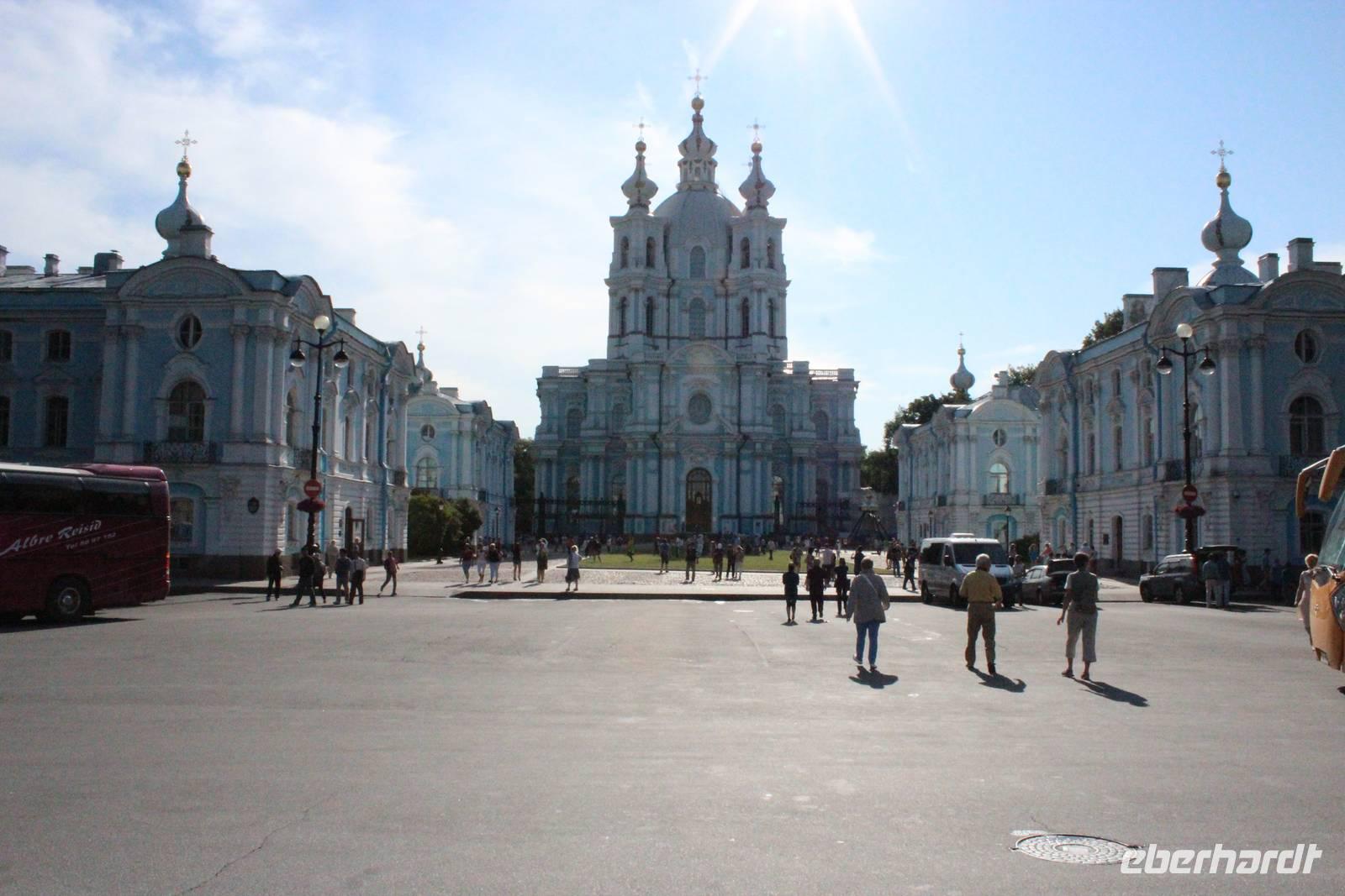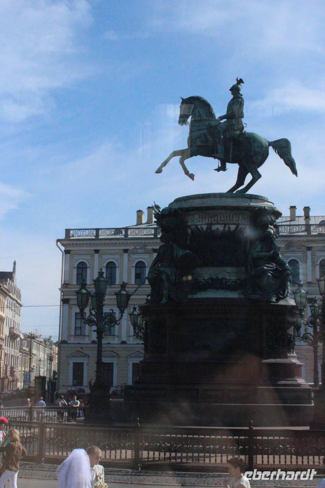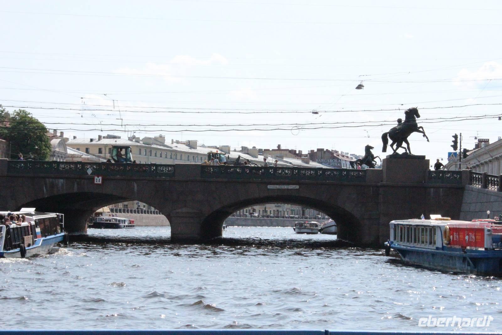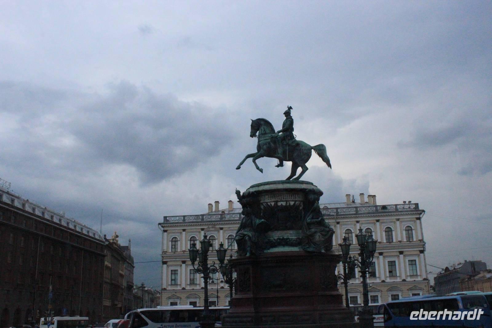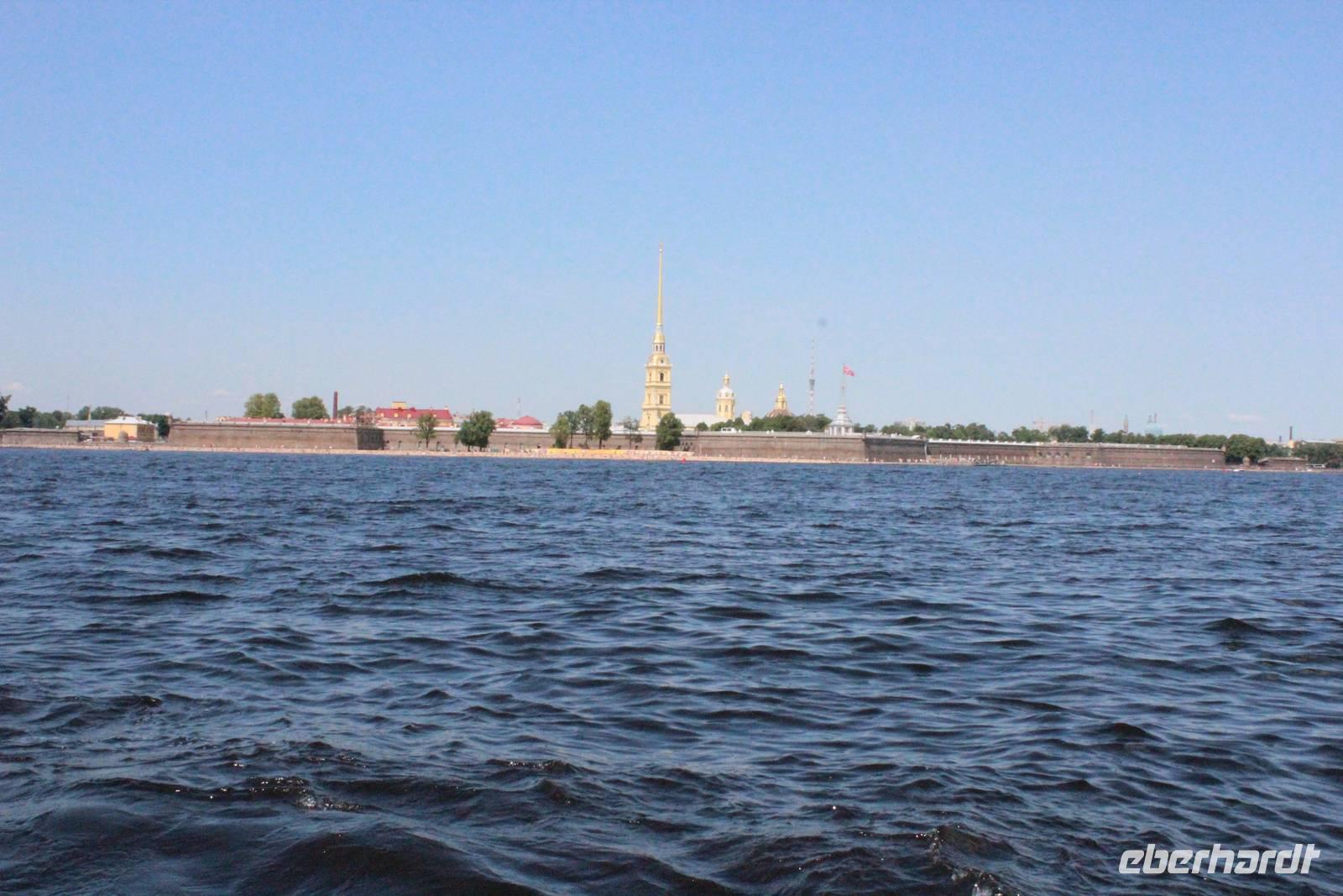 Halb Elf starteten wir zu Fuß zur Eremitage, welche nur etwa 15min entfernt von unserem Hotel lag. Dabei liefen wir auf dem Newski-Prospekt entlang unter dem Triumphbogen hindurch bis zum großen Alexanderplatz vor der Eremitage. Dort angekommen besichtigten wir ca. zwei Stunden die Räume der Eremitage, welche viele Ausstellungsstücke bereithielt. Von Wandteppichen über Kronleuchter bis hin zu Gemälden des weltbekannten Malers Leonardo Da Vinci war alles vertreten. Auch gab es viel Meißner Porzellan, ein Bild von Dresden sowie ein Bild von Pirna zu sehen. Nach einer längeren Pause ging es dann mit einem kurzen Fußmarsch zu unserem Boot, mit welchem wir ein kleines Stück der 74km langen Newa und der Moika befuhren. Hierbei mussten wir auf den Stühlen sitzen bleiben, da wir unter vielen Brücken hindurch fuhren. Und wie so schön auf dem Schild an der Bootswand stand: „In St. Petersburg gibt es über 500 Brücken, aber sie haben nur einen Kopf". Während wir die Flüsse und Kanäle entlang fuhren und unter vielen Brücken hindurchschwammen, kamen wir an zahlreichen Palästen und Häusern von St. Petersburg vorbei, welche schöne Fotomotive boten. Nach der Bootsfahrt ging es dann auch schon wieder zu Fuß zum Hotel oder noch zu einem kleinen Stadtbummel.