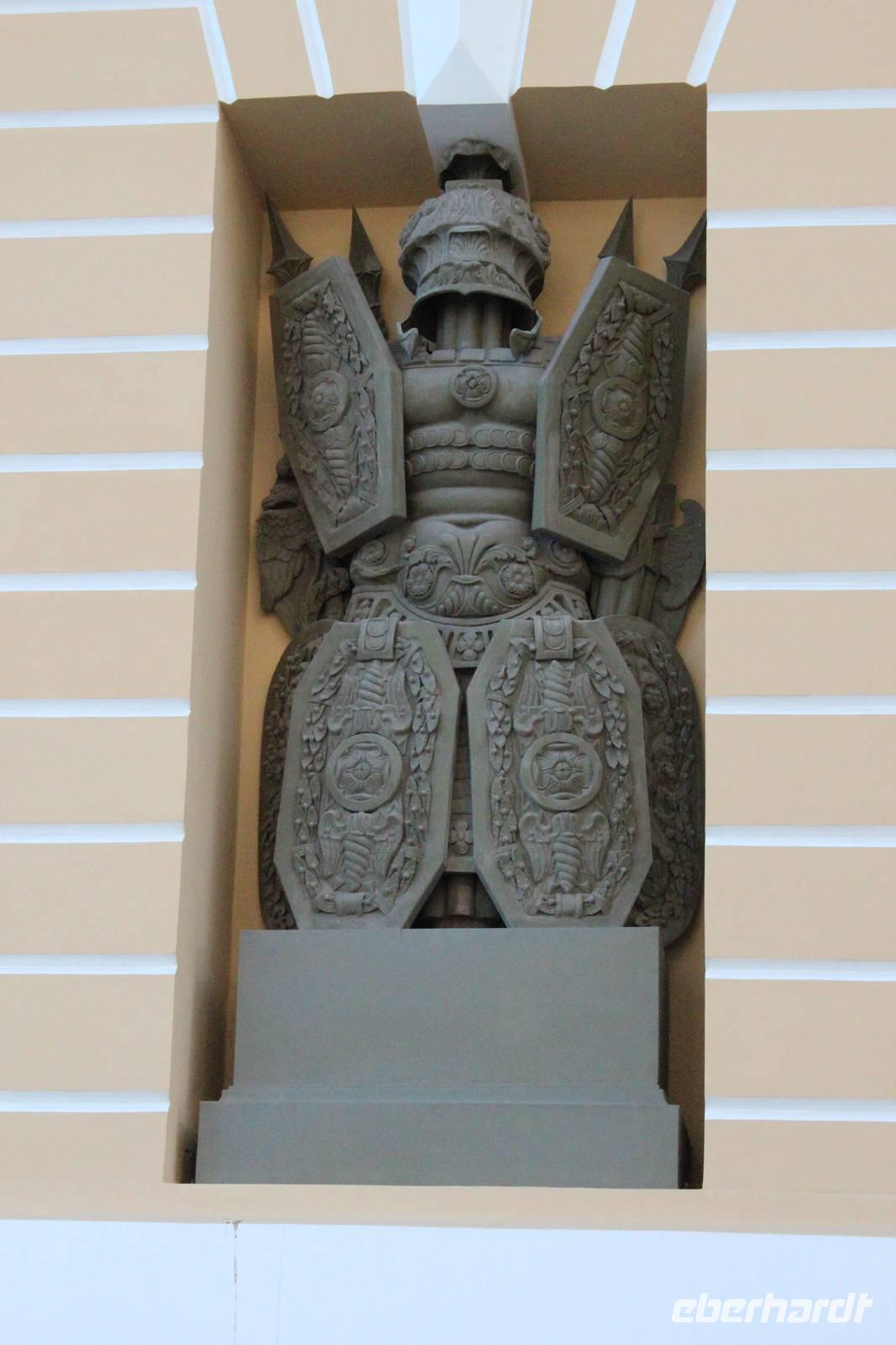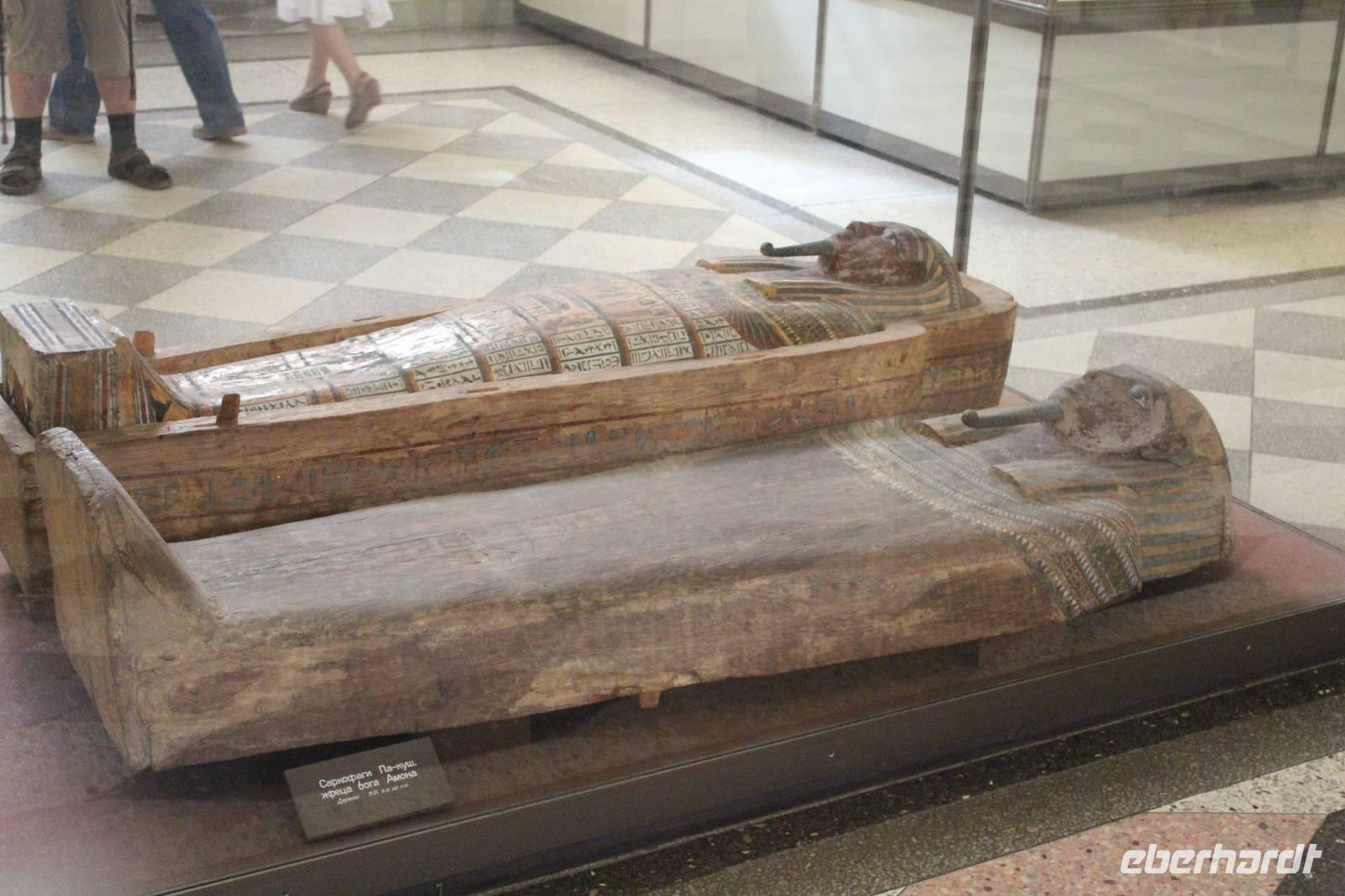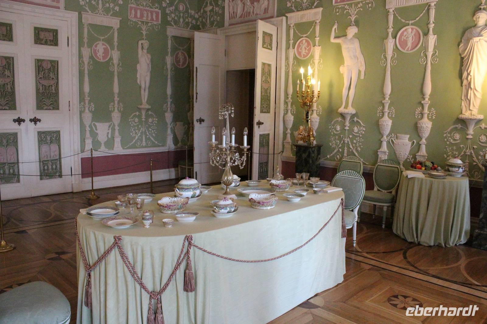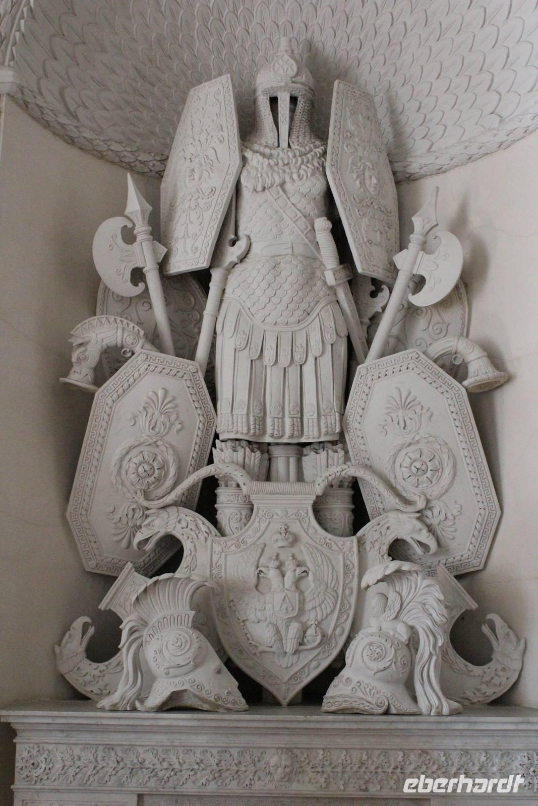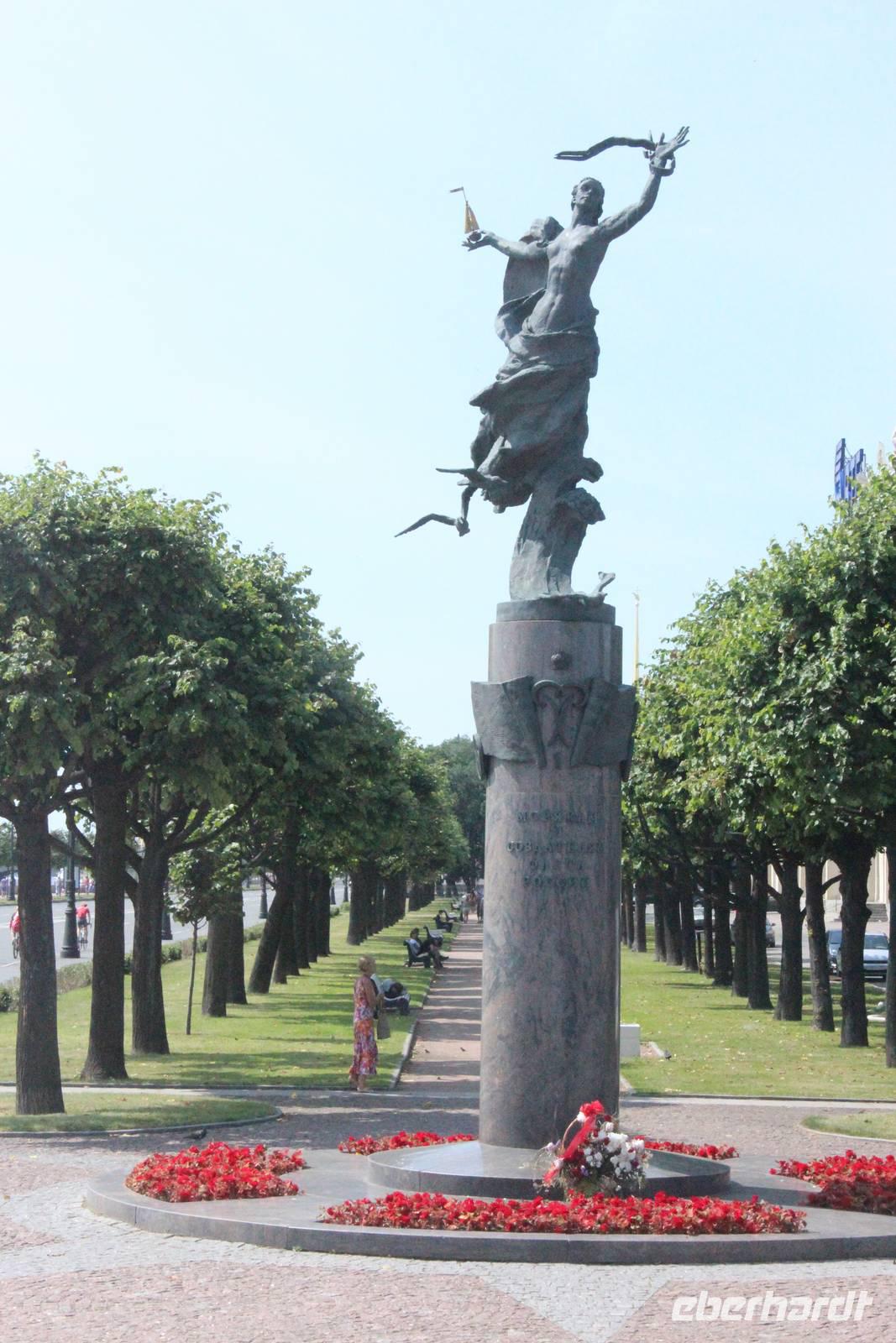 Halb Elf starteten wir zu Fuß zur Eremitage, welche nur etwa 15min entfernt von unserem Hotel lag. Dabei liefen wir auf dem Newski-Prospekt entlang unter dem Triumphbogen hindurch bis zum großen Alexanderplatz vor der Eremitage. Dort angekommen besichtigten wir ca. zwei Stunden die Räume der Eremitage, welche viele Ausstellungsstücke bereithielt. Von Wandteppichen über Kronleuchter bis hin zu Gemälden des weltbekannten Malers Leonardo Da Vinci war alles vertreten. Auch gab es viel Meißner Porzellan, ein Bild von Dresden sowie ein Bild von Pirna zu sehen. Nach einer längeren Pause ging es dann mit einem kurzen Fußmarsch zu unserem Boot, mit welchem wir ein kleines Stück der 74km langen Newa und der Moika befuhren. Hierbei mussten wir auf den Stühlen sitzen bleiben, da wir unter vielen Brücken hindurch fuhren. Und wie so schön auf dem Schild an der Bootswand stand: „In St. Petersburg gibt es über 500 Brücken, aber sie haben nur einen Kopf". Während wir die Flüsse und Kanäle entlang fuhren und unter vielen Brücken hindurchschwammen, kamen wir an zahlreichen Palästen und Häusern von St. Petersburg vorbei, welche schöne Fotomotive boten. Nach der Bootsfahrt ging es dann auch schon wieder zu Fuß zum Hotel oder noch zu einem kleinen Stadtbummel.