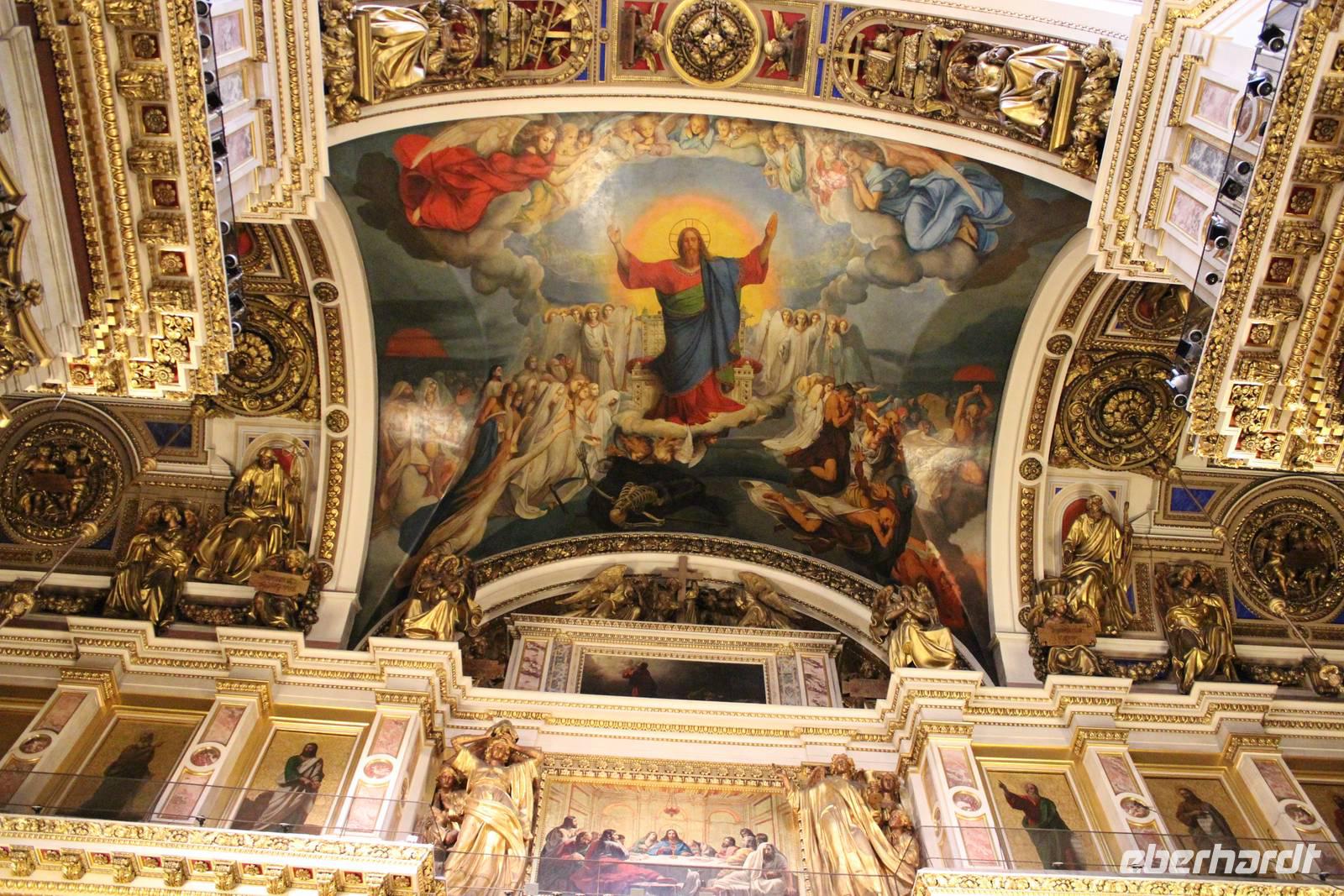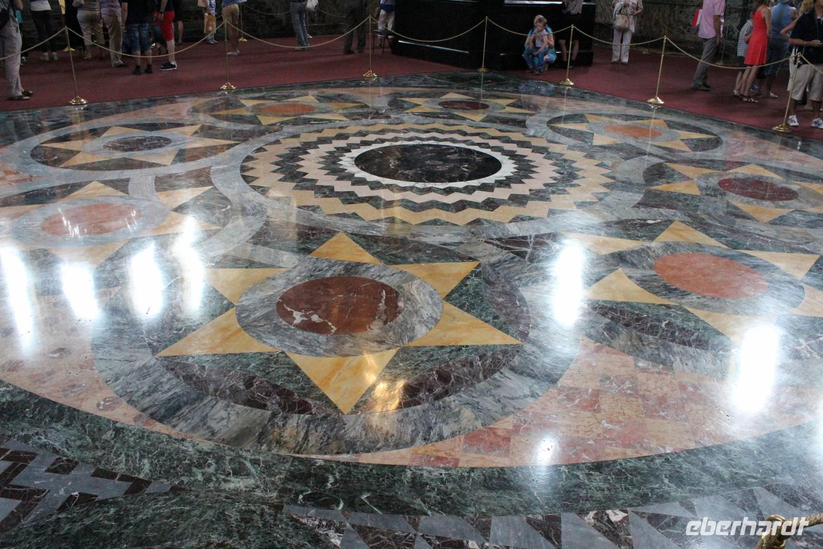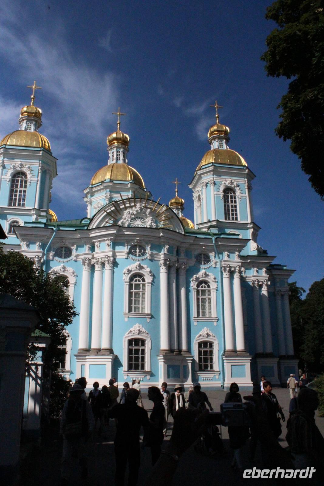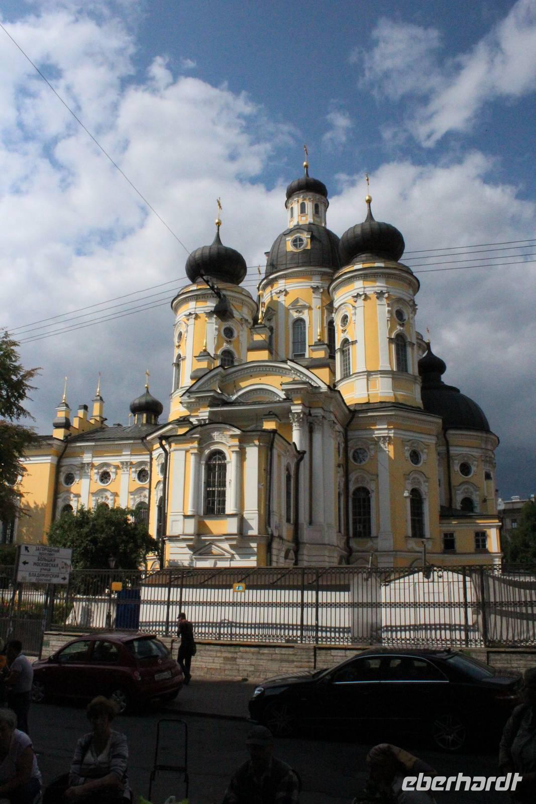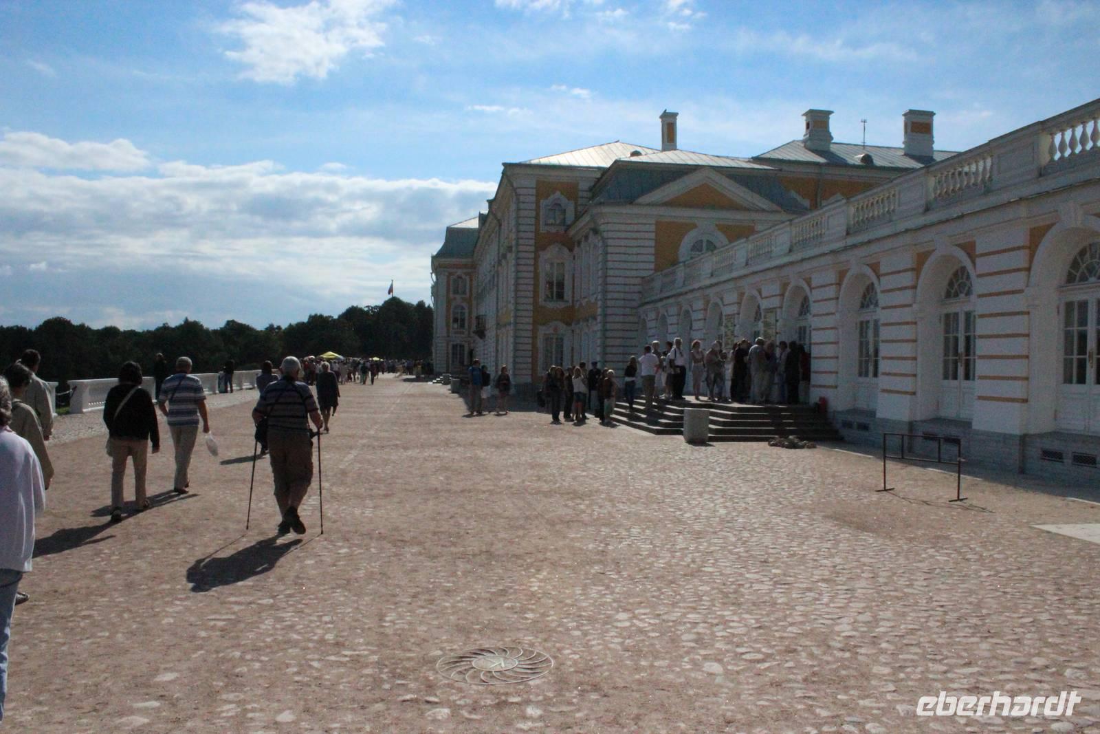 Heute ging es vom Hotel zu Fuß zur Isaakskathedrale, welche nur 10 Minuten vom Hotel entfernt lag. Die imposante Innengestaltung beeindruckte uns sehr. Die verzierten Türen, die Marmorfassaden und die Mosaikbilder ließen uns staunen. Weiter ging es danach mit dem Bus zur Blutskirche. Diese sieht von außen viel größer aus als es dann innen wirklich ist. In der Blutskirche wurde jedes Bild aus Mosaiken gefertigt und nicht gemalt. Mit großem Glück blieb diese Kirche im Krieg zum größten Teil unbeschädigt und Stalins Befehl, diese Kirche abzutragen, wurde nie durchgeführt. Nach einer längeren Pause auf der wichtigsten Geschäftsstraße, dem Newski Prospekt, ging es dann zum Katharinenpalast. Der lang gestreckte Bau mit einer schlichten aber doch sehr pompösen Fassade ließ die Gedanken schon spielen, wie es nur in den Räumen aussehen mochte. Und es blieb nichts aus. Ein großer Saal, welcher mit unzähligen Spiegeln ausgestattet war, um den Raum größer und heller in Erscheinung treten zu lassen, dazu noch eine sehr große und aufwendige Deckengestaltung. Dies war nur der erste Raum.