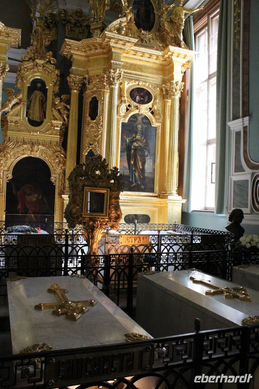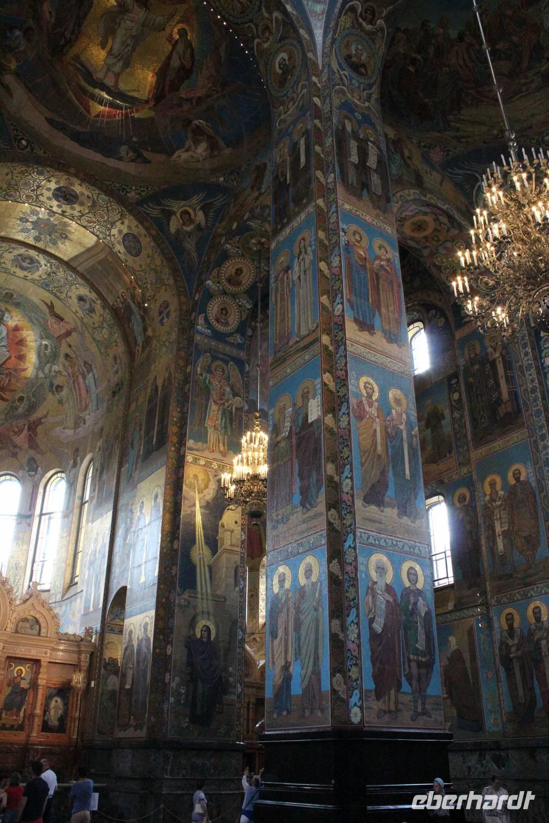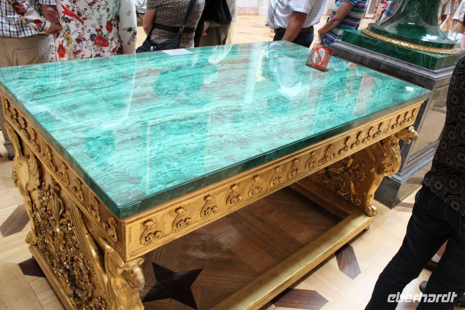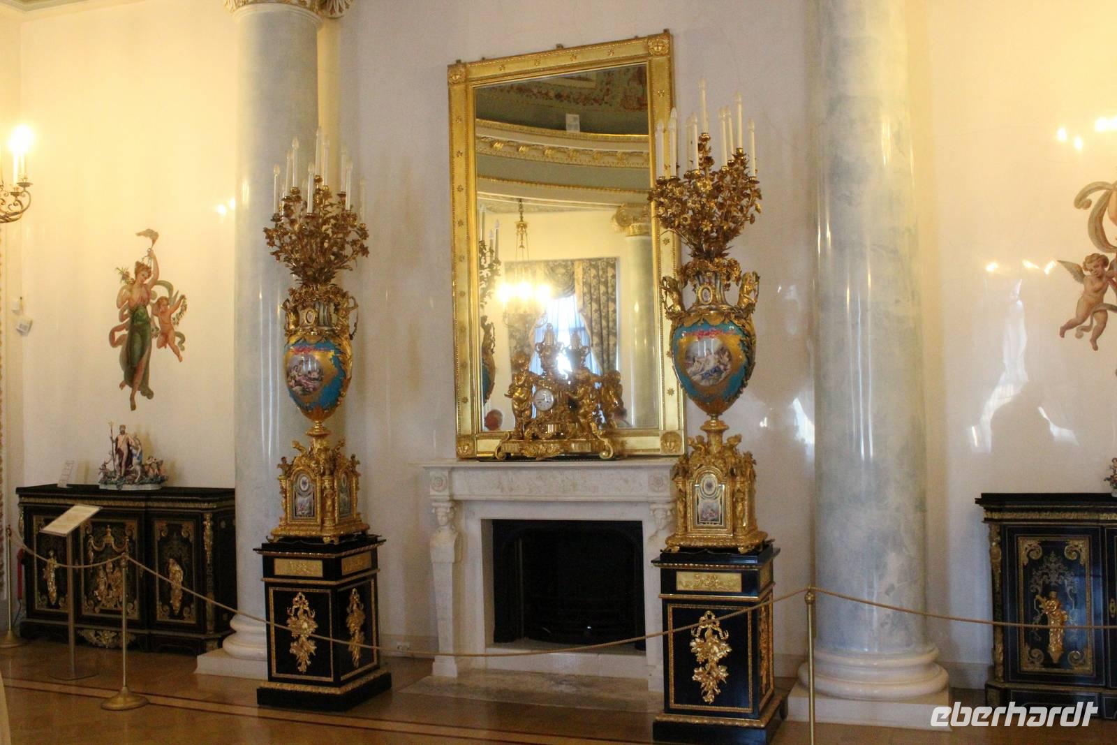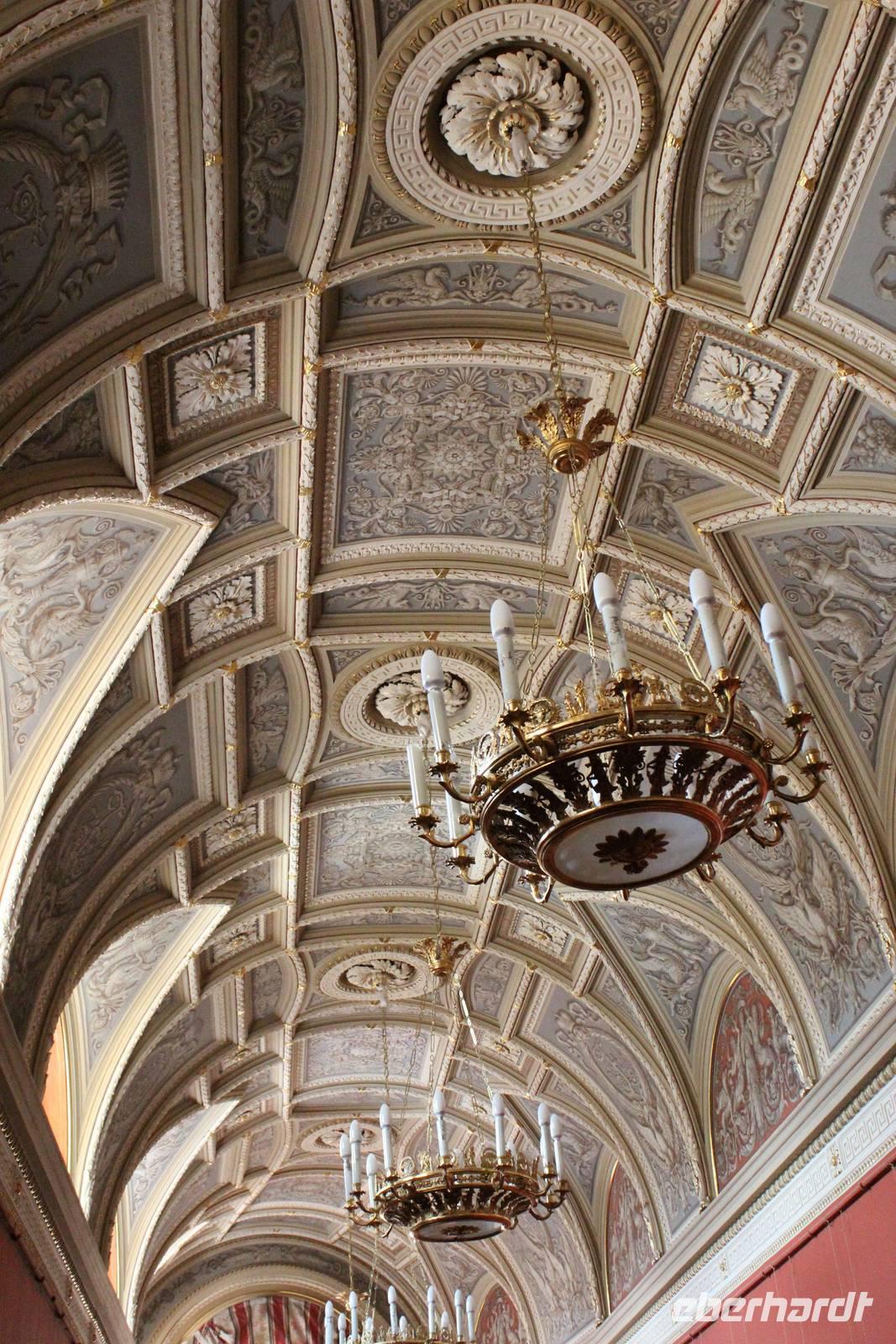 Heute ging es vom Hotel zu Fuß zur Isaakskathedrale, welche nur 10 Minuten vom Hotel entfernt lag. Die imposante Innengestaltung beeindruckte uns sehr. Die verzierten Türen, die Marmorfassaden und die Mosaikbilder ließen uns staunen. Weiter ging es danach mit dem Bus zur Blutskirche. Diese sieht von außen viel größer aus als es dann innen wirklich ist. In der Blutskirche wurde jedes Bild aus Mosaiken gefertigt und nicht gemalt. Mit großem Glück blieb diese Kirche im Krieg zum größten Teil unbeschädigt und Stalins Befehl, diese Kirche abzutragen, wurde nie durchgeführt. Nach einer längeren Pause auf der wichtigsten Geschäftsstraße, dem Newski Prospekt, ging es dann zum Katharinenpalast. Der lang gestreckte Bau mit einer schlichten aber doch sehr pompösen Fassade ließ die Gedanken schon spielen, wie es nur in den Räumen aussehen mochte. Und es blieb nichts aus. Ein großer Saal, welcher mit unzähligen Spiegeln ausgestattet war, um den Raum größer und heller in Erscheinung treten zu lassen, dazu noch eine sehr große und aufwendige Deckengestaltung. Dies war nur der erste Raum.