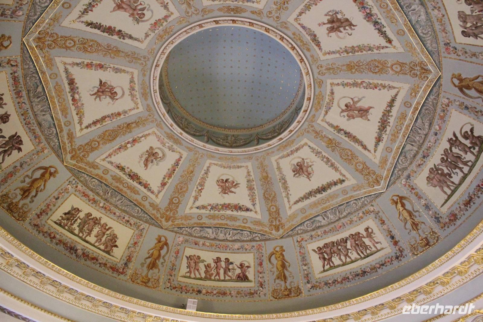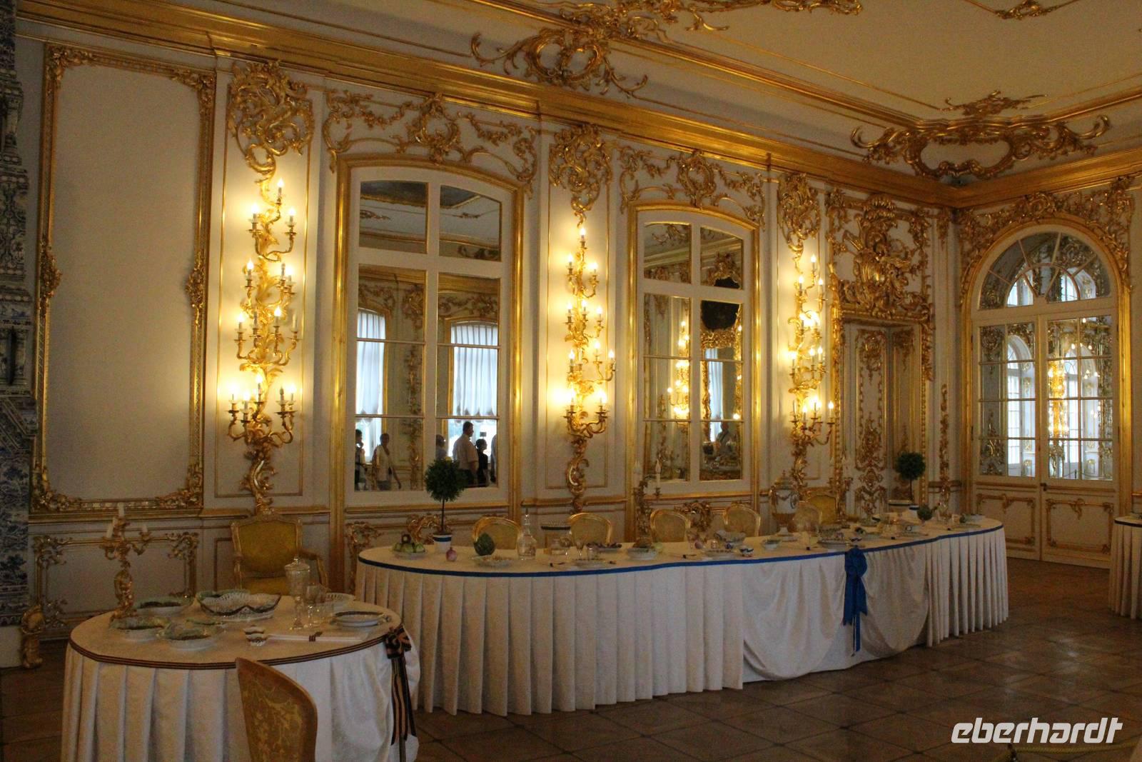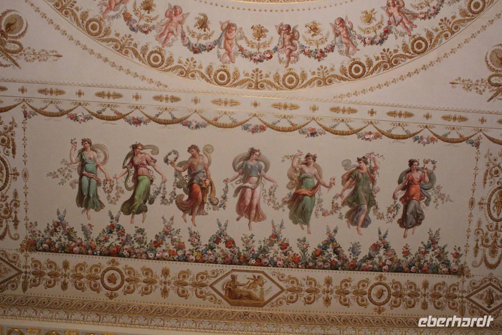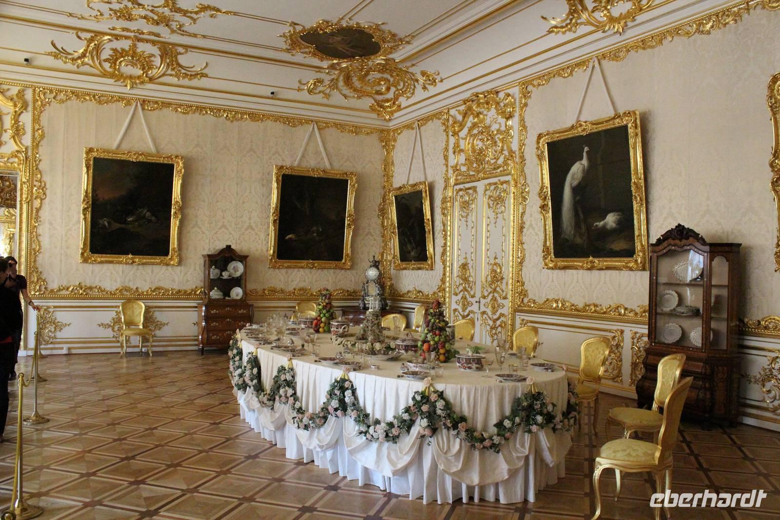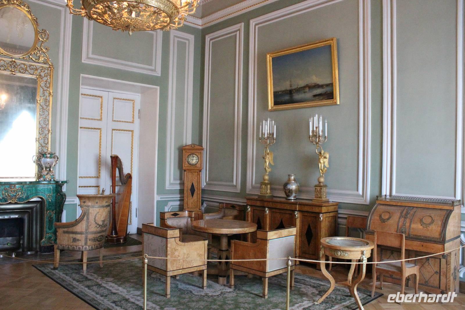 Heute ging es vom Hotel zu Fuß zur Isaakskathedrale, welche nur 10 Minuten vom Hotel entfernt lag. Die imposante Innengestaltung beeindruckte uns sehr. Die verzierten Türen, die Marmorfassaden und die Mosaikbilder ließen uns staunen. Weiter ging es danach mit dem Bus zur Blutskirche. Diese sieht von außen viel größer aus als es dann innen wirklich ist. In der Blutskirche wurde jedes Bild aus Mosaiken gefertigt und nicht gemalt. Mit großem Glück blieb diese Kirche im Krieg zum größten Teil unbeschädigt und Stalins Befehl, diese Kirche abzutragen, wurde nie durchgeführt. Nach einer längeren Pause auf der wichtigsten Geschäftsstraße, dem Newski Prospekt, ging es dann zum Katharinenpalast. Der lang gestreckte Bau mit einer schlichten aber doch sehr pompösen Fassade ließ die Gedanken schon spielen, wie es nur in den Räumen aussehen mochte. Und es blieb nichts aus. Ein großer Saal, welcher mit unzähligen Spiegeln ausgestattet war, um den Raum größer und heller in Erscheinung treten zu lassen, dazu noch eine sehr große und aufwendige Deckengestaltung. Dies war nur der erste Raum.