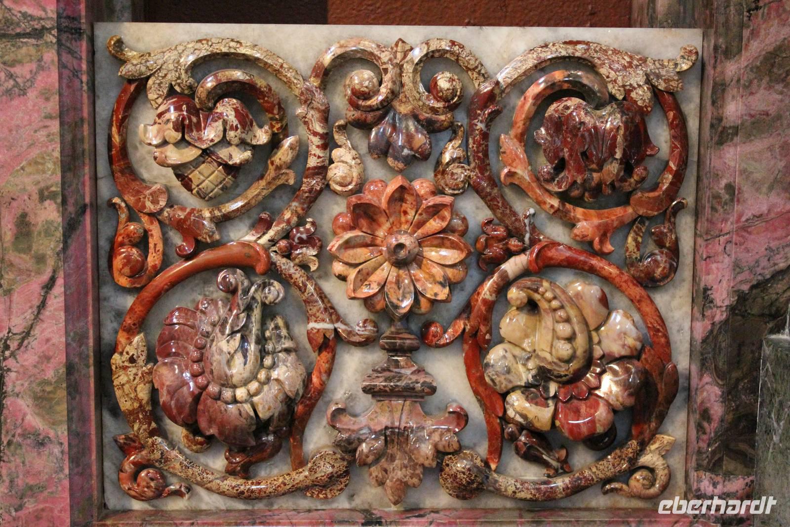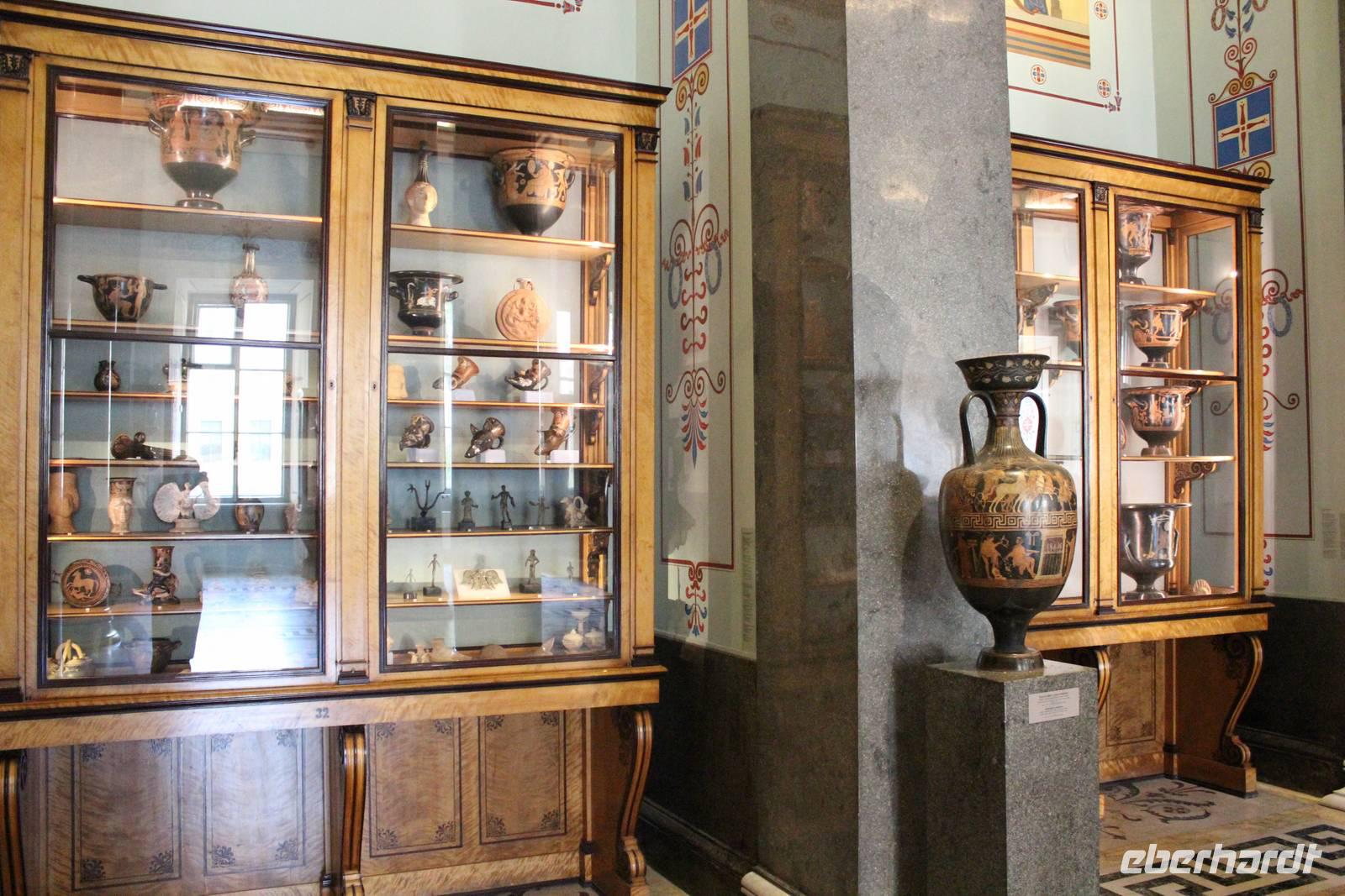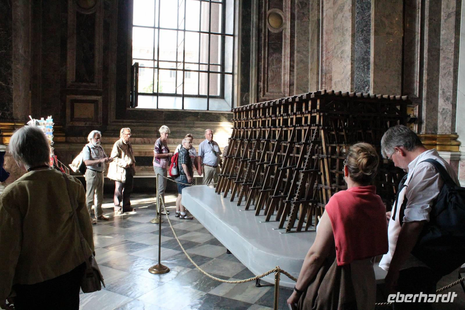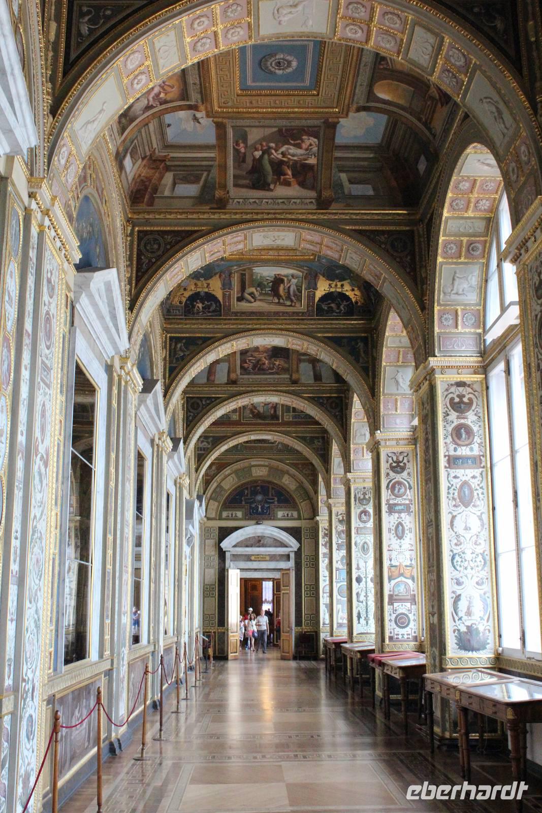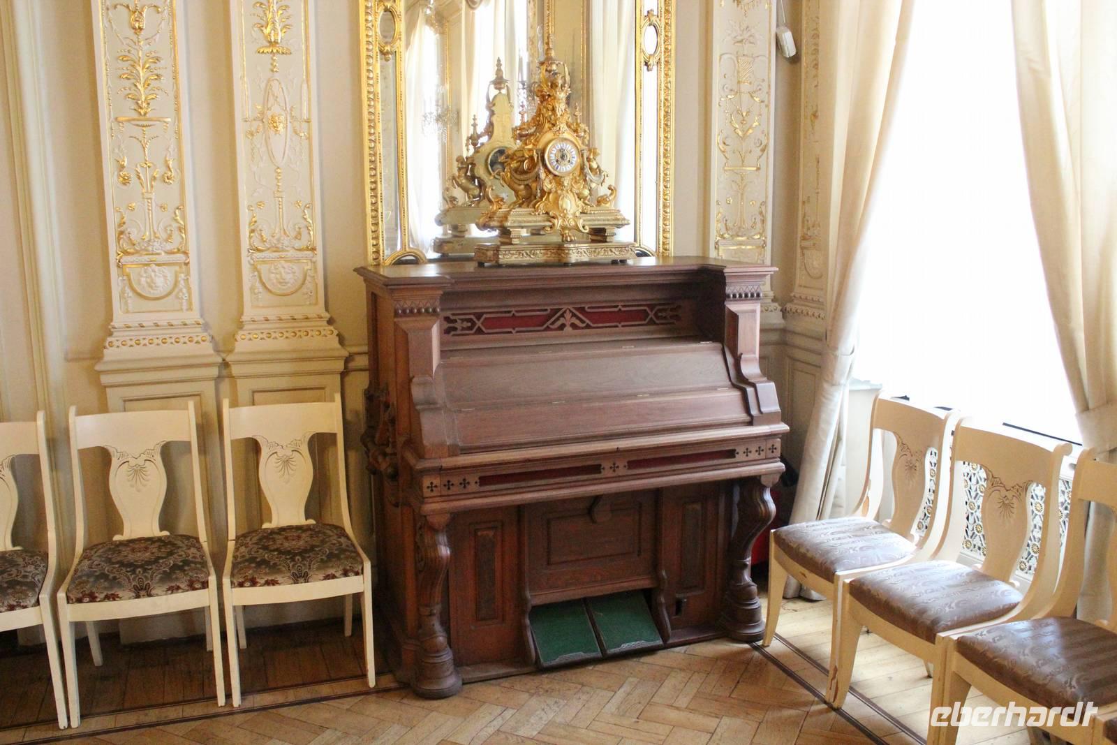 Heute ging es vom Hotel zu Fuß zur Isaakskathedrale, welche nur 10 Minuten vom Hotel entfernt lag. Die imposante Innengestaltung beeindruckte uns sehr. Die verzierten Türen, die Marmorfassaden und die Mosaikbilder ließen uns staunen. Weiter ging es danach mit dem Bus zur Blutskirche. Diese sieht von außen viel größer aus als es dann innen wirklich ist. In der Blutskirche wurde jedes Bild aus Mosaiken gefertigt und nicht gemalt. Mit großem Glück blieb diese Kirche im Krieg zum größten Teil unbeschädigt und Stalins Befehl, diese Kirche abzutragen, wurde nie durchgeführt. Nach einer längeren Pause auf der wichtigsten Geschäftsstraße, dem Newski Prospekt, ging es dann zum Katharinenpalast. Der lang gestreckte Bau mit einer schlichten aber doch sehr pompösen Fassade ließ die Gedanken schon spielen, wie es nur in den Räumen aussehen mochte. Und es blieb nichts aus. Ein großer Saal, welcher mit unzähligen Spiegeln ausgestattet war, um den Raum größer und heller in Erscheinung treten zu lassen, dazu noch eine sehr große und aufwendige Deckengestaltung. Dies war nur der erste Raum.