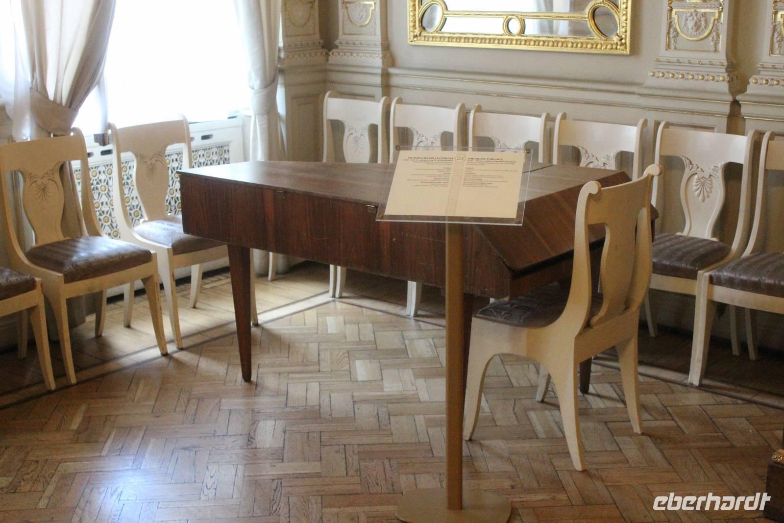 Kurz vor dem Mittag fuhren wir mit dem Bus und unserem Reisegepäck vom Hotel ab zum Jussupow-Palast. Die Jussupows hatten einen gehobenen Standard und Felix Jussupow verübte das Attentat auf Rasputin. Dass die Familie Jussupow eine gehobene Familie war, merkte man an der Größe des Palastes und dessen Einrichtung. Selbst ein Theater mitten im Palast mit Zarenloge gab es zu bestaunen. Nach dem Besuch des Jussupow-Palasts fuhren wir alle gemeinsam zum Ehernen Reiter wo wir uns von unserer örtl. Reiseleiterin und von St. Petersburg bei einem Becher Sekt verabschiedeten. Am Flughafen passierten wir dann mehrere Kontrollen und mussten auf dem Rollfeld noch einige Minuten ausharren bevor es los nach Deutschland ging. In Berlin-Tegel angekommen ging es dann mit den Transfer nach Hause.