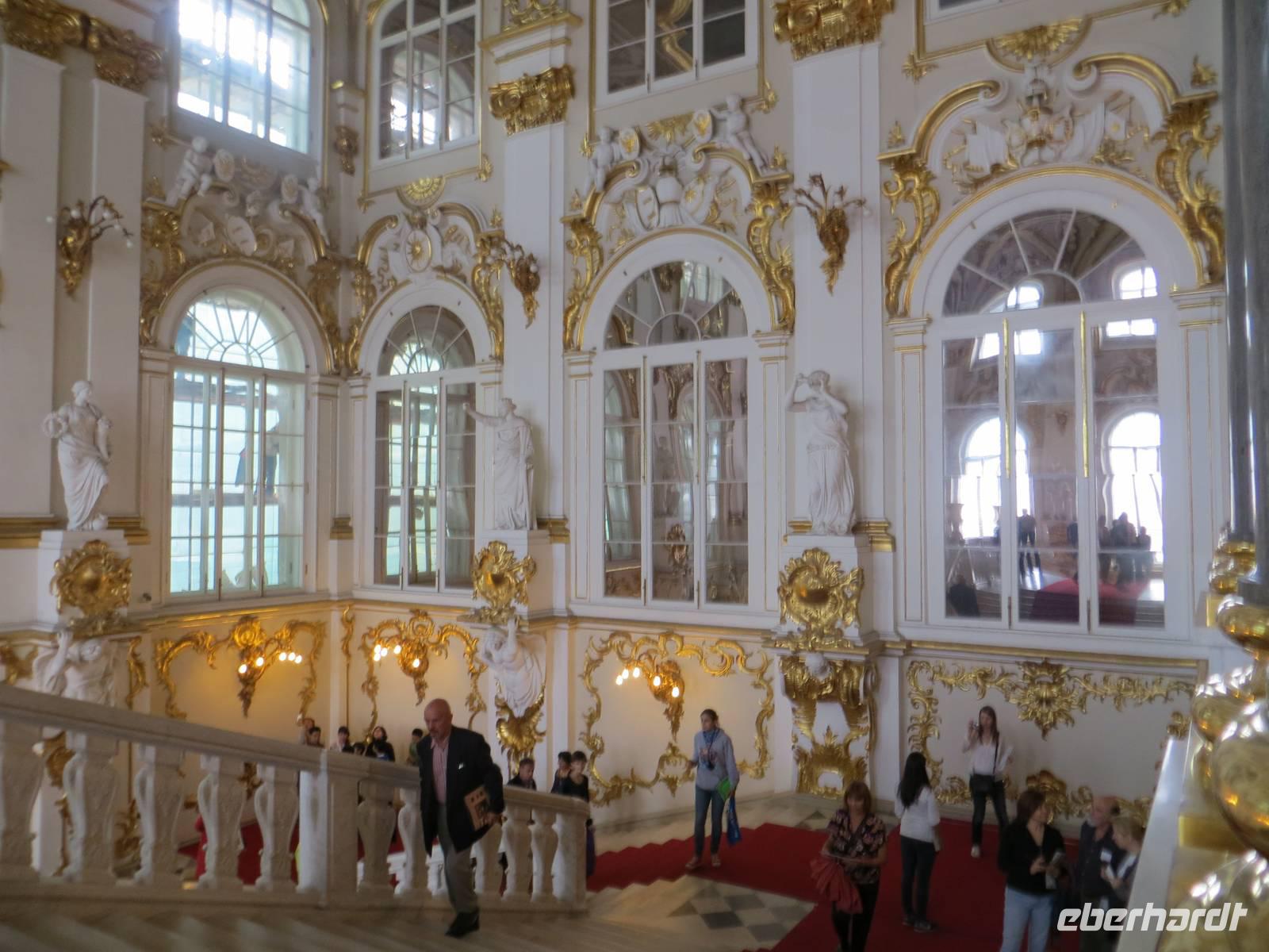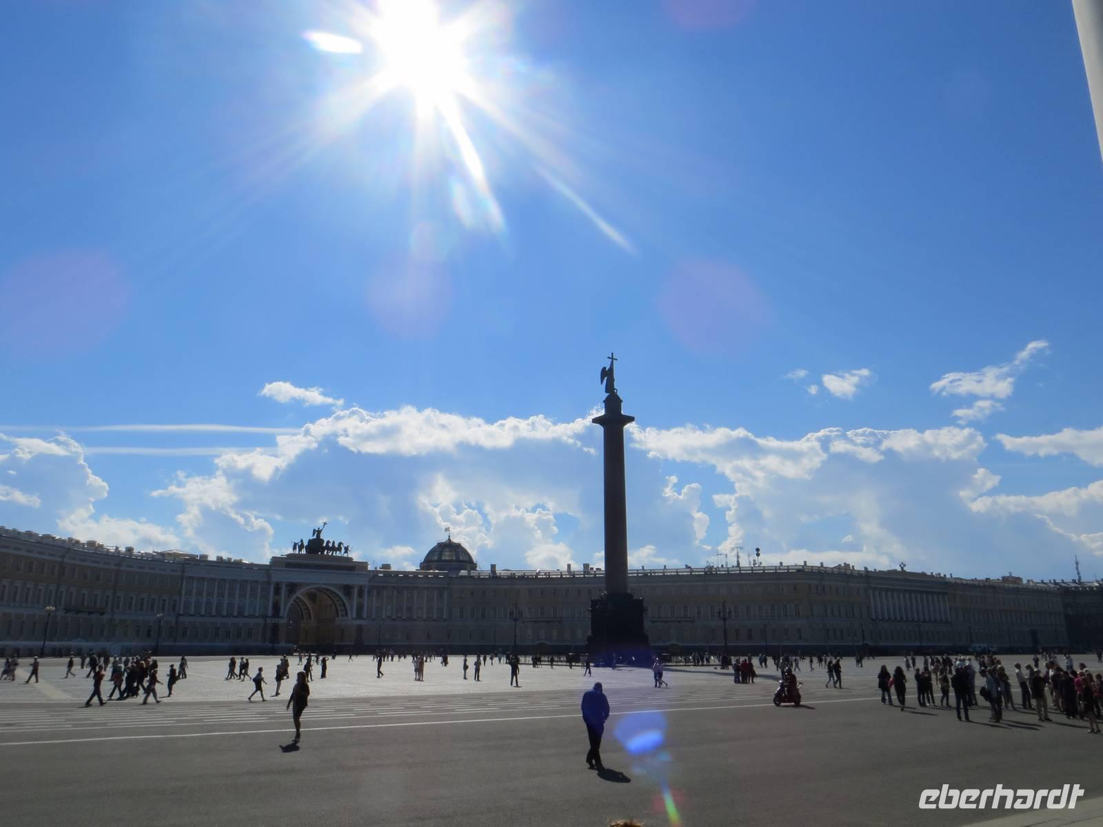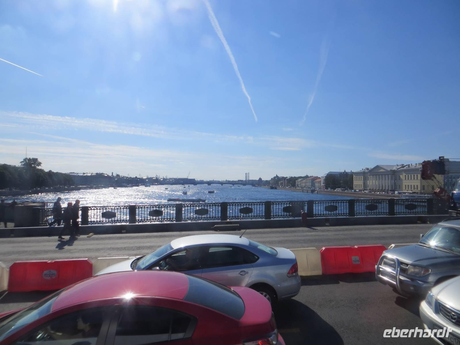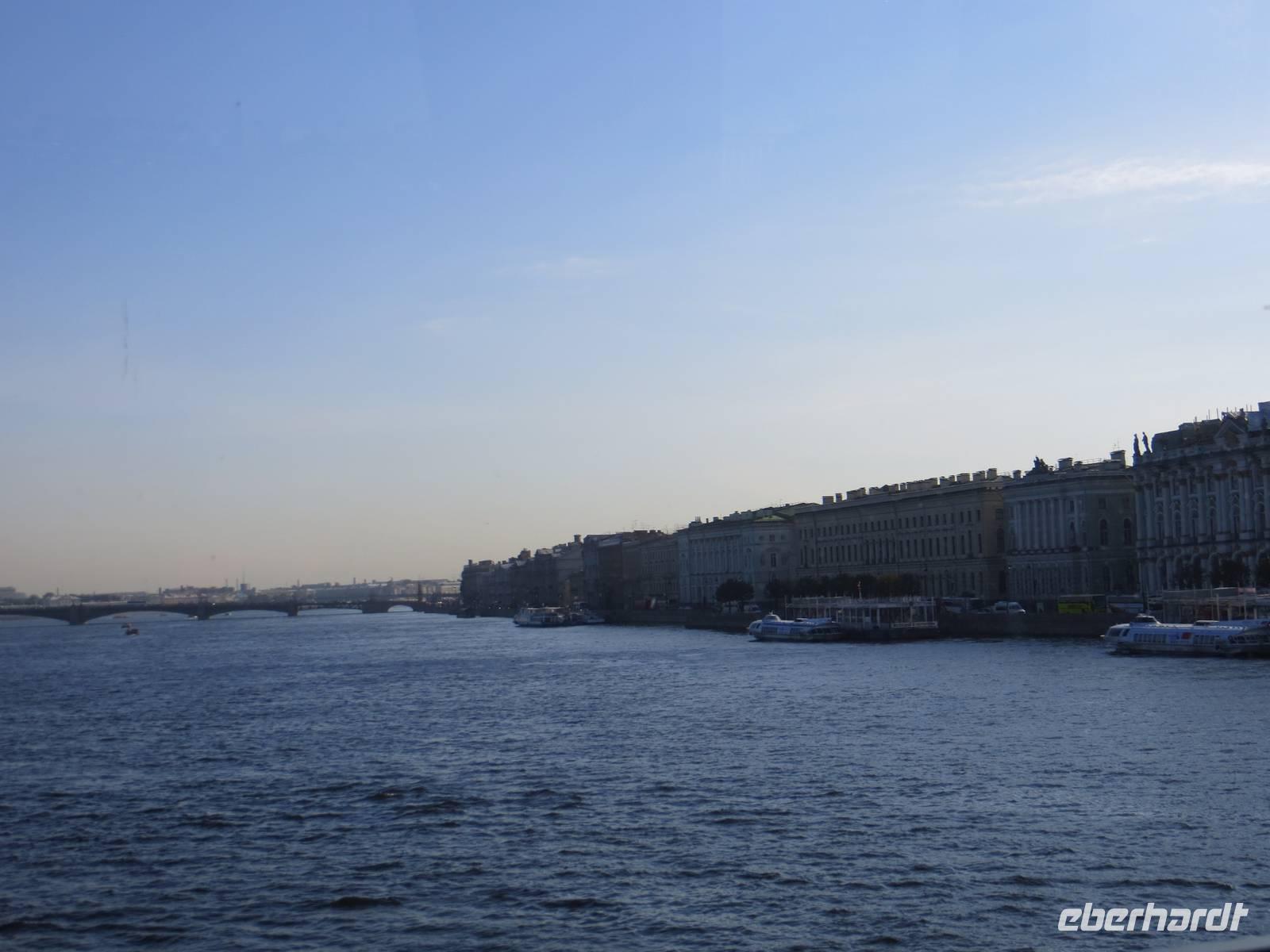 Nach kurzer Fahrt besichtigten wir am Morgen den Winterpalast sowie die Eremitage, die eine der größten Kunstsammlungen weltweit beherbergt. Allein der Hauptgang mit seinen vielen Goldverzierungen ist schon beeindruckend. Das Museum selber beinhaltet über 60.000 Exponate, darunter viele Malereien von bekannten Malern wie Rubens, Rembrandt und Pablo Picasso. Zu sehen sind auch Werke von Bernardo Bellotto, wie der Blick auf Pirna. Am Nachmittag unternahmen wir dann bei strahlendem Sonnenschein eine Bootsfahrt auf derNewa und bestaunten das ehemalige Leningrad von der Wasserseite aus.