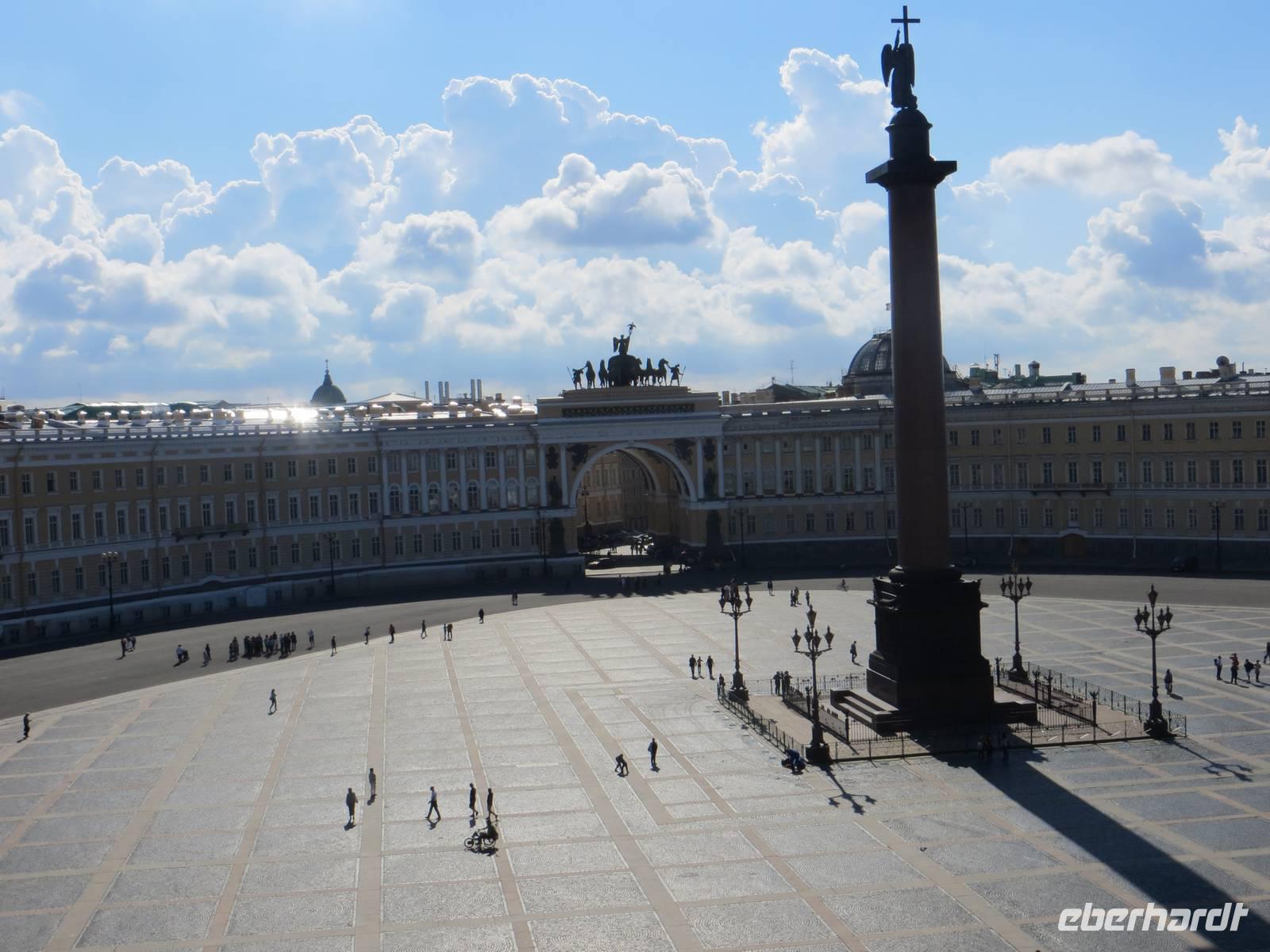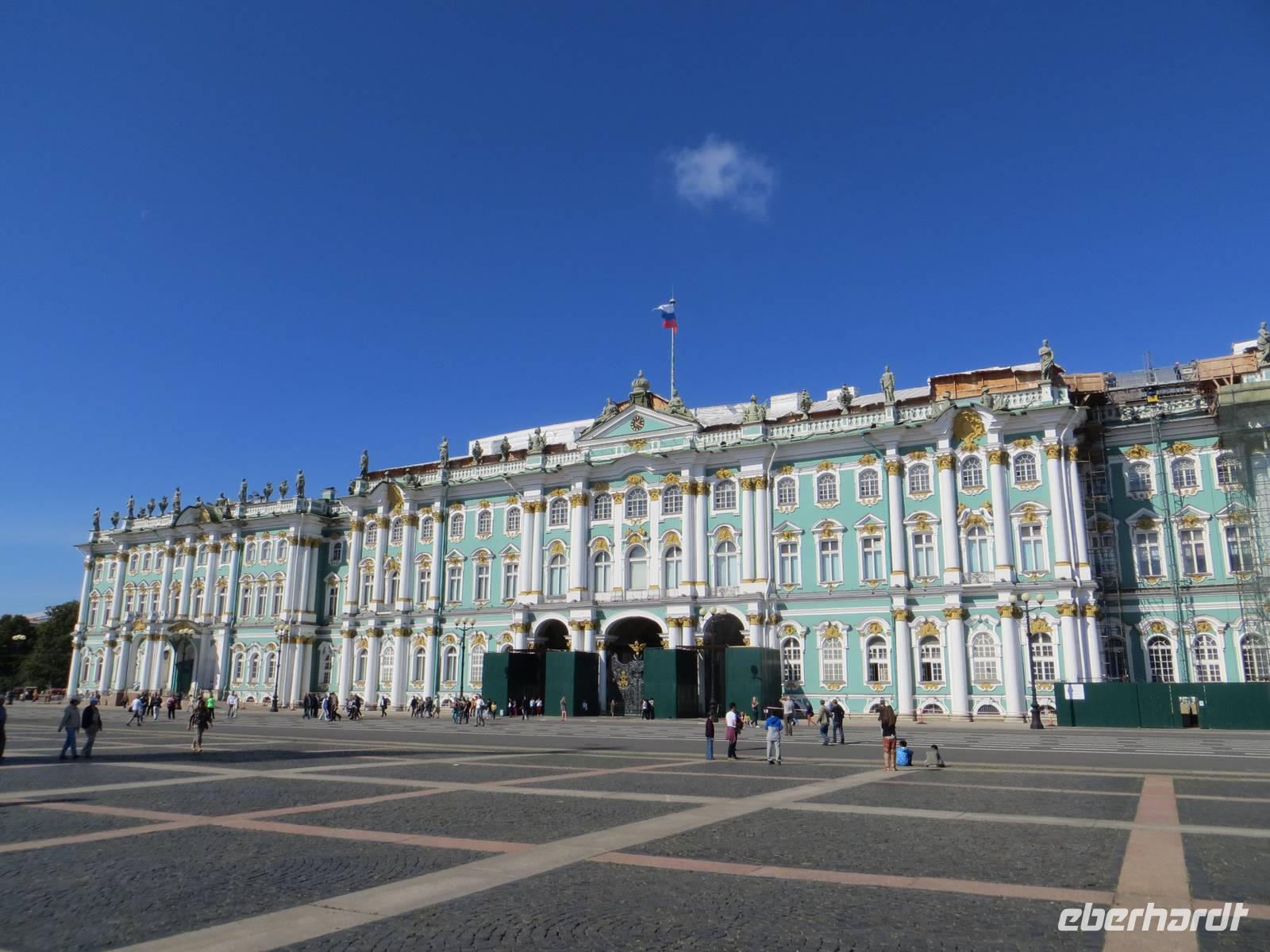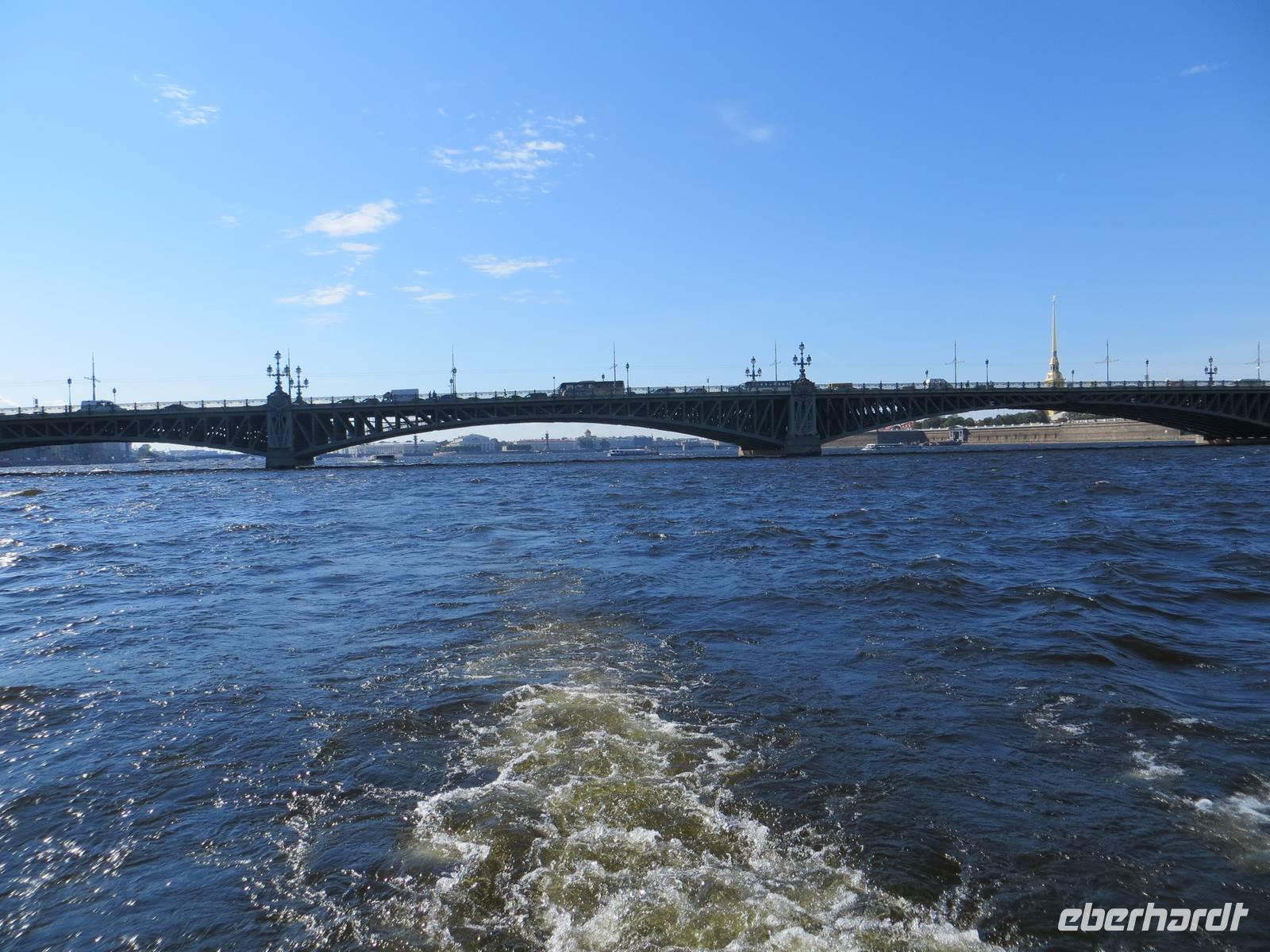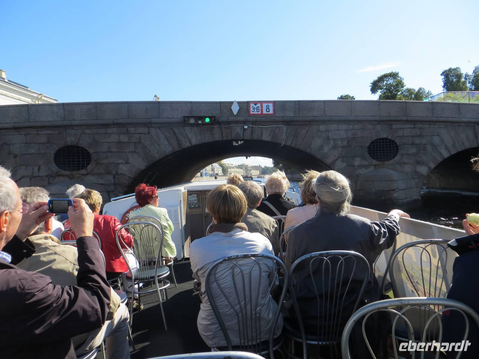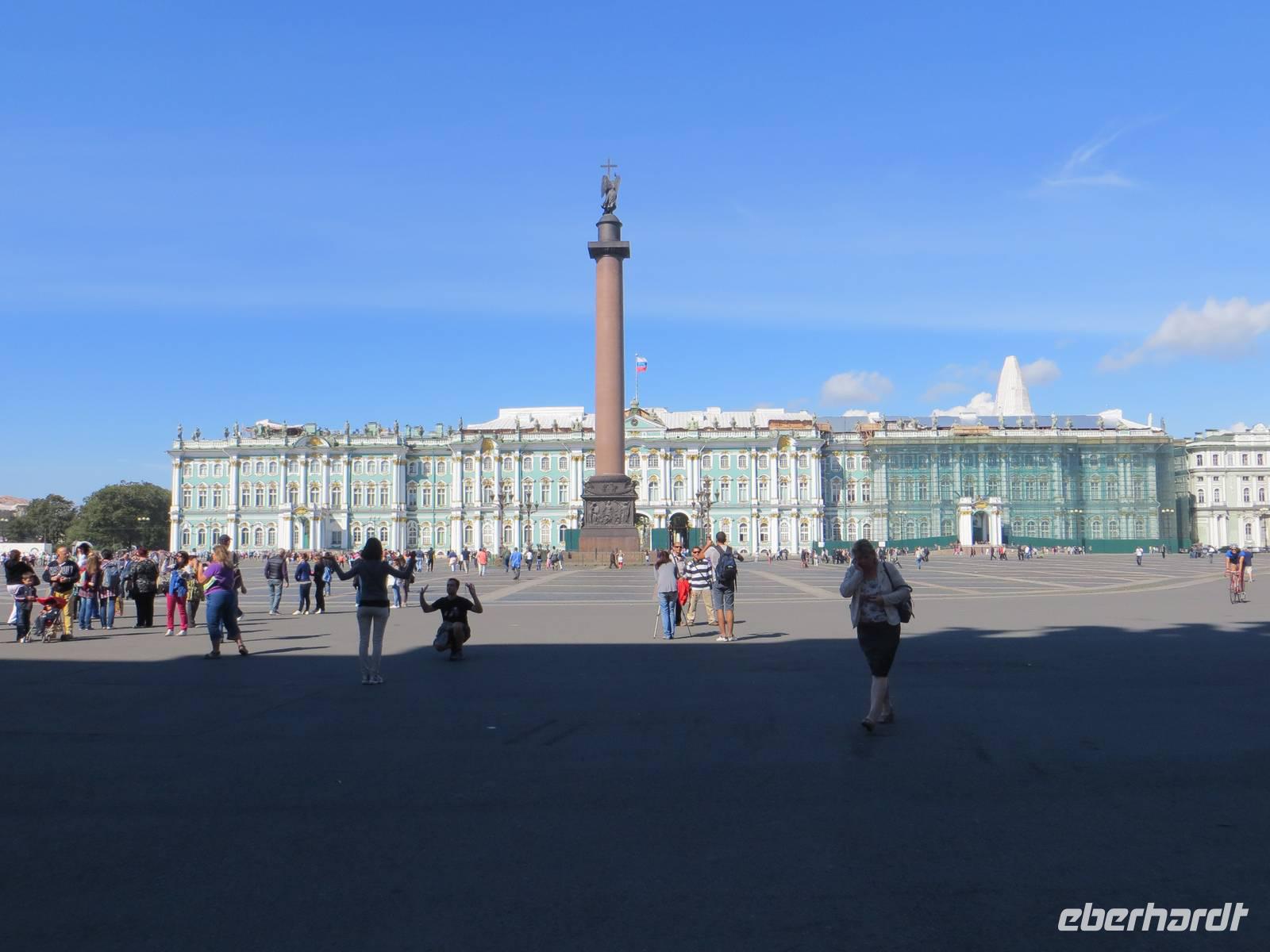 Nach kurzer Fahrt besichtigten wir am Morgen den Winterpalast sowie die Eremitage, die eine der größten Kunstsammlungen weltweit beherbergt. Allein der Hauptgang mit seinen vielen Goldverzierungen ist schon beeindruckend. Das Museum selber beinhaltet über 60.000 Exponate, darunter viele Malereien von bekannten Malern wie Rubens, Rembrandt und Pablo Picasso. Zu sehen sind auch Werke von Bernardo Bellotto, wie der Blick auf Pirna. Am Nachmittag unternahmen wir dann bei strahlendem Sonnenschein eine Bootsfahrt auf derNewa und bestaunten das ehemalige Leningrad von der Wasserseite aus.