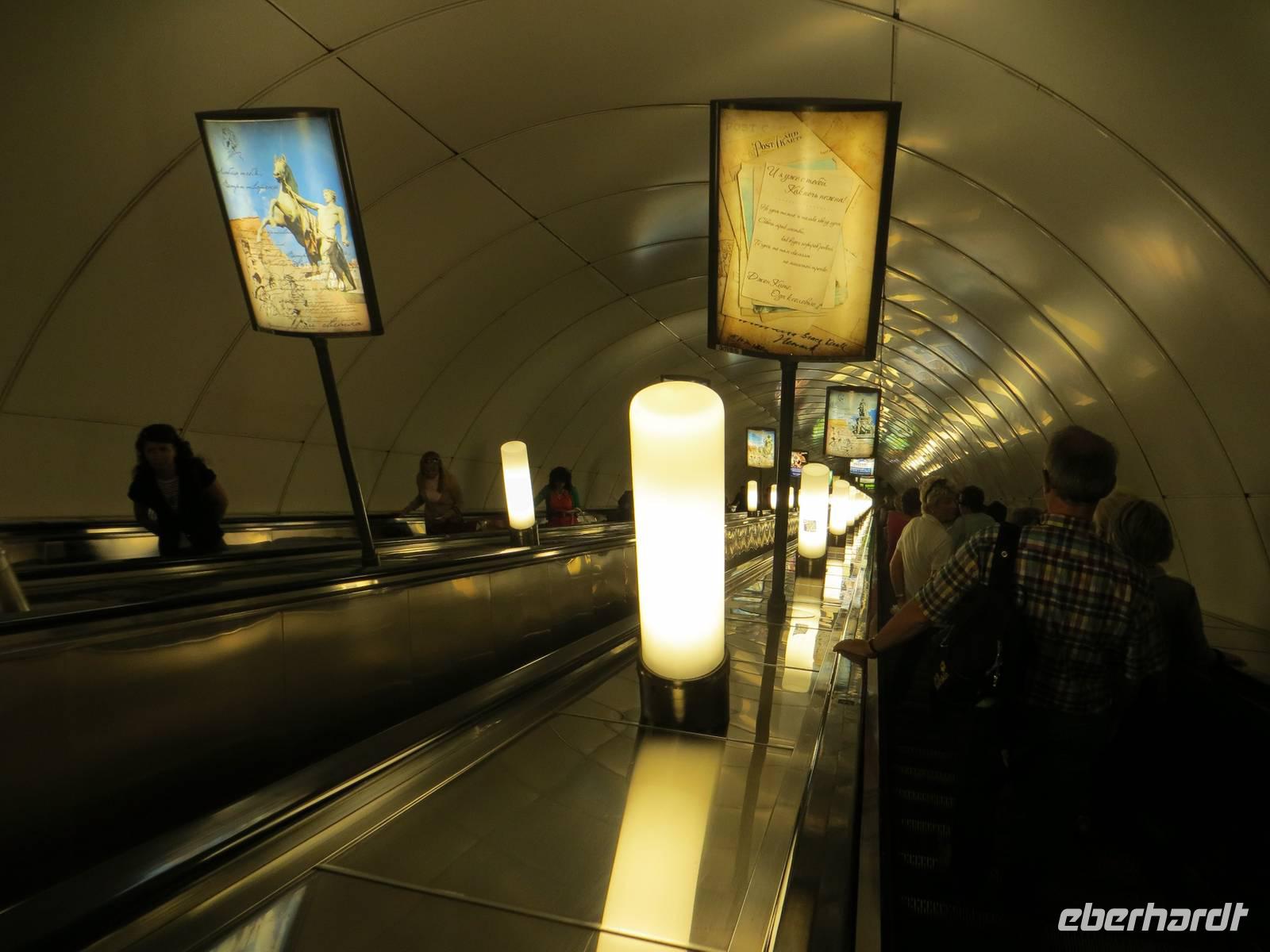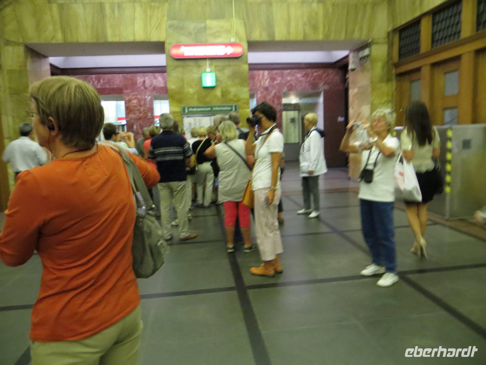 Am Morgen fuhren wir zunächst auf die Wassiljewskij-Insel, die sich am Newadelta zwischen kleiner- und großen Newa befindet und genossen von dort den Ausblick auf den Fluss, der im Ladogasee entspringt und bei St. Petersburg in die Ostsee mündet. Anschließend fuhren wir entlang des Panzerkreuzers Aurora und besuchten dann die Peter-Pauls-Kathedrale auf der Haseninsel. Am Mittag besuchten wir dann das Smolnyj-Kloster um anschließend zu einer der berühmtesten russischen Straßen zu fahren, dem Nevskij-Prospekt. Am Nachmittag fuhren wir dann mit der Metro, eines der tiefstgelegenen U-Bahnnetze weltweit.