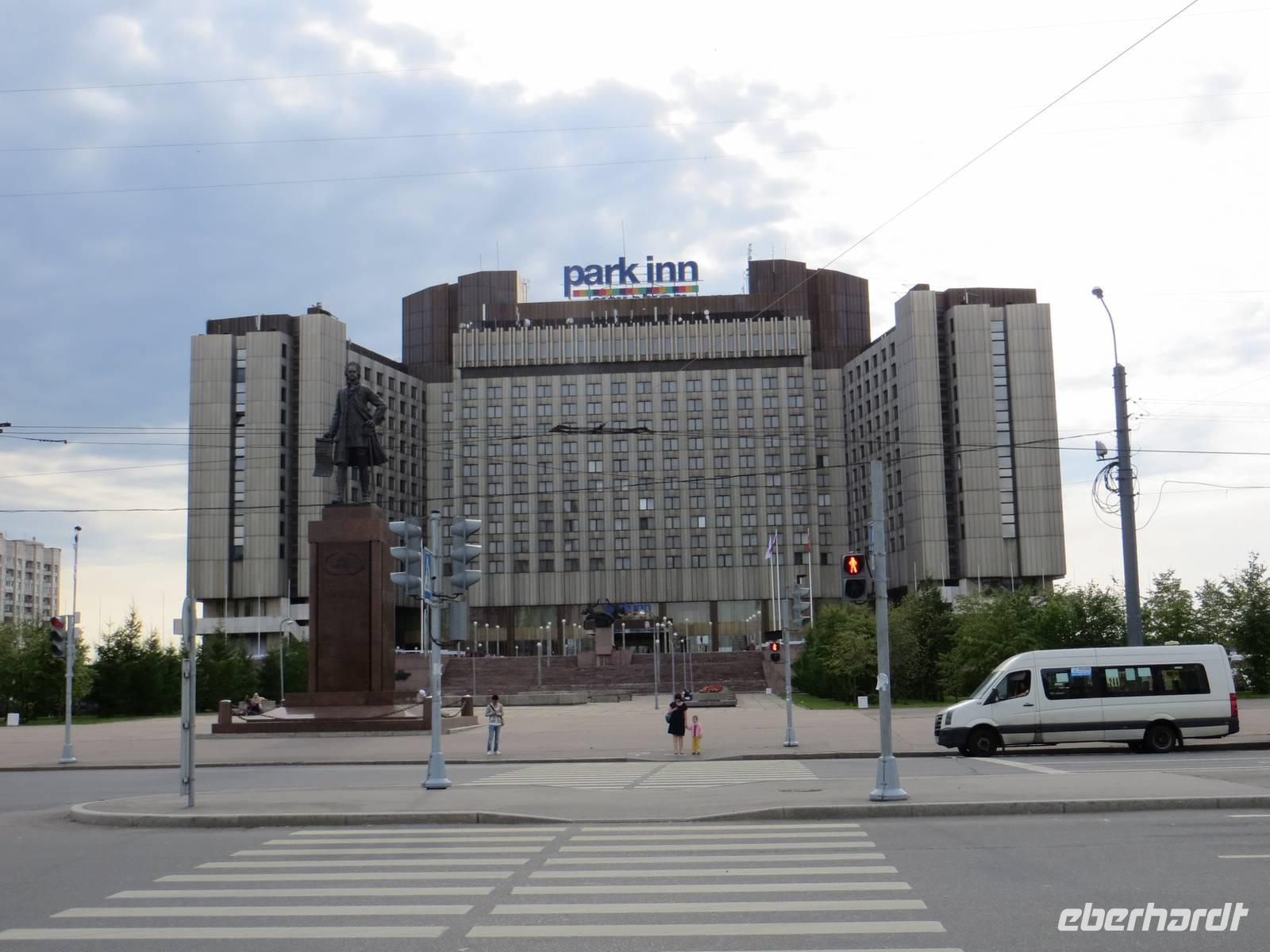 Am Mittag trafen wir uns alle gemeinsam am Flughafen Berlin-Tegel und flogen am frühen Nachmittag in Richtung Russland. Nach ca. drei Stunden landeten wir in Pulkovo auf dem internationalen Flughafen von St. Petersburg. Nach einer längeren Passkontrolle konnten wir dann unsere Koffer in Empfang nehmen und begaben uns zum Ausgang. Vor dem Terminal erwartete uns bereits unsere Reiseleiterin Natalia und unser Busfahrer Alexander, die uns in den nächsten Tagen begleiteten. Nach ca.1,5 h Fahrtzeit erreichten wir dann am frühen Abend unser Hotel Pribaltiyskaya am finnischen Meerbusen.