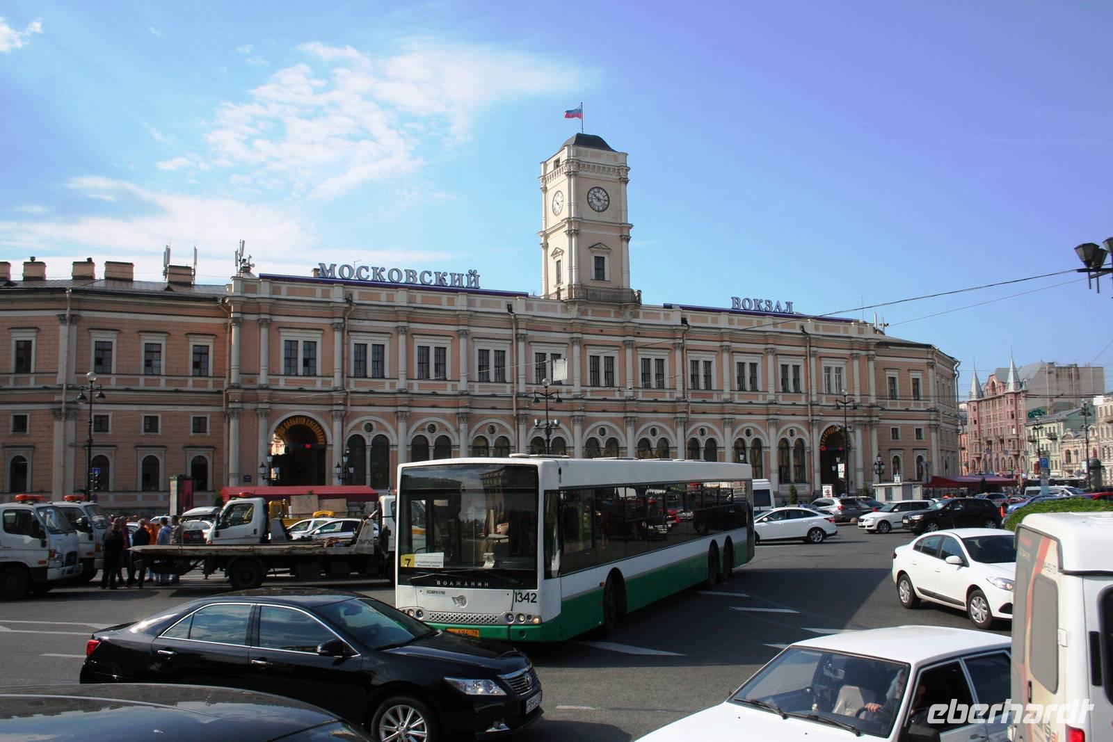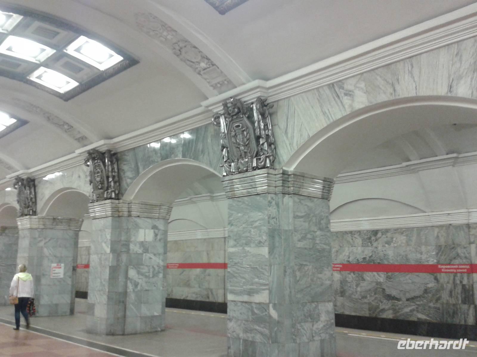 Ein erster Blick aus dem Fenster verriet: Sonnenschein - Zarenwetter! Nach einem entspannten Frühstück starteten zur ersten Rundfahrt durch die Stadt Peter des Großen. Zunächst statteten wir dem Smolny Kloster einen Besuch ab, bevor wir an der Newa zum Newsky-Kloster fuhren. Über den alten Newsky Prospekt fuhren wir wieder ins Zentrum. Entlang des neuen, belebten Newsky Prospektes, dem Prachtboulevard bestaunten wir ebenso prachtvolle Häuserfassaden. Die historische Innenstadt St. Petersburg präsentiert über 2.000 Paläste, Schlösser und prunkvolle Gebäude und gehört deshalb zum UNESCO Weltkulturerbe. Am Platz der Platz der Künste bummelten wir durch den Park mit dem Puschkin Denkmal und besichtigten wir das Michailowsky Palais, in dessen Inneren sich das Russische Museum befindet. Im Art-Cafe pausierten wir bei Kaffee und winzigen Snacks, um danach unsere Rundfahrt auf die andere Newaseite fortzuführen. Am Liegeplatz des legendären Panzerkreuzer "Aurora" durfte ein Fotostopp natürlich nicht fehlen. Danach ging es auf die Haseninsel, zum Ursprung der Stadt. Hier befindet sich die Peter-und-Paul-Festung, wo wir besonders intensiv die Peter-und-Paul-Kathedrale besichtigten, die Begräbnisstätte der meisten russischen Zaren. Dabei kamen die Vorteile der Audio-Guides zum Tragen. Intensiv folgten wir über unsere Kopfhörer den ausführlichen Erklärungen von Igor, konnten fotografieren, ohne was zu verpassen und verloren nie den Anschluss zur Gruppe. Zum Abschluß der Besichtigung lauschten wir den kirchlichen Gesängen eines akademischen Männerchores. Anschließend fuhren wir zum Hotel zurück, um uns für die Fahrt mit der Metro zu rüsten. Am Nachmittag liefen wir zur nahegelegenen Metrostation und lösten unsere Tickets. Auf steilen, langen Rolltreppen fuhren wir in den Untergrund. Erstaunt waren wir sogleich von den sauberen, unbeschmierten Bahnhöfen und Stationen. Mit der M1 "rasten" wir non stop zur Station Awtowo, um von dort mit Ausstiegen zurück zu fahren. Unterwegs besichtigen wir während unserer Ausstiege, verschiedene künstlerisch und prachtvoll gestaltete Metrostationen.