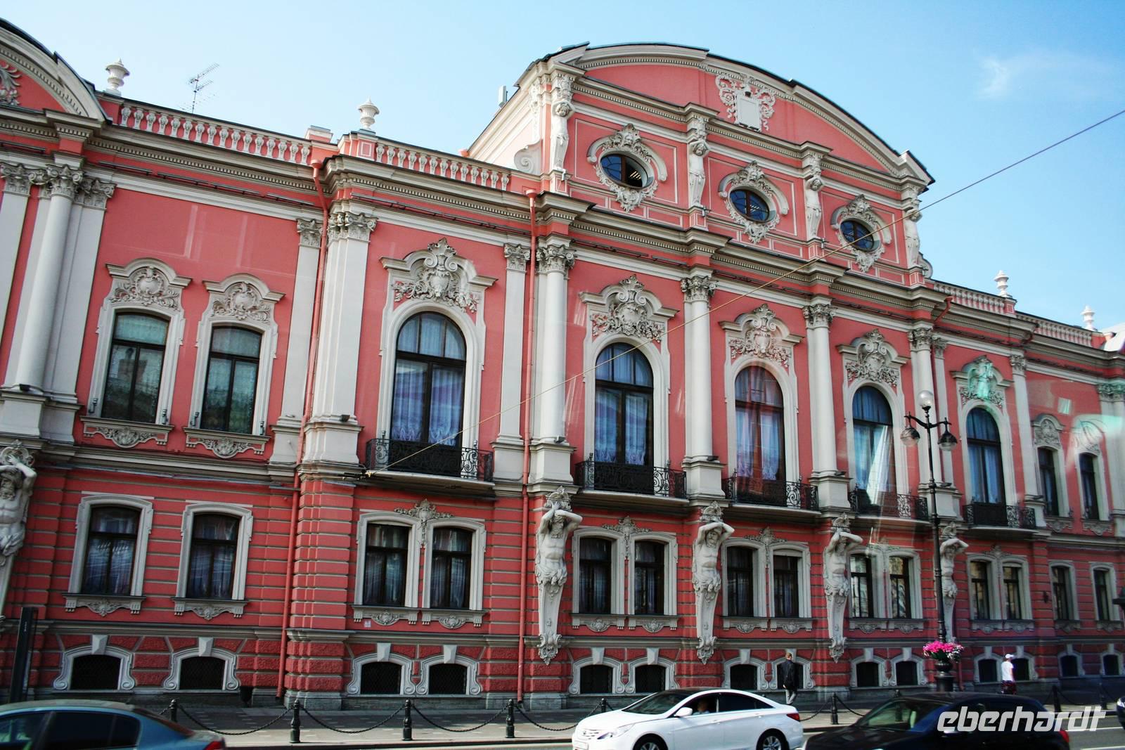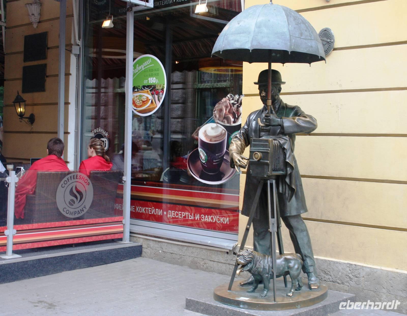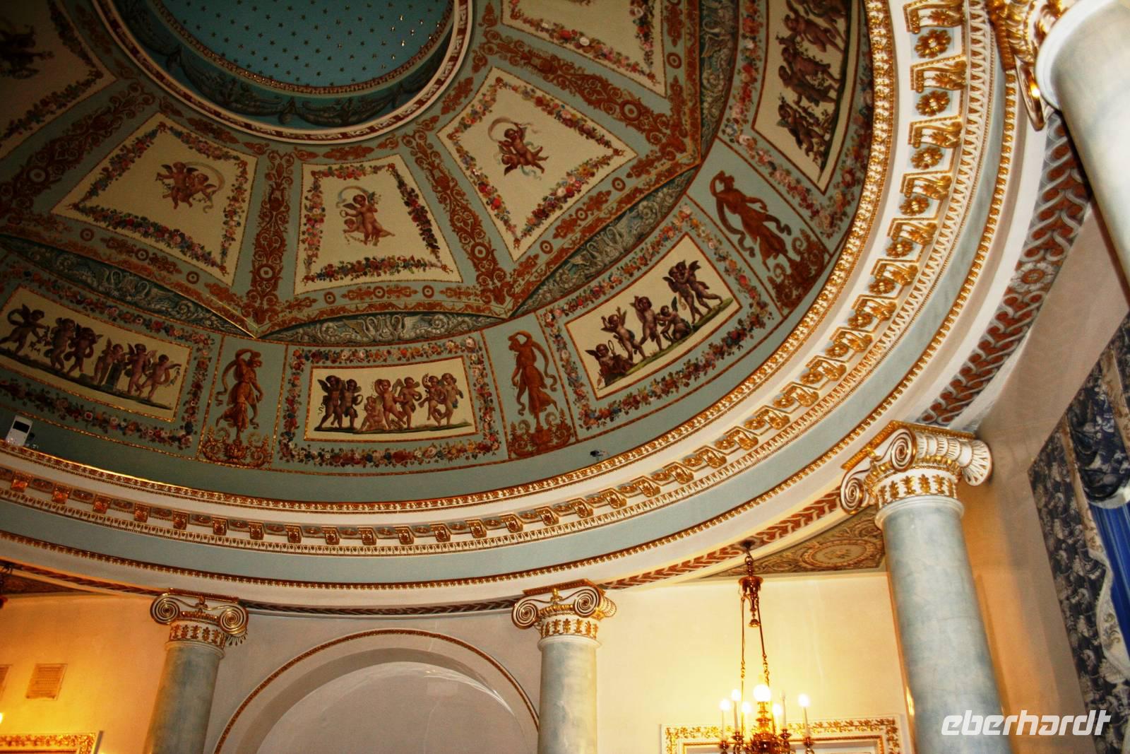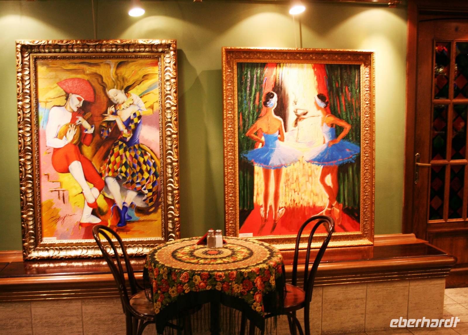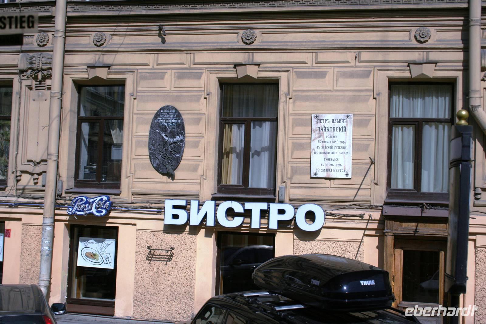 Am Vormittag besuchten wir einen der schönsten Adelspaläste der Stadt, den Jussupow-Palast. Die Familie Jussupow gehörte zu den reichsten Adelsfamilien und größten Kunst-Mäzenen der Stadt. Igor führte uns das Treppenhaus sowie die prunkvollen Räume des Palastes mit der Bibliothek, den Galerien und dem neobarocken kleinen Theater. Natürlich berichtete er uns vom Leben der Familie und der Ermordung des Wunderheilers Rasputin in diesem Palast. An der Galeriewand der exklusiven Gäste des Palastes war neben dem Foto von der englischen Queen noch Platz, den wir gleich für unser Eberhardt-Foto reservierten. Nach dieser interessanten Führung fuhren wir zum Isaaks-Platz, wo die meisten Gäste im Cafe "Glück" einen süßen oder gesunden Mittagssnack verspeisten oder auch nur bei einem Kaffee den Blick auf die Isaaks-Kathedrale genossen.