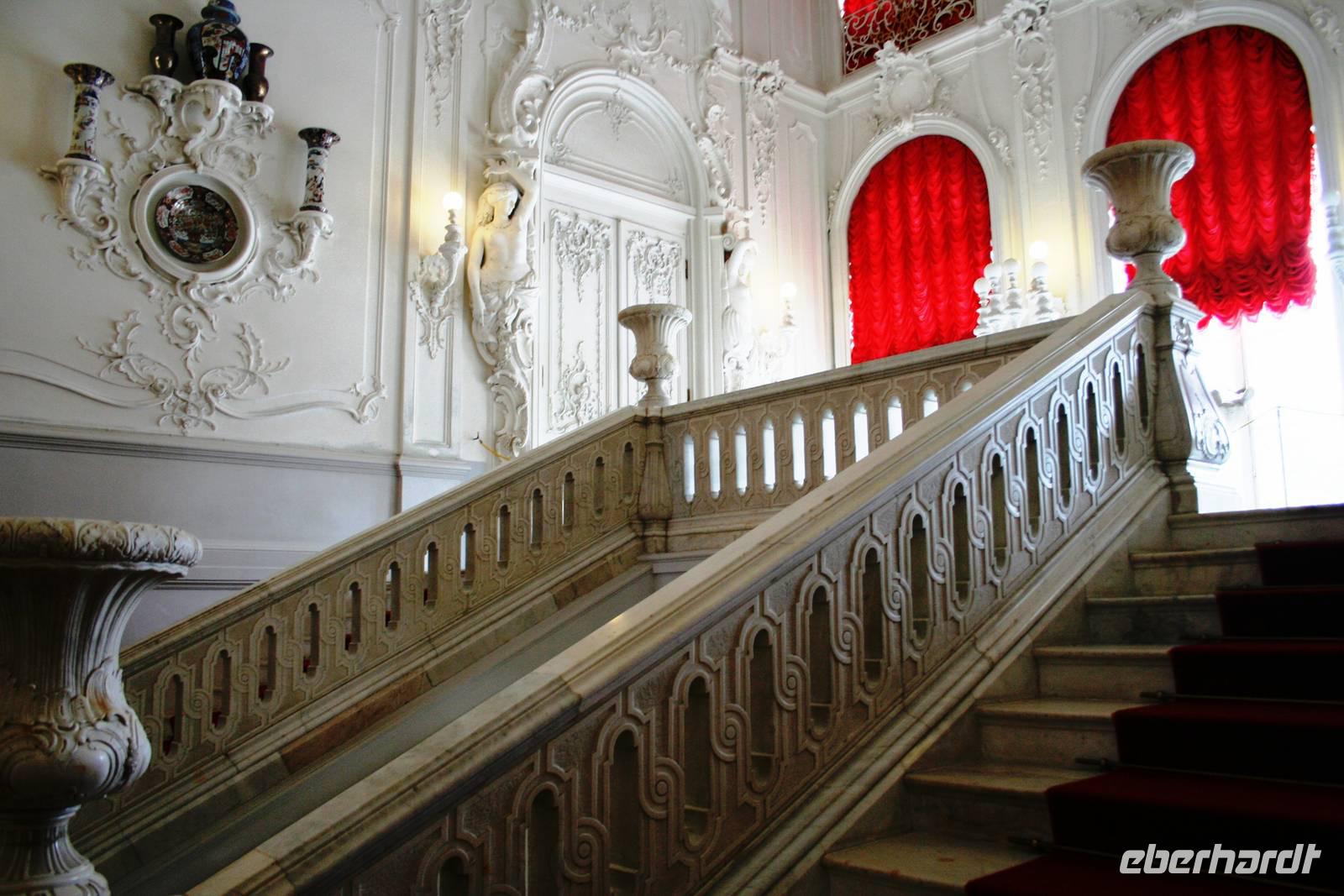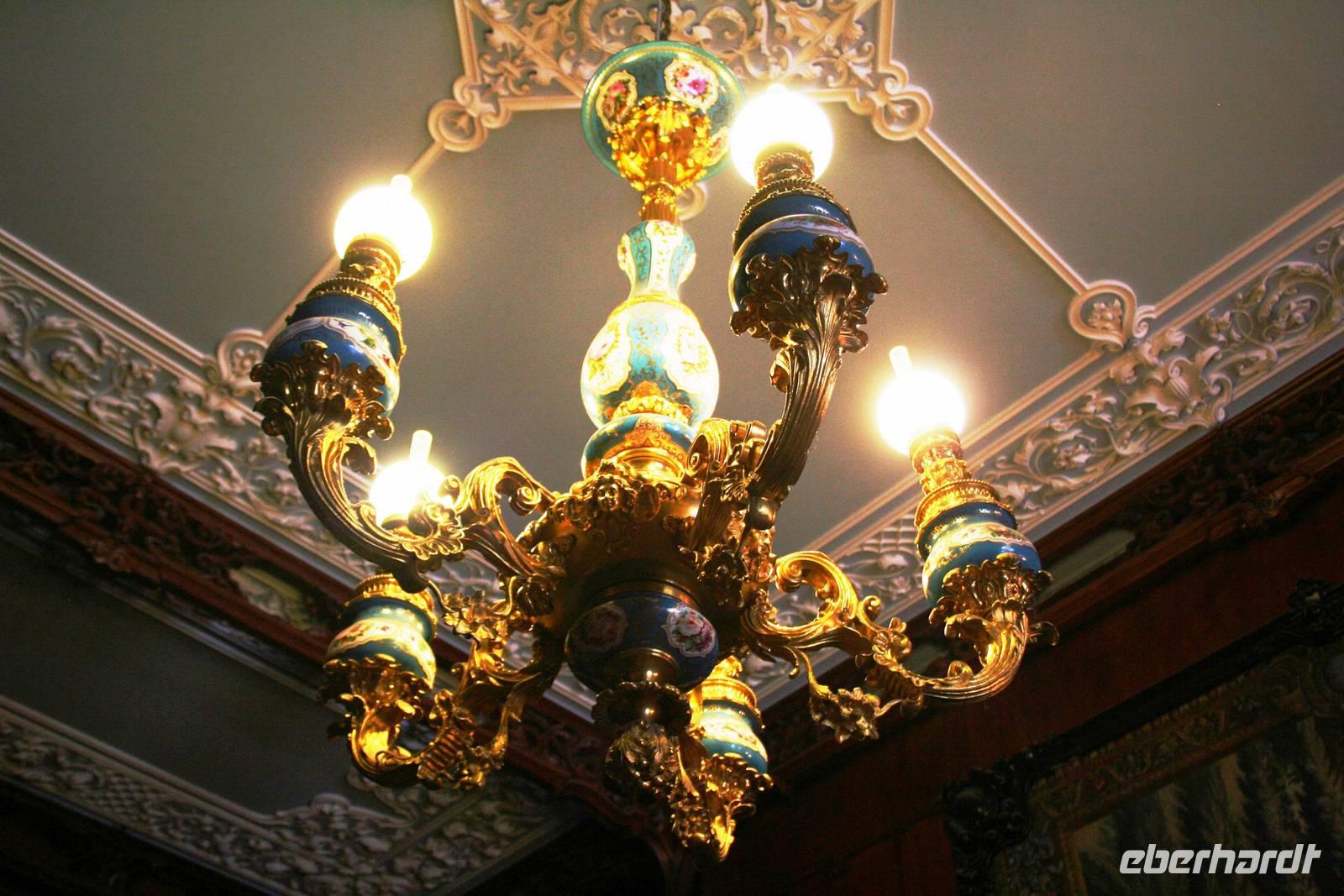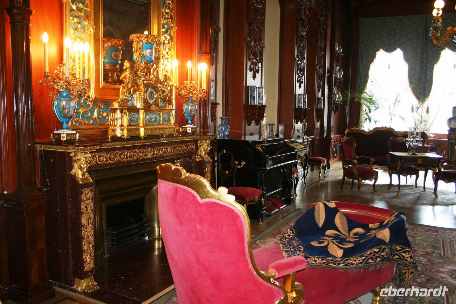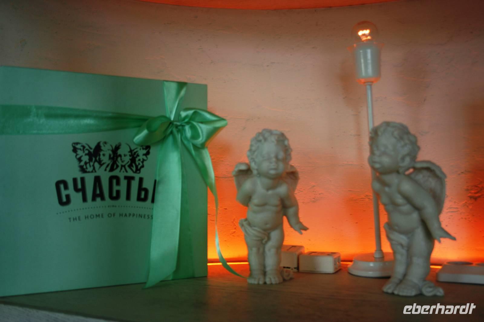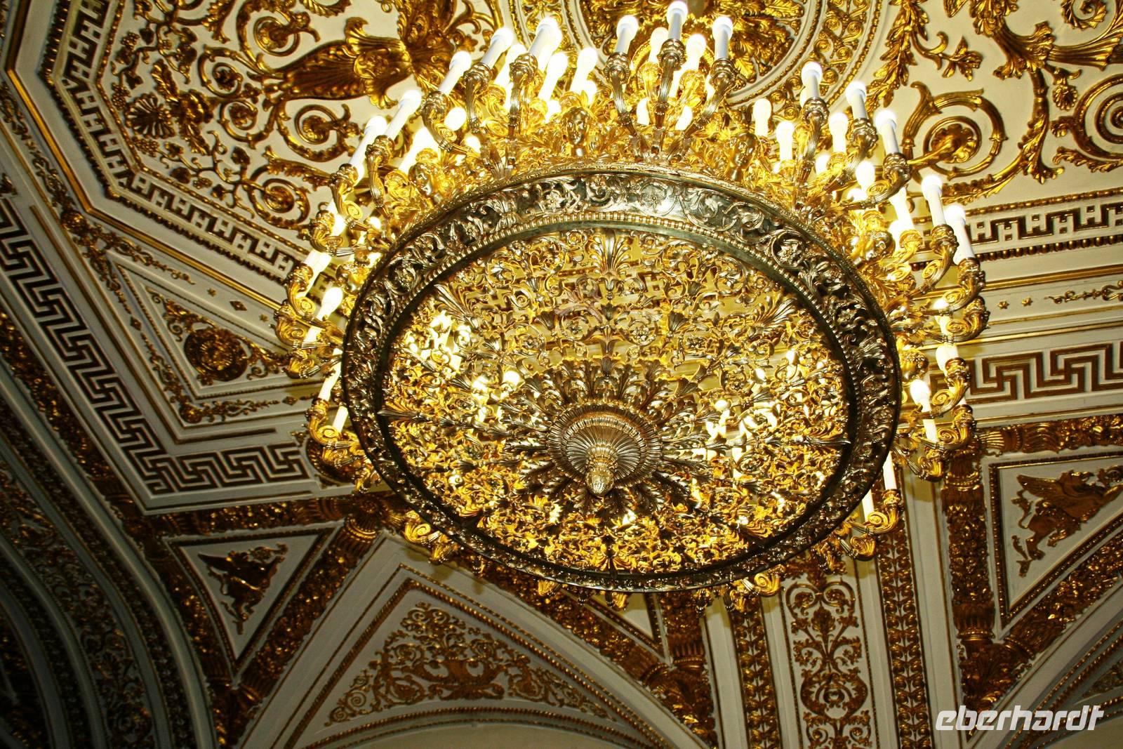 Am Vormittag besuchten wir einen der schönsten Adelspaläste der Stadt, den Jussupow-Palast. Die Familie Jussupow gehörte zu den reichsten Adelsfamilien und größten Kunst-Mäzenen der Stadt. Igor führte uns das Treppenhaus sowie die prunkvollen Räume des Palastes mit der Bibliothek, den Galerien und dem neobarocken kleinen Theater. Natürlich berichtete er uns vom Leben der Familie und der Ermordung des Wunderheilers Rasputin in diesem Palast. An der Galeriewand der exklusiven Gäste des Palastes war neben dem Foto von der englischen Queen noch Platz, den wir gleich für unser Eberhardt-Foto reservierten. Nach dieser interessanten Führung fuhren wir zum Isaaks-Platz, wo die meisten Gäste im Cafe "Glück" einen süßen oder gesunden Mittagssnack verspeisten oder auch nur bei einem Kaffee den Blick auf die Isaaks-Kathedrale genossen.