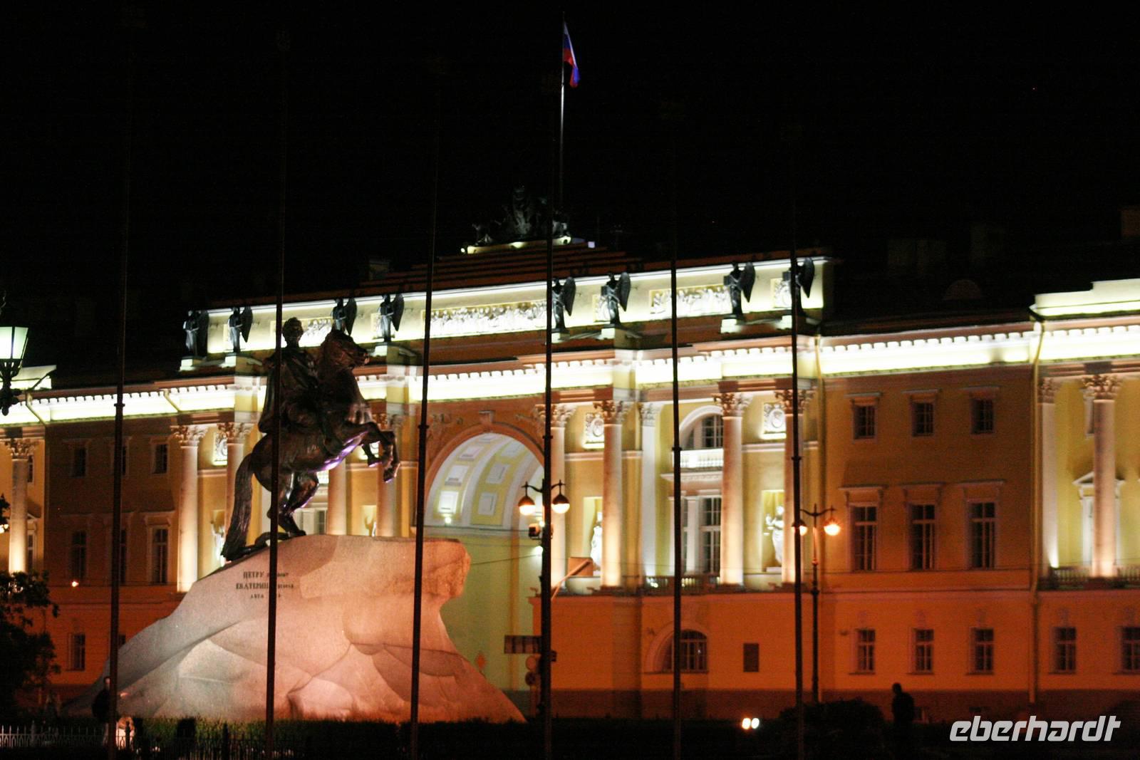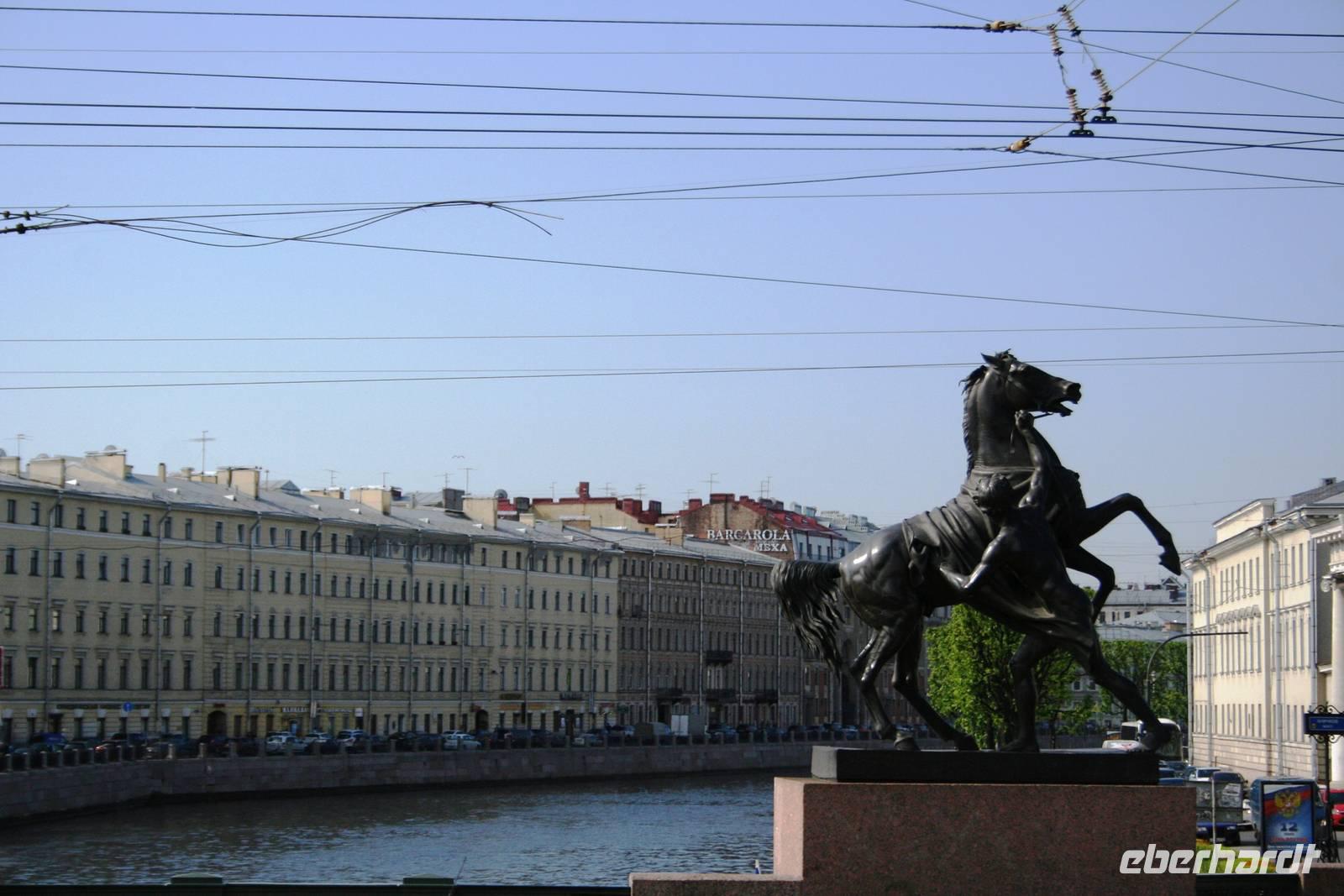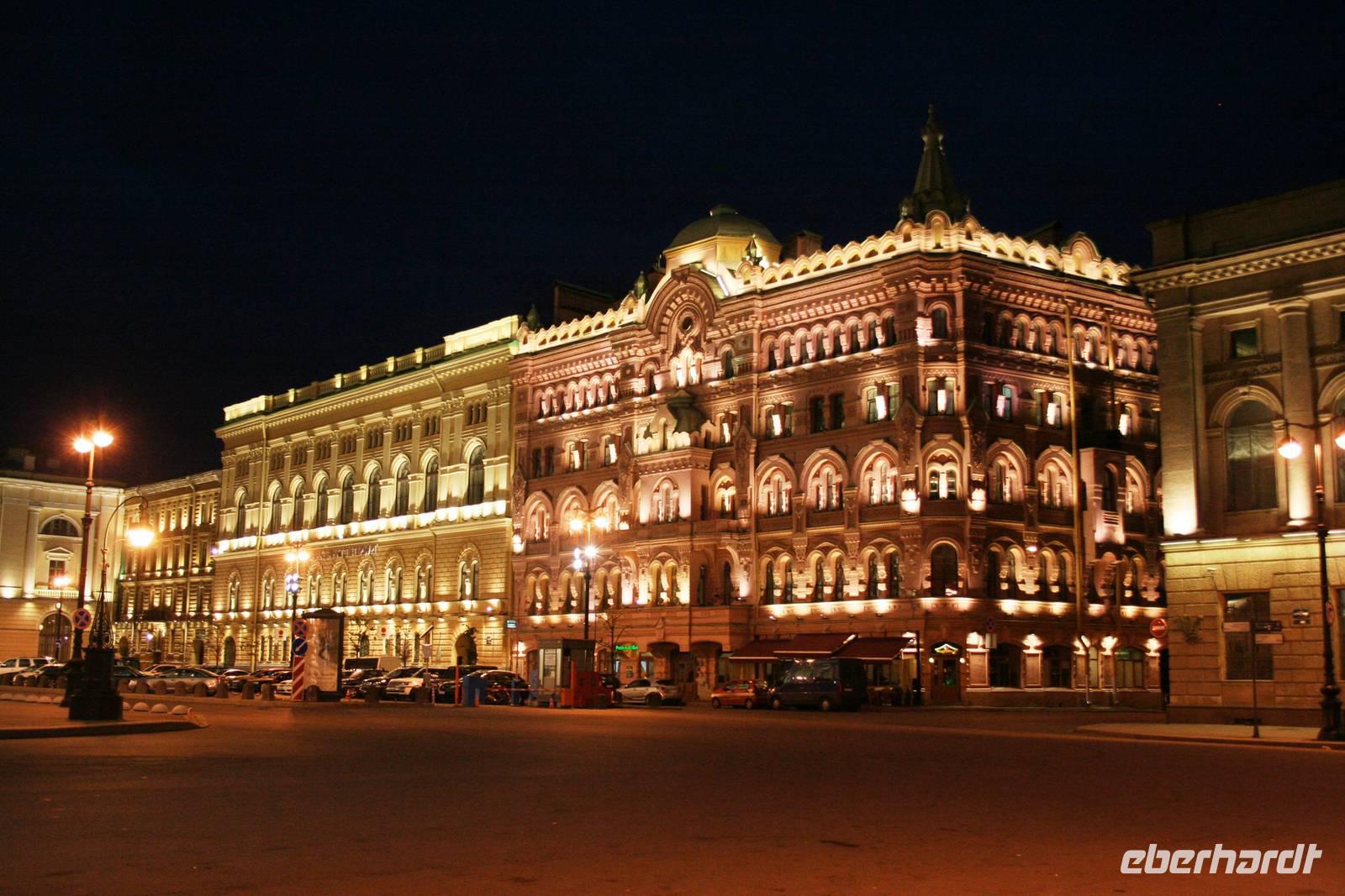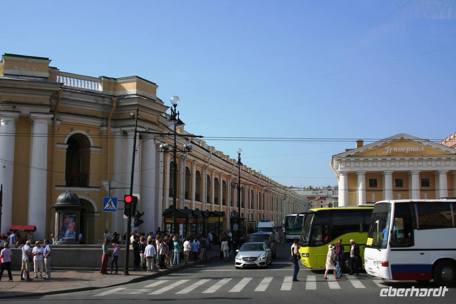 Pünktlich erreichten alle Gäste unserer Reisegruppe den Flughafen Berlin-Tegel. Nach dem Check In im Terminal C stärkten wir uns bei einem riesigen Sandwich für unseren ca. 2stündigen Flug mit Air Berlin nach St. Petersburg. Dort angekommen mußten wir unsere Uhren 2 h vorstellen, um uns dem Rhythmus der 5-Millionenstadt an der Newa anzupassen. Die Passkontrolle bei Einreise verlief relativ zügig und problemlos, hatten doch alle ein gültiges Visa, das Eberhardt TRAVEL für alle Gäste erstellen liess. Direkt am Flughafen begrüßte uns unser Reiseleiter Igor und unser Busfahrer Anton herzlich, ebenso ein heftiger Regenschauer, der aber der einzigste während unseres Aufenthaltes sein sollte. Schon auf der Fahrt zu unserem Hotel erhielten wir einen ersten Eindruck von der nördlichsten Millionenstadt der Welt. Unser Hotel "Crowne Plaza" befindet sich in idealer Zentrumslage gegenüber dem Moskauer Bahnhof, nur einen Steinwurf vom Newsky Prospekt entfernt. Wir waren mittendrin und das Hotel machte seinen 4 Sternen mehr als Ehre: Schöne, hochwertig ausgestattete Zimmer, freundliches Personal und gutes Essen. Nach dem Abendessen vom reichhaltigen Buffet unternahmen wir einen kleinen Spaziergang, natürlich zunächst zur Wechselstube, wo EUROs zu einem sehr guten Kurs in Rubel getauscht wurden. Es war bereits 22 Uhr, aber noch fast taghell. So dehnten einige Gäste ihren Spaziergang aus und erkundeten die Umgebung nebst interessanter Hinterhöfe und spannender Stromversorgungsanlagen. Für weitere individuelle Aktivitäten befinden sich ganz in der Nähe auch zahlreiche Restaurants und Bars, ein überdimensionales Shopping-Center und kleine "Tante Emma" Läden, die 24 h geöffnet sind.