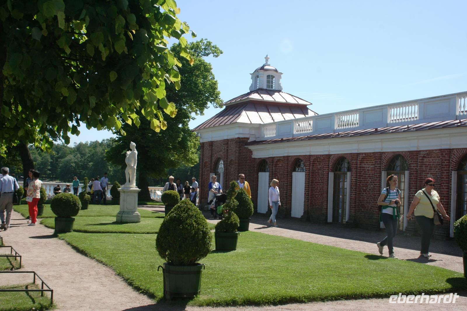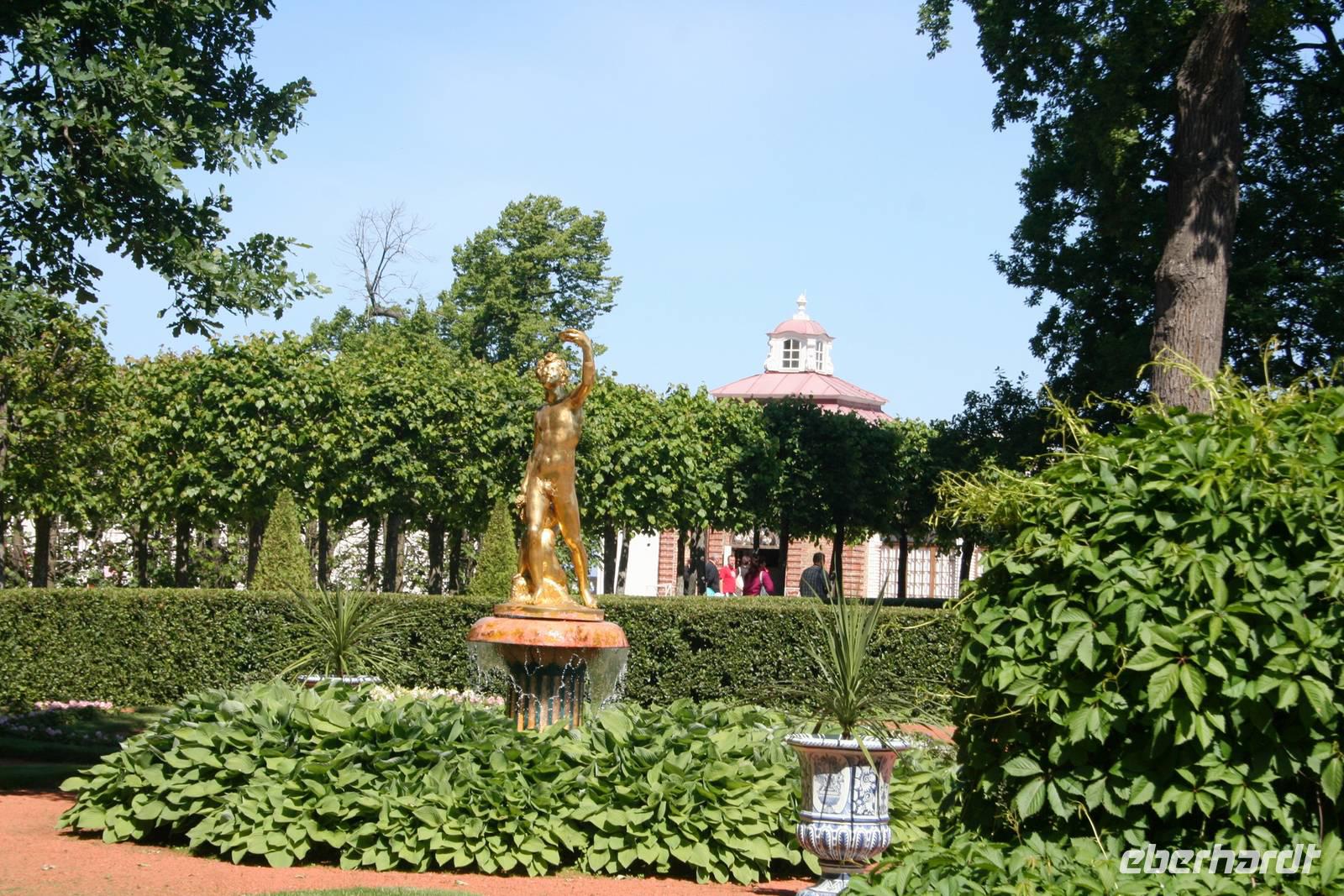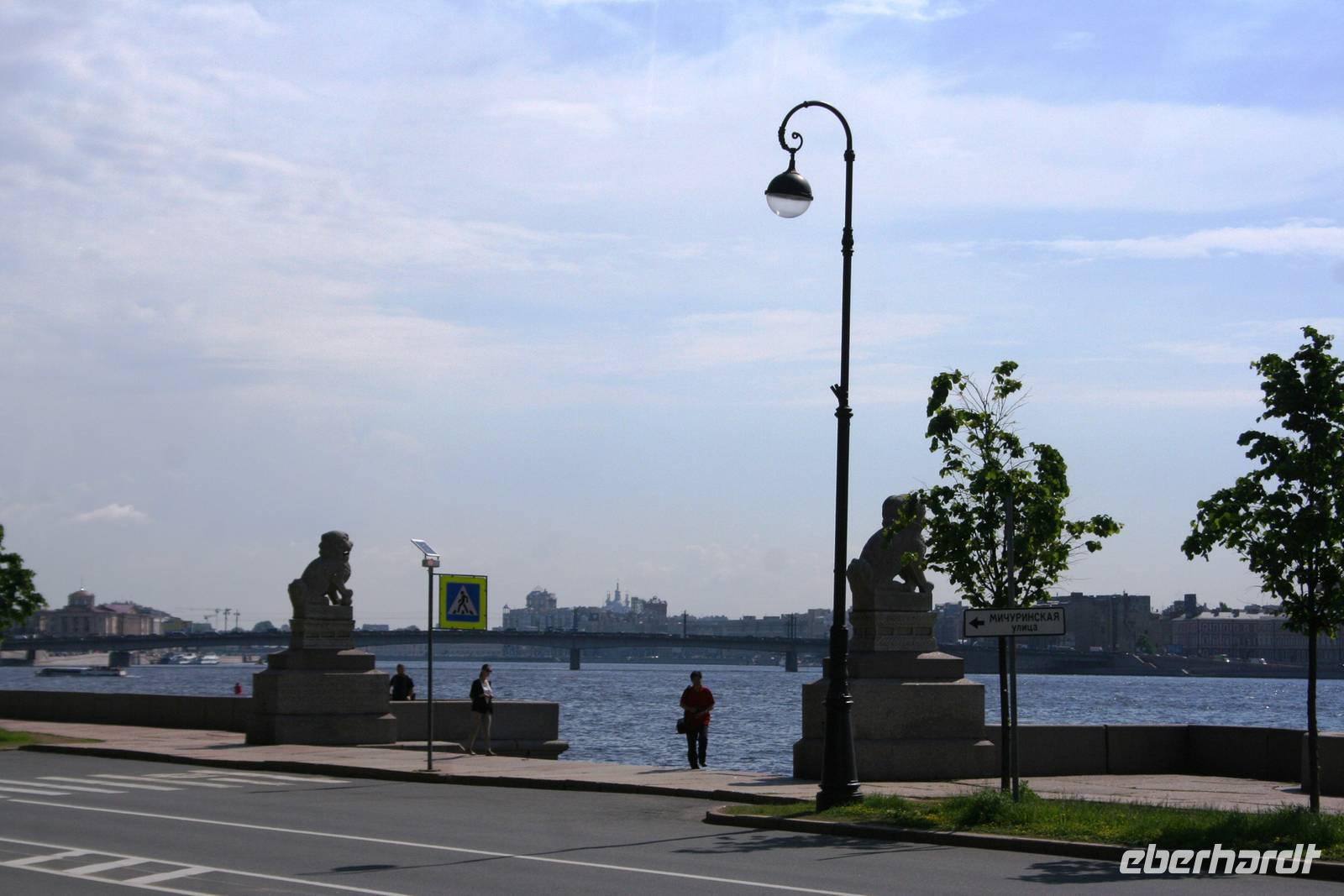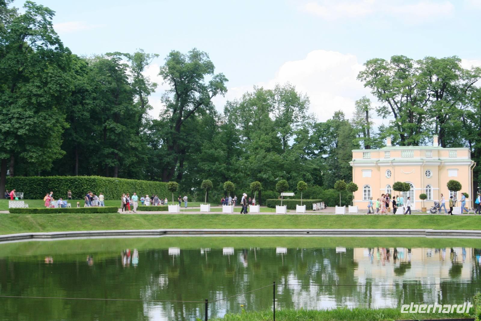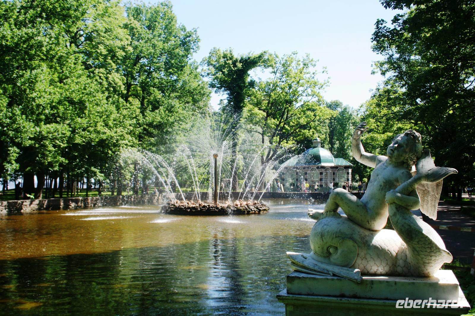 Bei herrlichem Sommerwetter unternahmen wir dann einen gemeinsamen Spaziergang durch den unteren Park, wo Igor wieder jeden Brunnen und jede Ecke kennt. Wir bestaunten die unterschiedlichen Brunnen der berühmten Wasserkunst von Peterhof: die Schachbrettkaskade, die Römischen Fontänen, die Sonnenfontäne und die einzigartigen Scherzfontänen. Am Lustschlösschen Monplaisir blickten wir über den Finnischen Meerbusen und sahen sogar die goldglänzende Kuppel des Marine Domes von Kronstadt. Ja, Peter I. hatte sich da ein schönes Fleckchen für seinen Lieblingsplatz in Peterhof ausgesucht. In der anschließend freien Zeit verweilten viele Gäste in einem Cafe oder stöberten an den zahlreichen Verkaufsständen nach Souveniren. Am Nachmittag waren wir zurück und nutzten die Zeit bis zum Abendessen zum Entspannen oder auch zu einem Bummel über den Newsky Prospekt.