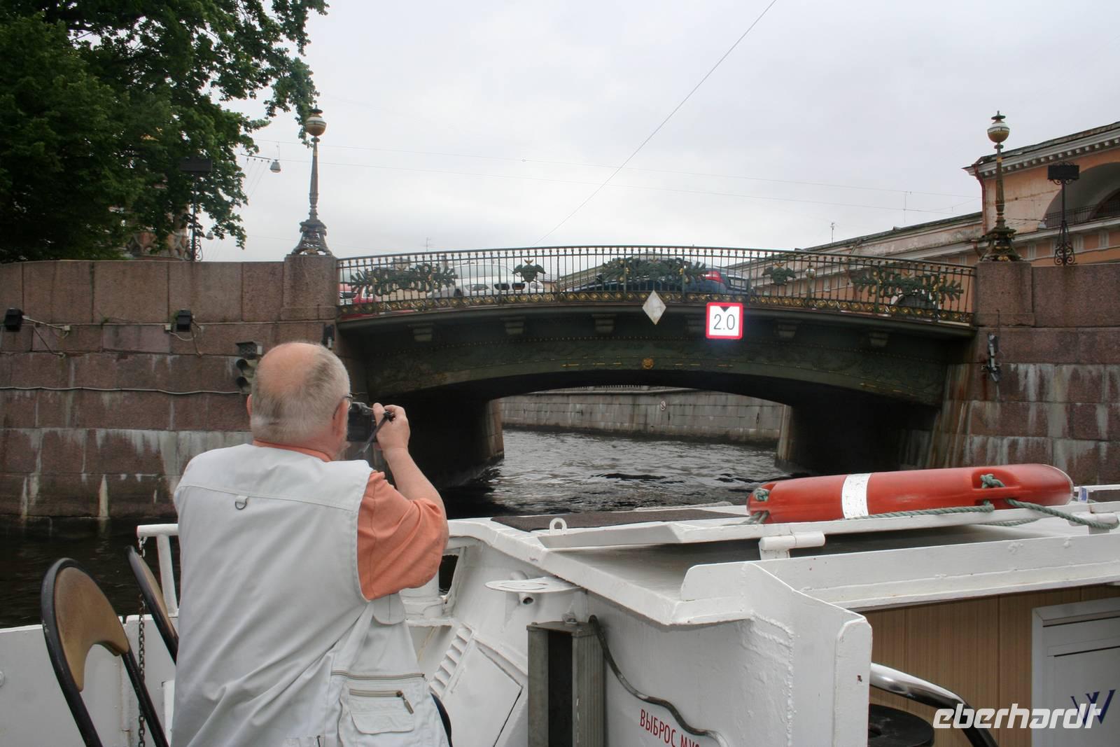 Am Nachmittag unternahmen wir eine Bootsfahrt auf den Kanälen Moika und Fontanka sowie auf der offenen Newa. Unterwegs bestaunten wir die wunderbaren Bauwerke und Brücken des Venedigs des Nordens nun aus einer völlig anderen Perspektive. Zu diesem entspannten Kunstgenuss der anderen Art servierte Eberhardt ein Gläschen Schampanskoje und russisches Konfekt. Das Abendessen wurde uns diesmal im Hotel als schmackhaftes 3-Gänge-Menü serviert.