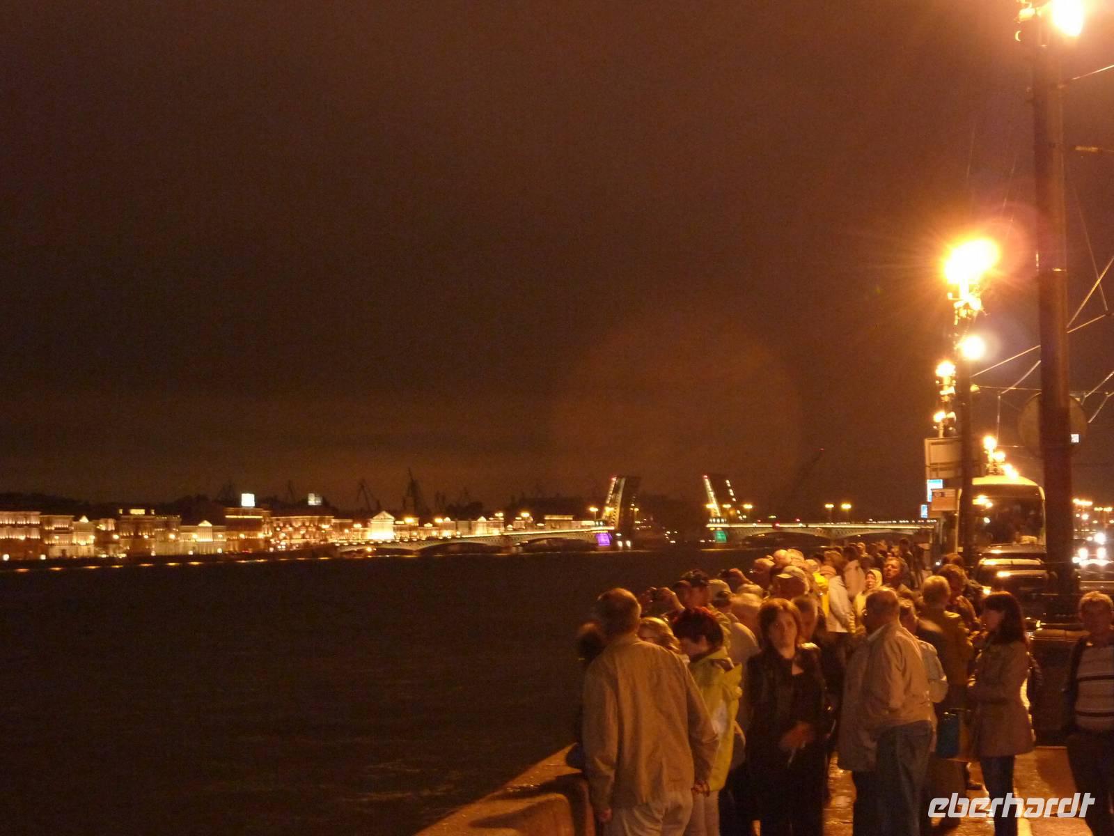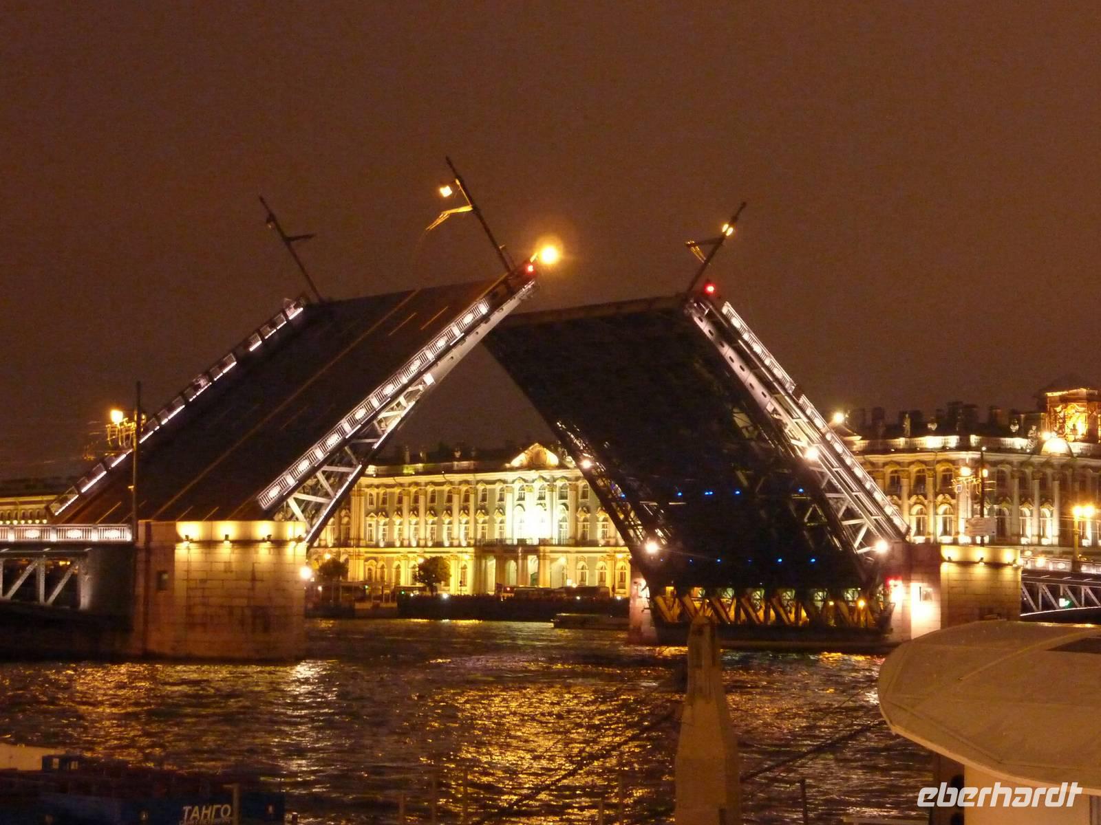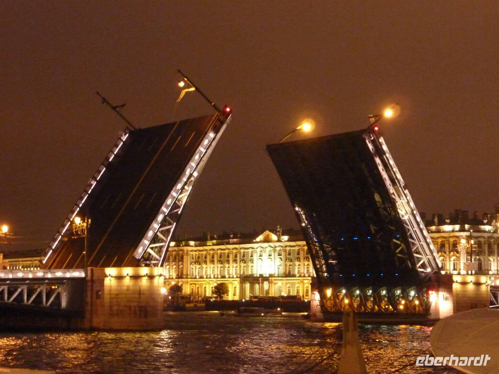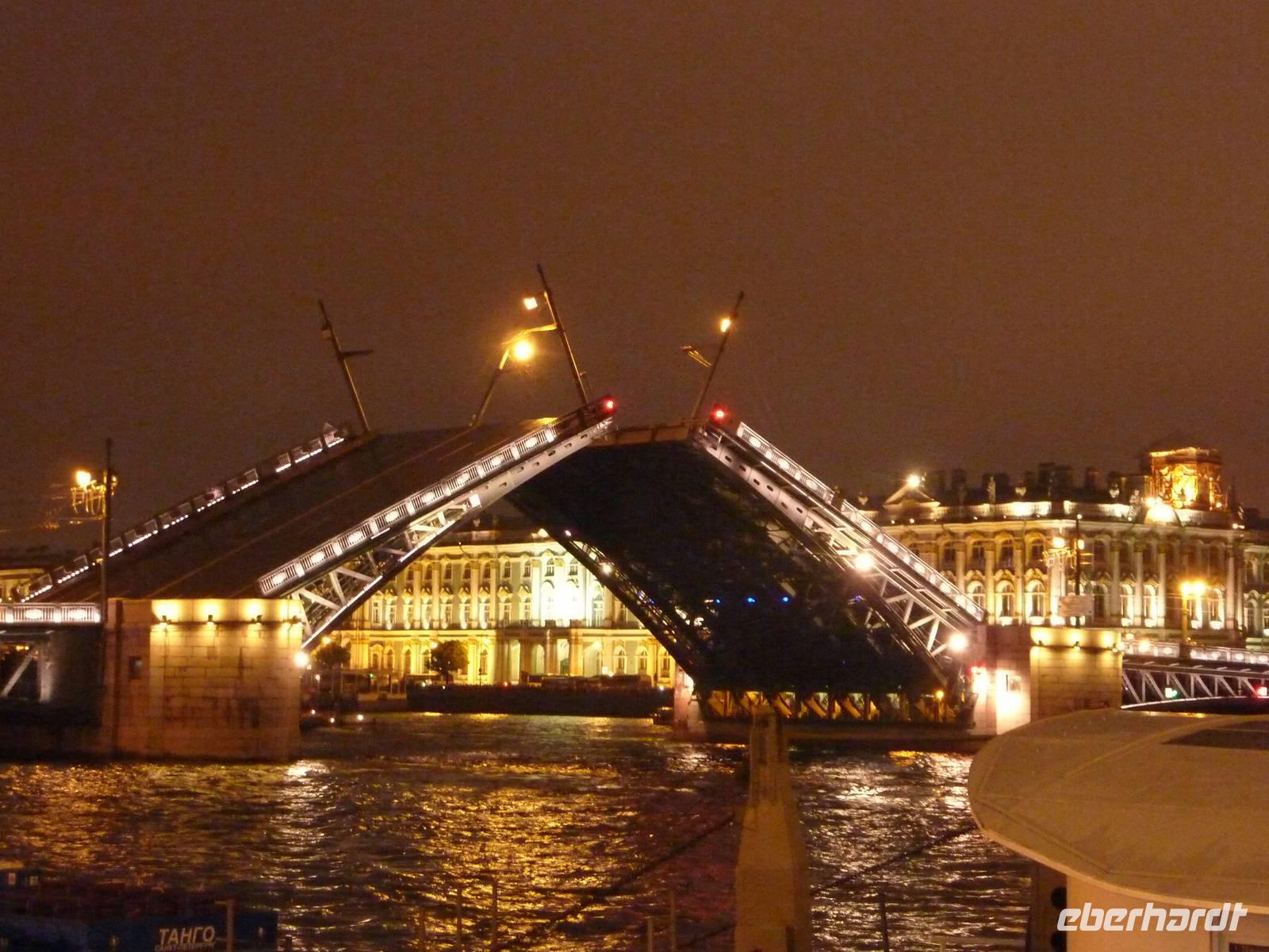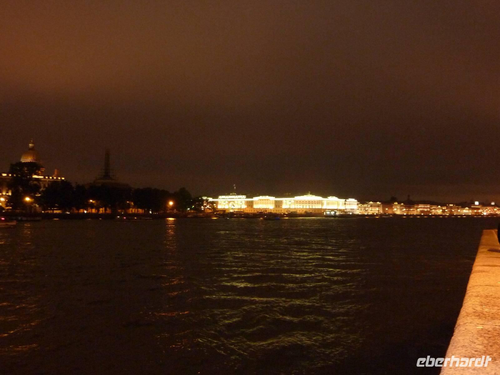 Auch heute meinte es Petrus noch nicht gut mit uns...Wir stärkten uns bei einem Frühstück im Hotel und starteten 9.15Uhr zu unserer Stadtrundfahrt. Von der Wassiljewski-Insel führte uns der Weg über die Leutnant-Schmidt-Brücke in Richtung Admiralität. Wir fuhren vorbei an der Isaak-Kathedrale und passierten den Platz der Arbeit. Auch das "Herz der Stadt", der Schlossplatz mit der Alexandersäule und der Eremitage durfte bei der ersten Stippvisite nicht fehlen. Wir erfuhren viel über die, im Jahre 1703 gegründete Stadt. Am Mittag fuhren wir auf die Haseninsel und besichtigten die Peter-und-Paul-Kathedrale, welche sich in dem langgestreckten Sechseck der Peter-und-Paul-Festung befindet. Diese Anlage galt ursprünglich als Wehranlage und wurde durch den italienisch-schwedichen Architekten Trezzini entworfen. Wahrzeichen der Insel und der gesamten Stadt ist die goldene, 122 Meter hohe Turmnadel der Kathedrale. Am Platz der Künste stärkten wir uns mit einem kleinen Snack für die bevorstehende Metrofahrt. Vom Moskauer Bahnhof startete unsere Fahrt mit der "roten" Linie (1) bis zur schönsten Metrostation - Avtovo. Von da aus bestaunten wir noch zwei weitere Metro-Stationen (Kirovsky Zavod und Narvskaya) und staunten über die schöne Gestaltung der damaligen Zeit. Zum späten Nachmittag endete der erste Programmteil mit der Fahrt ins Hotel oder einem längeren Verweilen in der Stadt. Am Abend genossen wir das Abendessen im Hotel und starteten Mitternacht zu unserer Lichterfahrt. Wir erlebten eine Millionenmetropole in strahlendem Glanz und bestaunten das Öffnen der Schlossbrücke um 1.25 Uhr.
