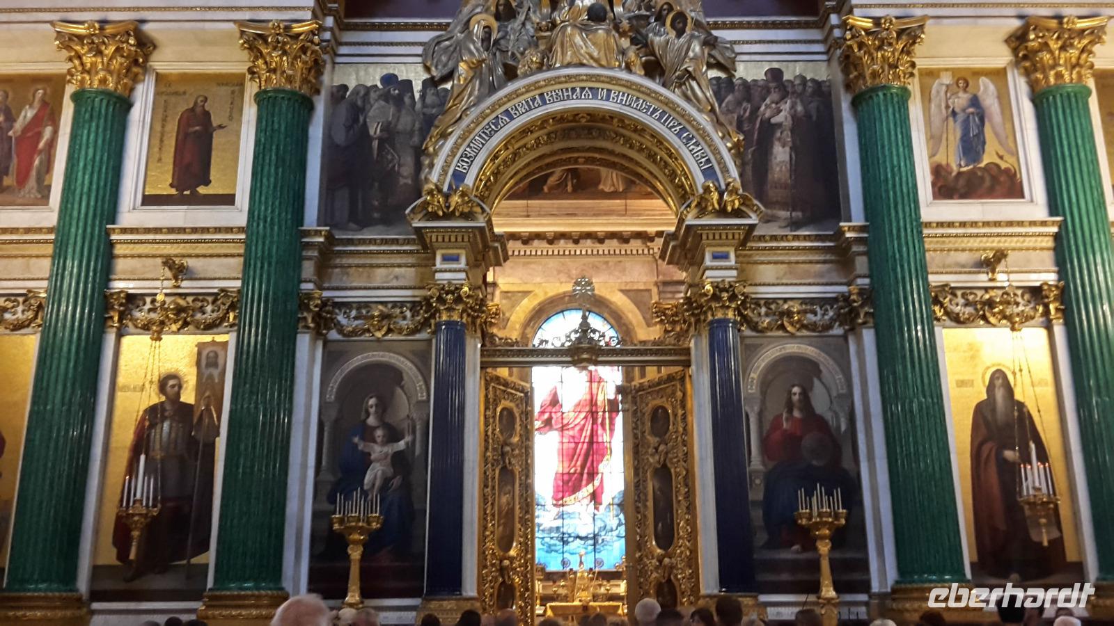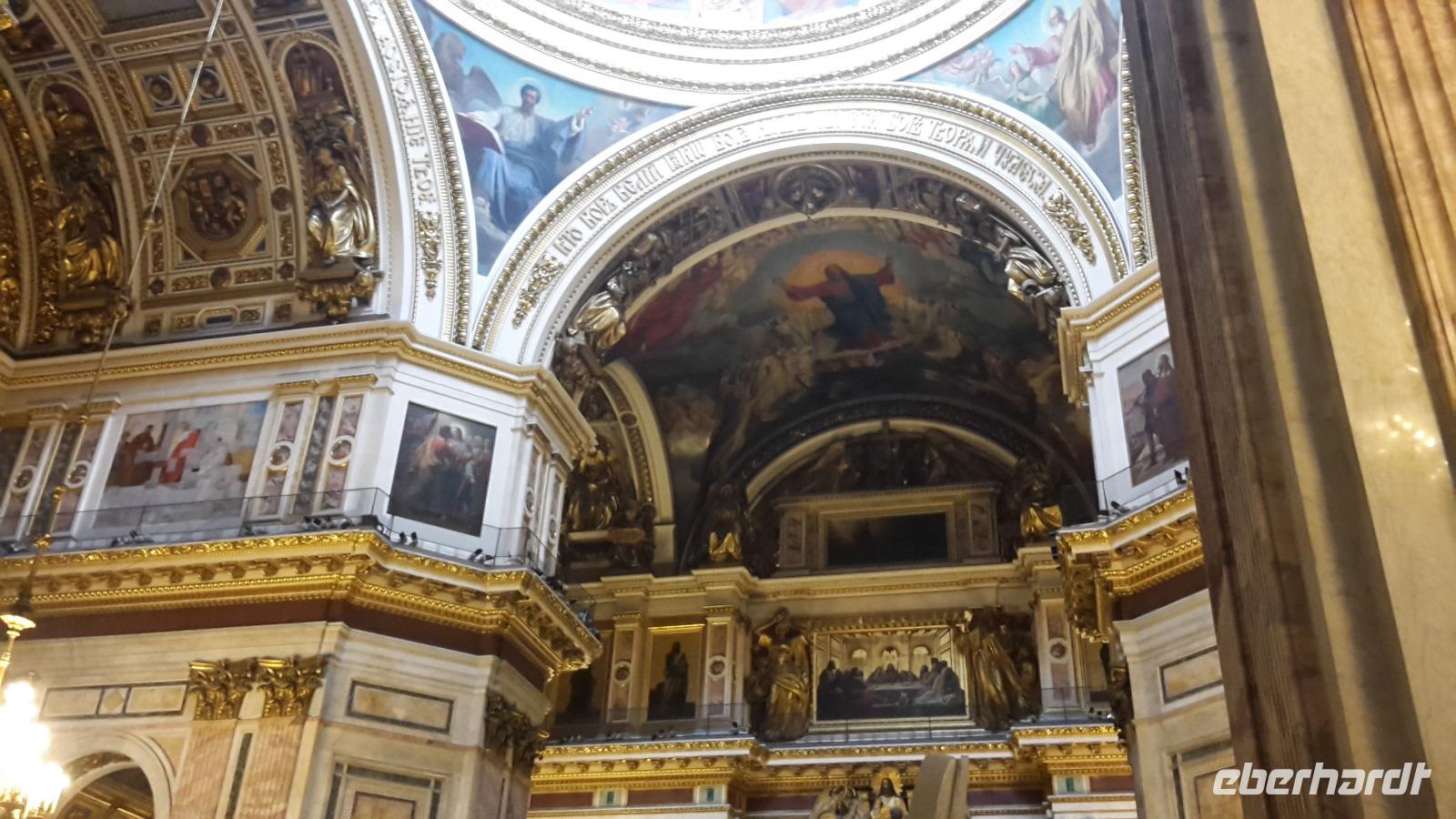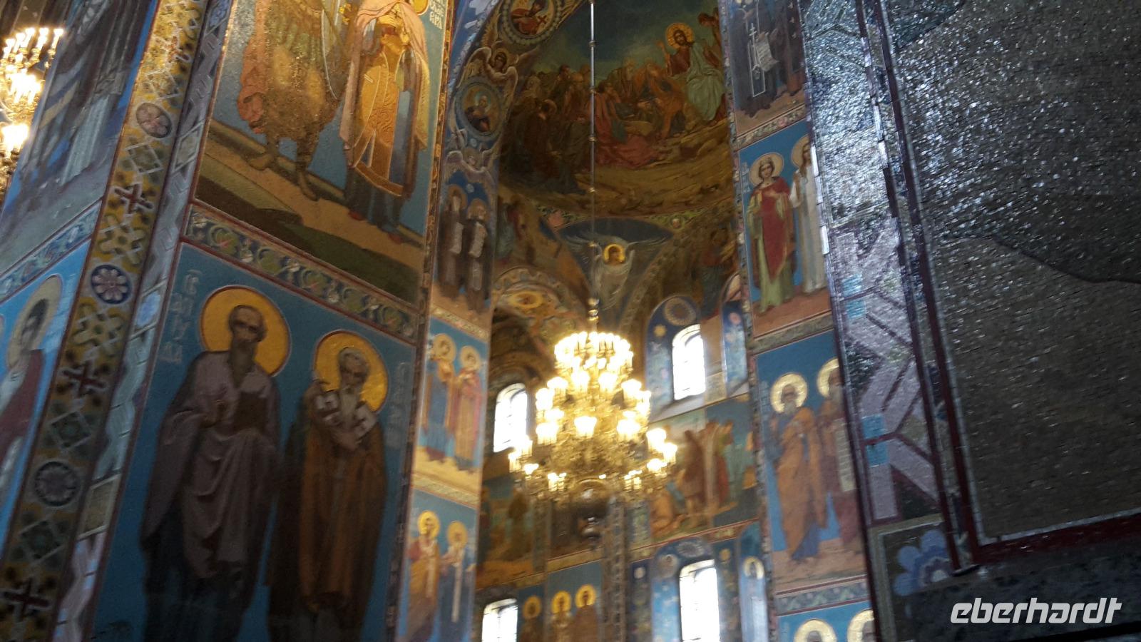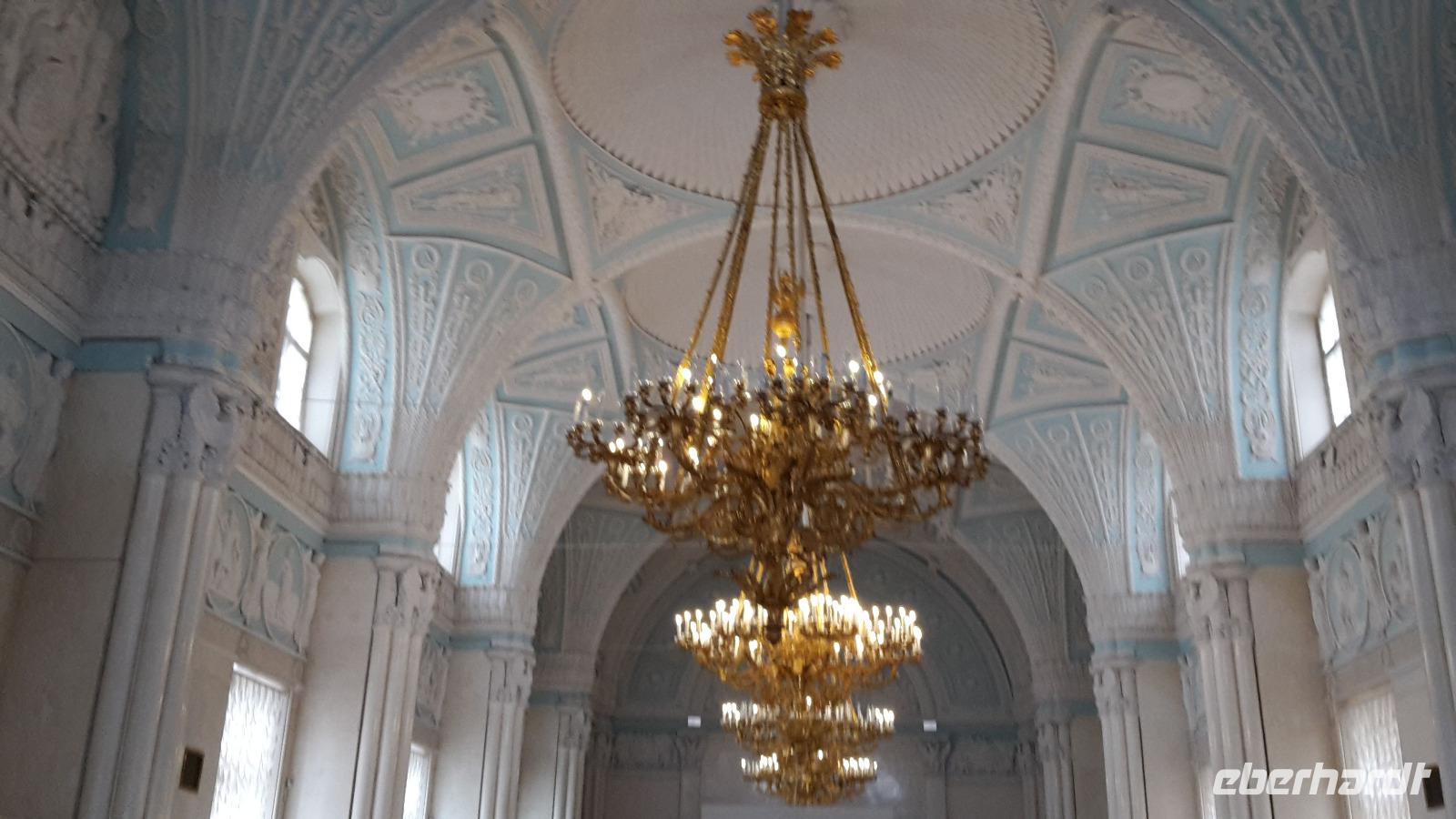 Nach einem gewohnt guten Frühstück konnten wir gestärkt den Tag beginnen. Kurzer Stopp zum Geld tauschen und weiter ging die Fahrt zur Blutskirche. Das Innere der Kirche ist komplett als Mosaik gestaltet und wir erlebten eine tolle Atmosphäre zum Innehalten. Unsere Hochachtung stieg vor den Restaurateuren, die hervorragende Arbeit geleistet haben. Nach der Besichtigung gint uns Natalia einen kleinen Einblick in die Vergangenheit, u.a. mit Gorbatschow. Ein weiterer Besichtigungspunkt ist die klassizistische Isaakskathedrale, die viel größer und detailverliebter als die Blutskirche gestaltet ist. Ein wenig Freizeit gibt uns die Möglichkeit die Aussichtsplattform der Kathedrale zu besuchen, die Ruhe im Park zu genießen oder die zahlreichen Brautpaare beim Fotoshooting zu beobachten. Wir fuhren weiter zur Sommerresidenz der Zarenfamilie nach Puschkin zum Katharinenpalast, durch den uns Natalia führte. Der Treppenaufgang war prunkvoll gestaltet, die goldenen Elemente im großen Saal beeindruckend, die Deckenmalereien überwältigend aber der absolute Höhepunkt war der Nachbau des Bernsteinzimmers. Beim anschließenden Besuch der tollen Souvernirshops erliegen wir teilweise der Schönheit des Bernsteins und nehmen das ein oder andere Erinnerungsstück mit nach Hause. Der folgende Spaziergang durch den scheinbar einfach angelegten Garten der Palastanlage war ein schöner Gegensatz zu der fast überladenen Gestaltung im Palast. Das Abendessen wurde uns im Restaurant „Podvorje"serviert, in dem auch schon Putin seinen Geburtstag gefeiert hat.