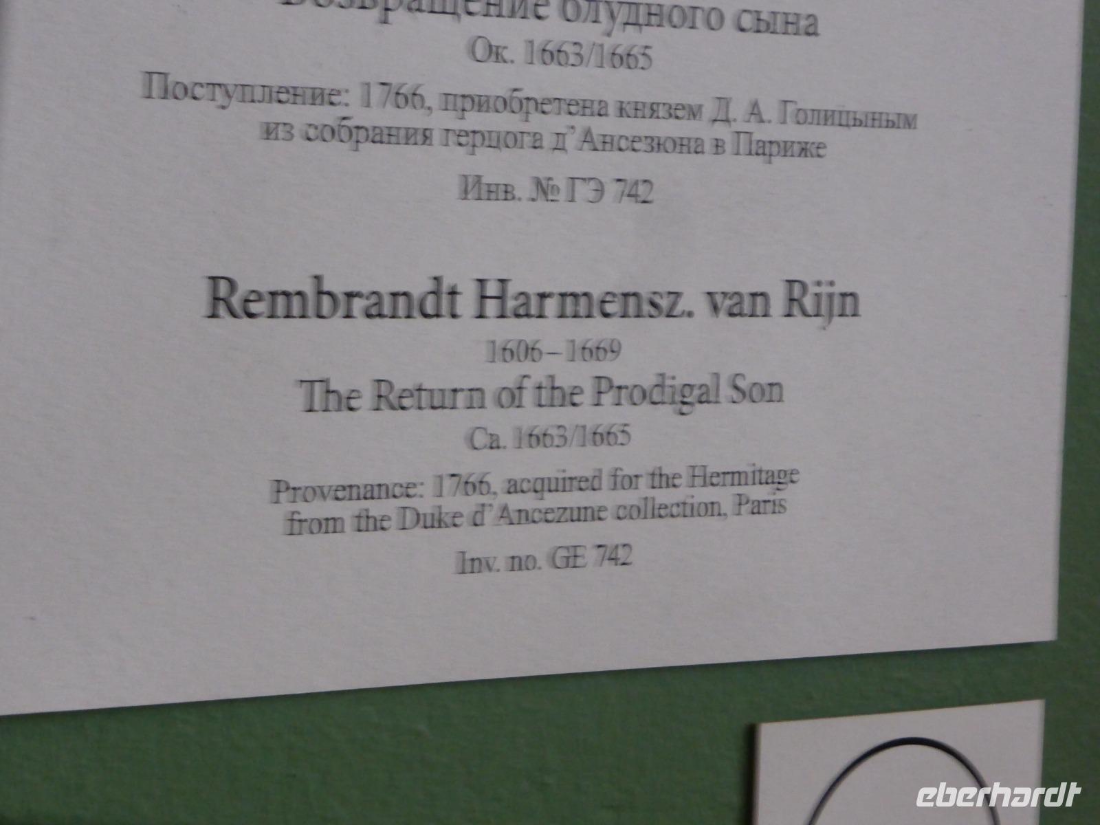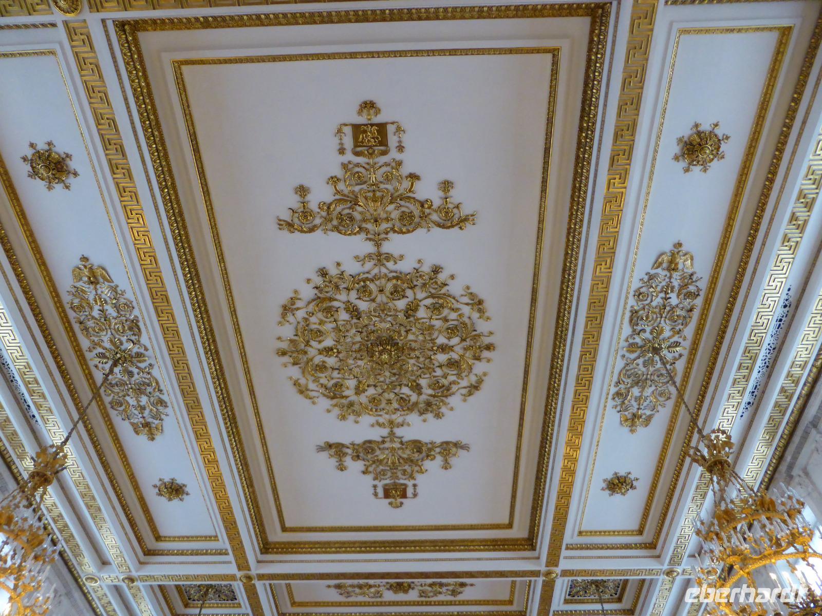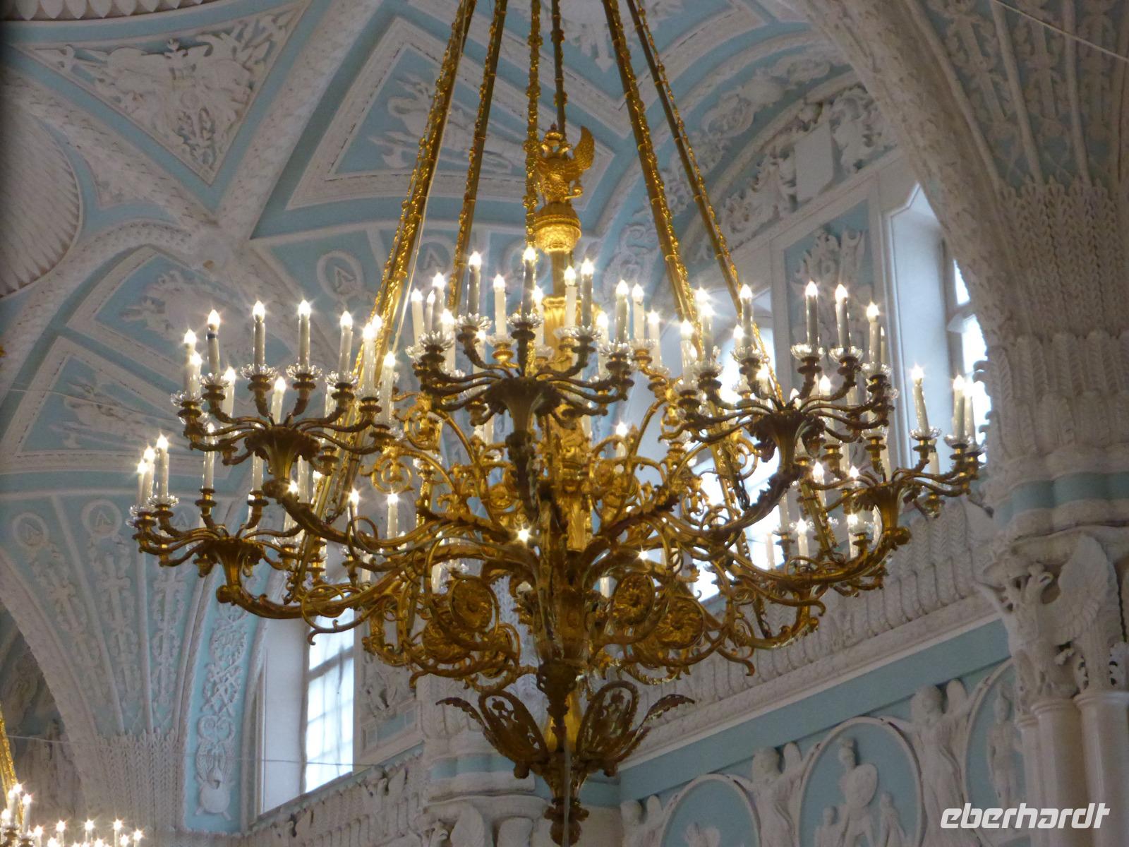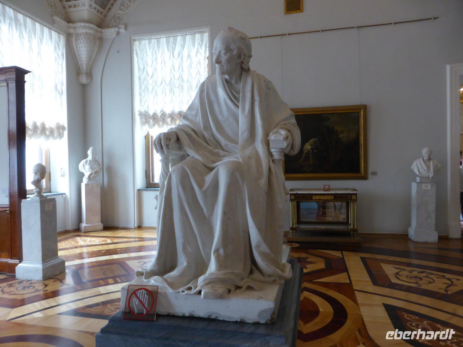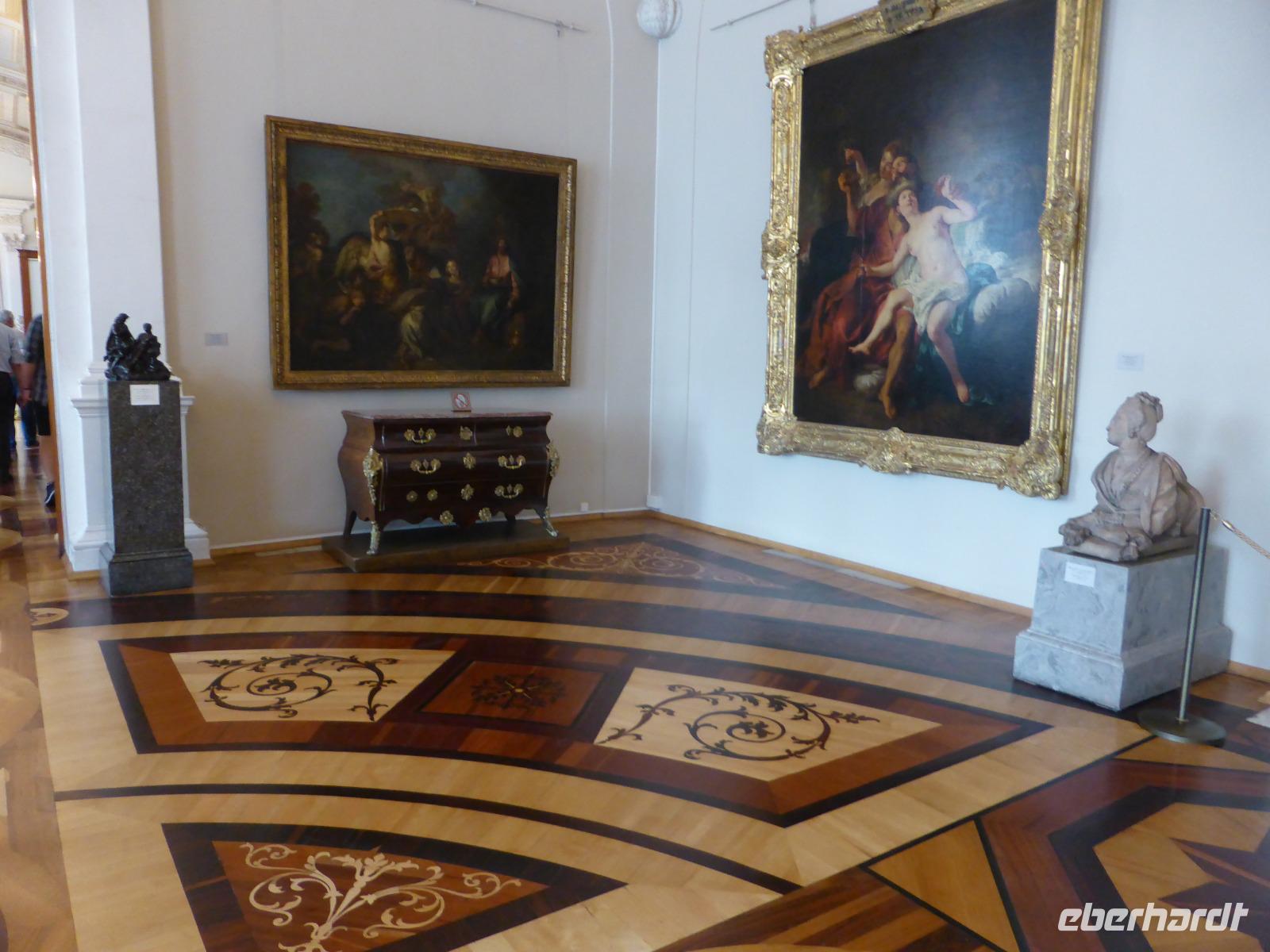 Nach der Mittagspause steht der Besuch der Eremitage auf dem Programm. Dreiundzwanzig Jahre lang und acht Kilometer weit müsste man darin unterwegs sein, um alle Ausstellungsstücke zu betrachten. Wir verkürzen auf gut zwei Stunden, anstrengend genug bei der Hitze und der Masse der Besucher. Sich zu orientieren in den vielen Räumen ist eine Herausforderung. In der zur Verfügung stehenden Zeit sind wir vor allem bei den Alten Meistern unterwegs. Bewundernd stehen wir vor einigen der bekanntesten Bilder.