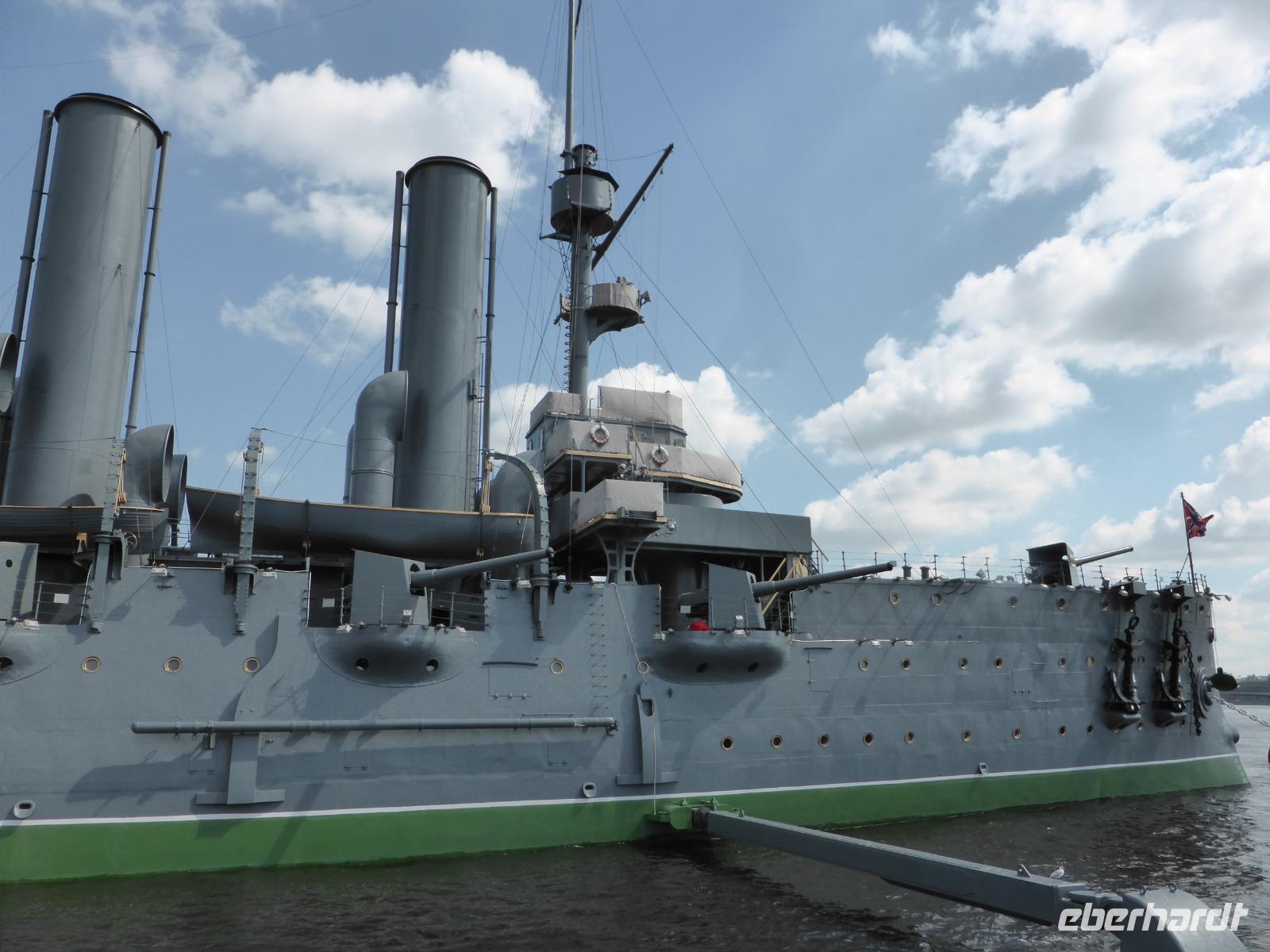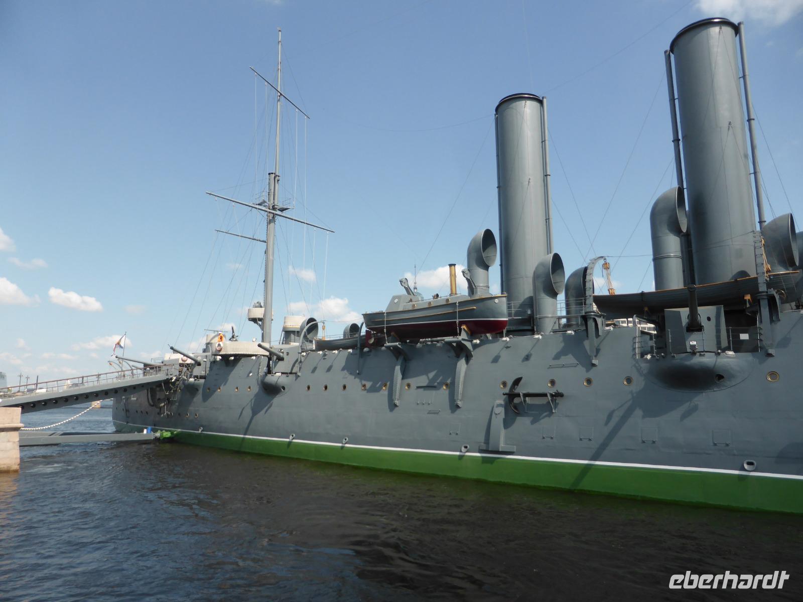 Zum Panzerkreuzer „Aurora" auf ihrem ewigen Ankerplatz seit 1948.
