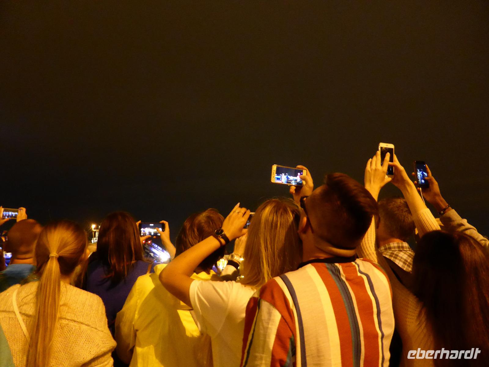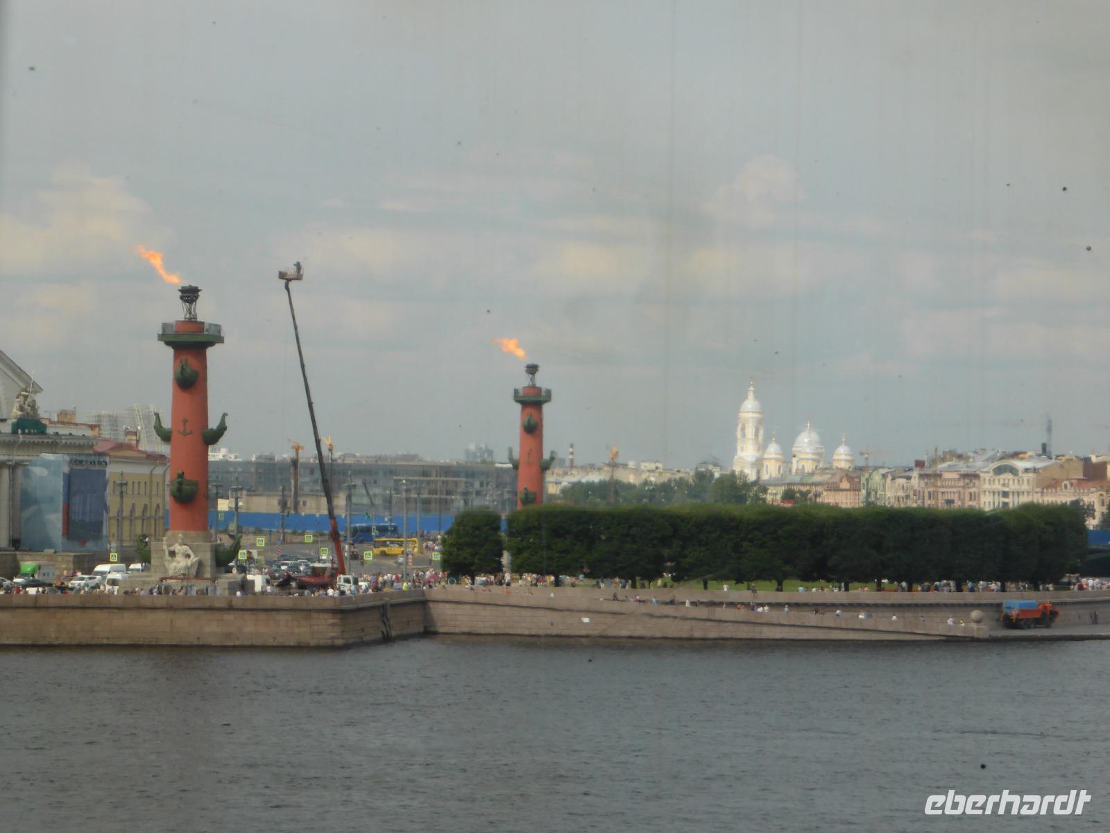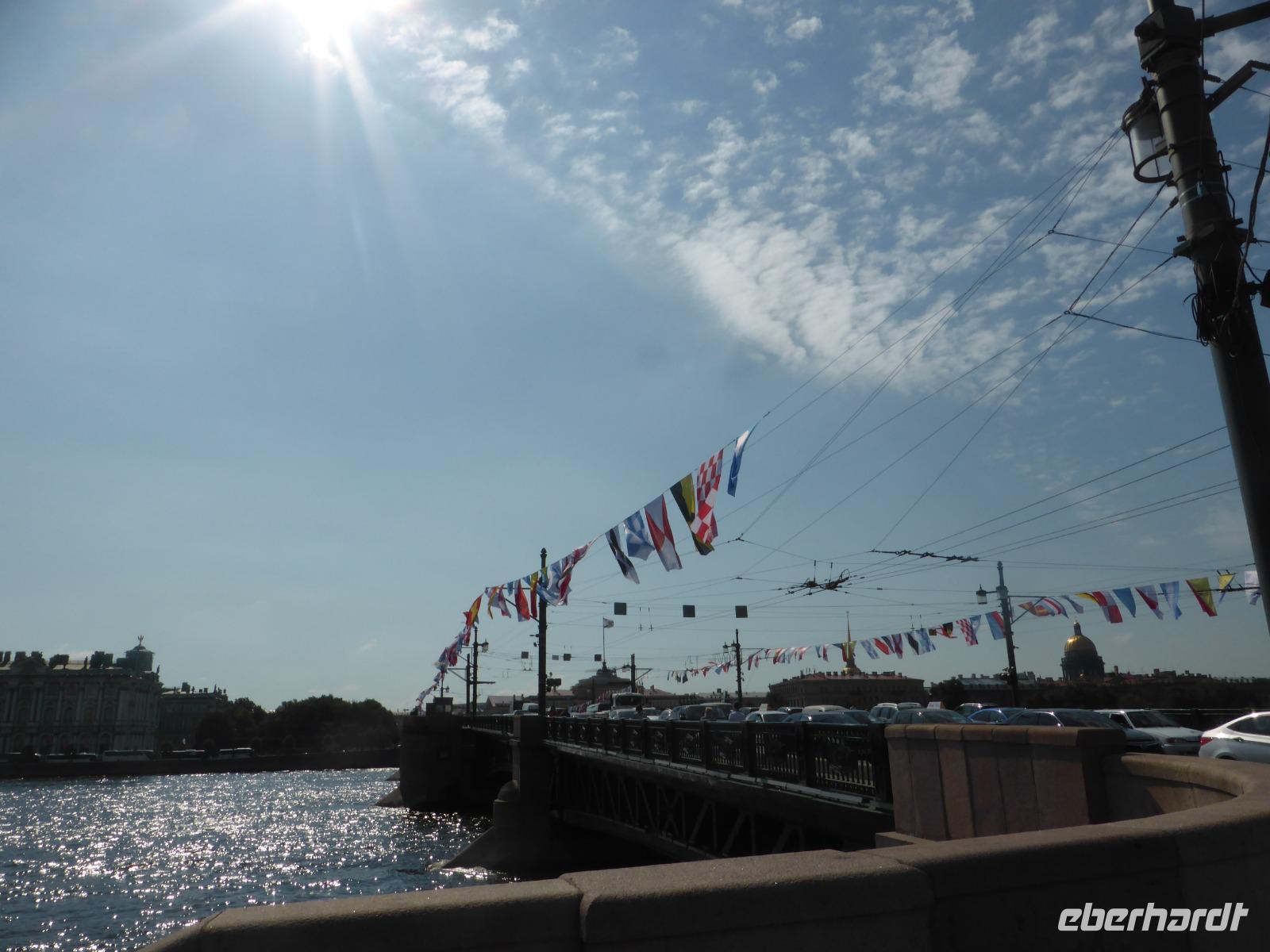 Die komfortable Abflugzeit am frühen Abend bescherte uns noch gut einen halben Tag Freizeit in St. Petersburg. Auf der Newa nimmt Putin gerade anläßlich des Feiertags der Marine die große Parade ab. Die Vorbereitung dieses Ereignisses hattte das Stadtbild in den Tagen zuvor schon geprägt. Einige Gäste begeben sich ins Getümmel und wollen live dabei sein, andere sehen es im Fernsehen.