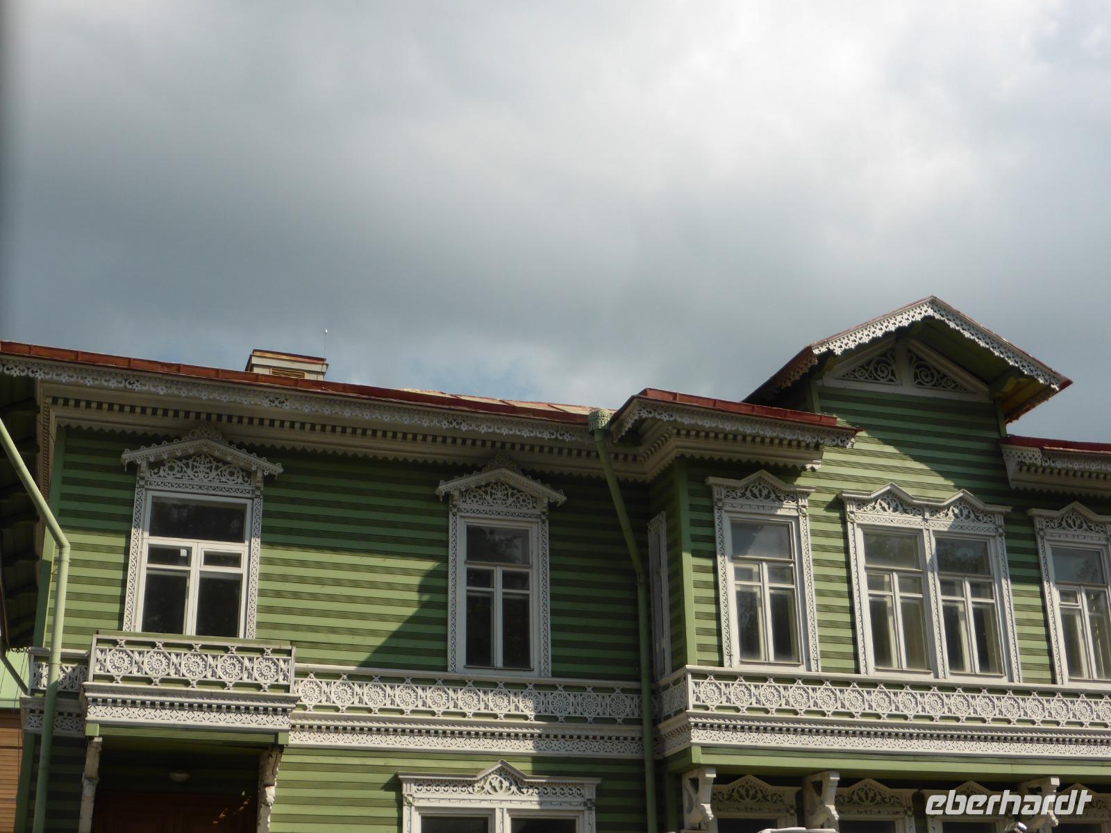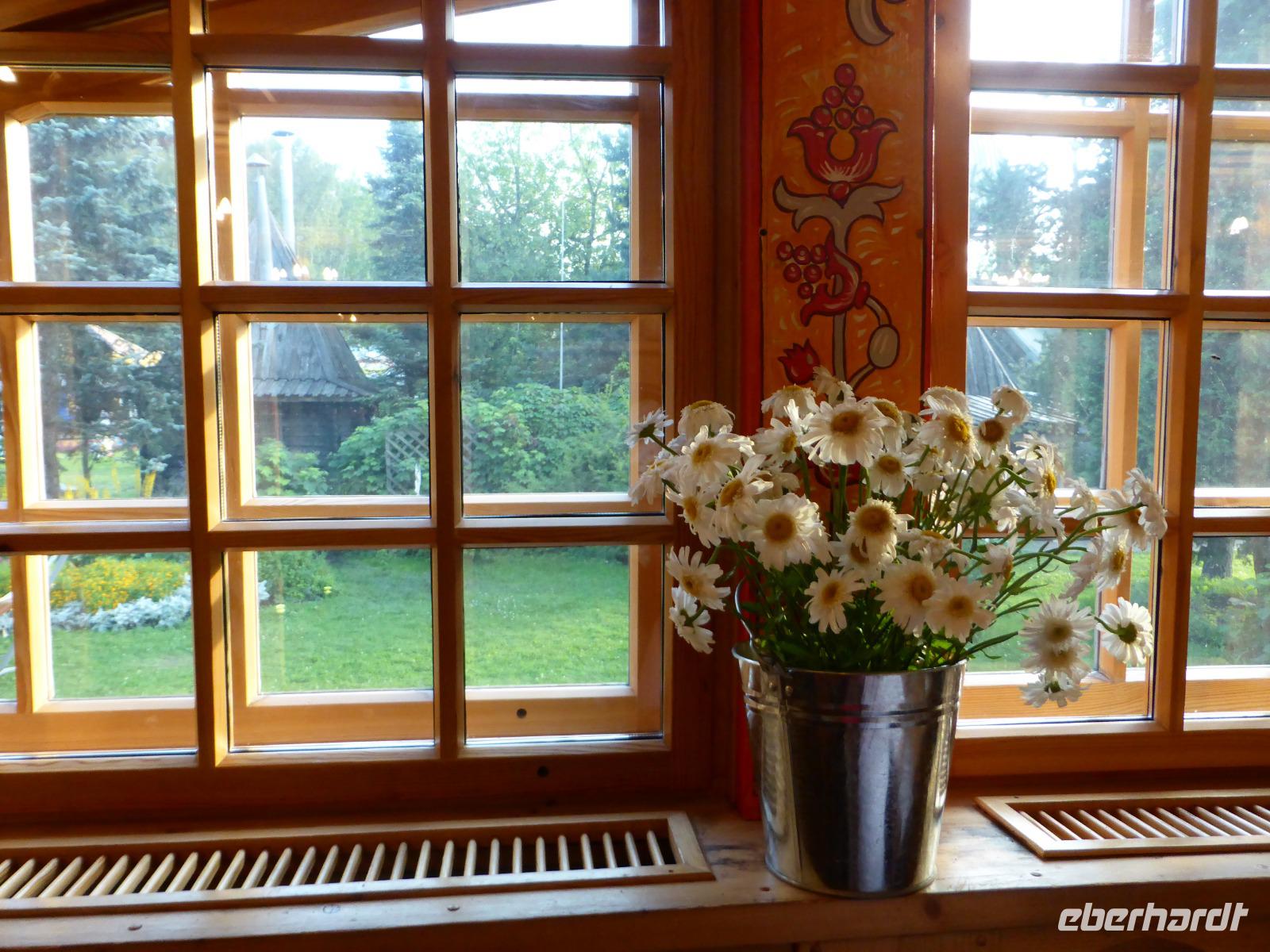 Abends gibt es Folklore und tpisch russiches Essen im Restaurant „Podvorje". Musik und gutes Essen ist auch heute eine vortreffliche Kombination. Wein und Wodka gehören selbstverständlich dazu. Ausgelassenheit breitet sich aus als einige Gäste sich an den Tretschotkas, den Ratschen, ausprobieren. Die Gruppe aus Polen am Nebentisch hat auch ihren Spaß und singt aus Leibeskräften polnische Lieder. Sängerwettstreite gab es in der Geschichte ja schon öfter ( man denke an die Wartburg bei Eisenach in Thüringen), und heute auch hier. Wir leißen uns nicht „lumpen", stellten uns der Herausforderung. „Sah ein Knab' ein Röslein...", „Hoch auf dem gelben Wagen ...", „Wir lagen vor Madagaskar..." und so weiter haben wir dargeboten und hatten einen Riesenspaß dabei. Die Polen haben nicht schlecht gestaunt, dass wir Deutschen das auch können. Gelebte Völkerfreunschaft erfüllte die Herzen.