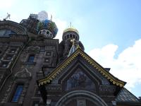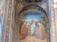 Auch die Erlöserkirche, die wir anschließend besuchen, haben wir schon von außen bewundert. Der mit 81 Metern höchste Turm ist derzeit eingerüstet und wird restauriert. Die anderen Kuppeln, die mit Emailleschmuck verziert sind, leuchten in der Sonne. Die Fenster werden von kostbarem Marmor aus Estland umrahmt. Mosaikporträts von Heiligen schmücken die Giebel. Errichtet wurde die Kirche an der Stelle, wo Zar Alexander II. ermordet wurde. Das Innere der Kirche wurde mit Jaspis, Rhodonit, Porphyr, Marmor und anderen kostbaren Steinen gestaltet. Beeindruckend sind die vielen Mosaiken. Die Stelle, an der Alexander II. ermordet wurde, ist schlicht gestaltet und im Original erhalten.