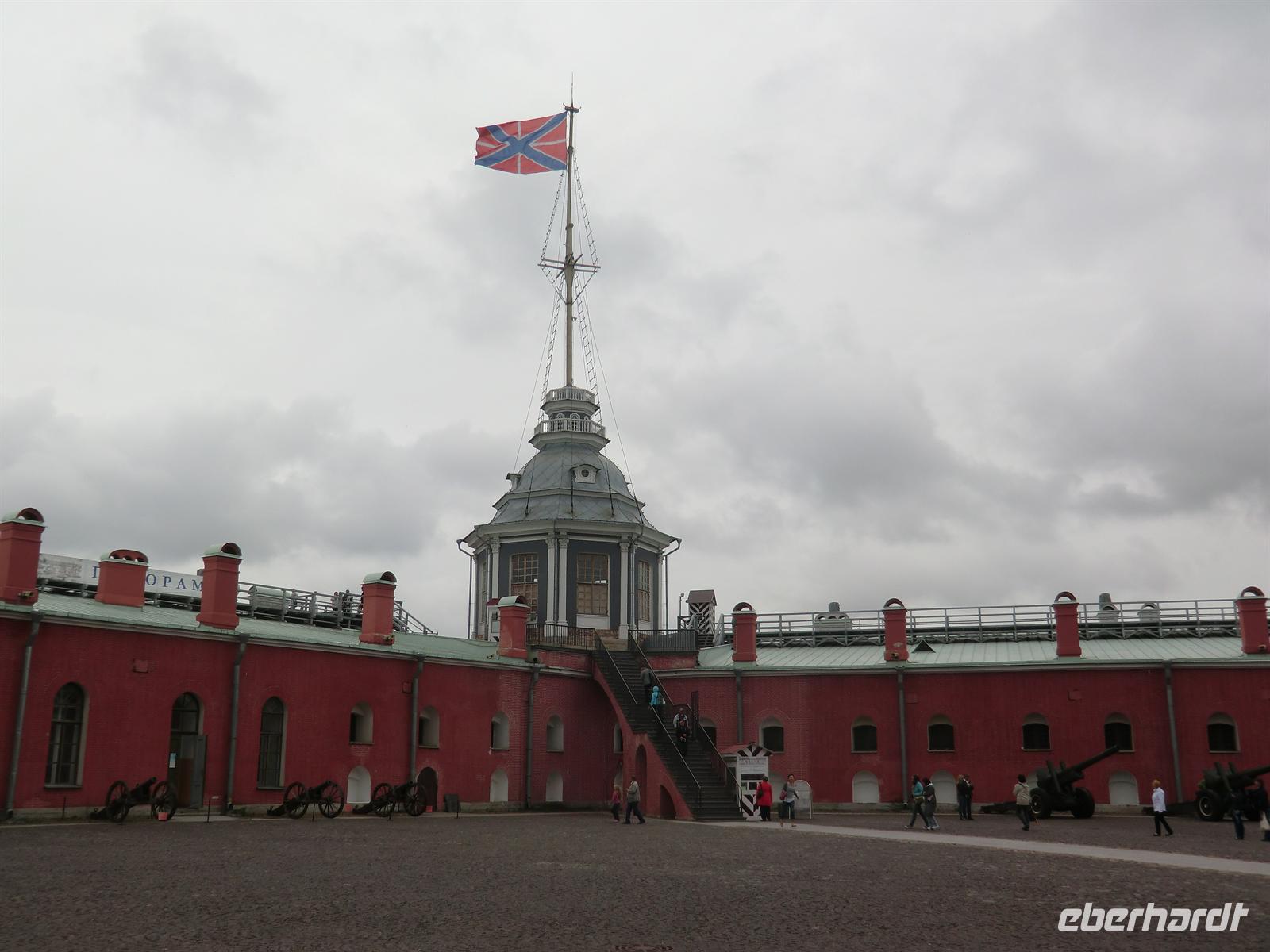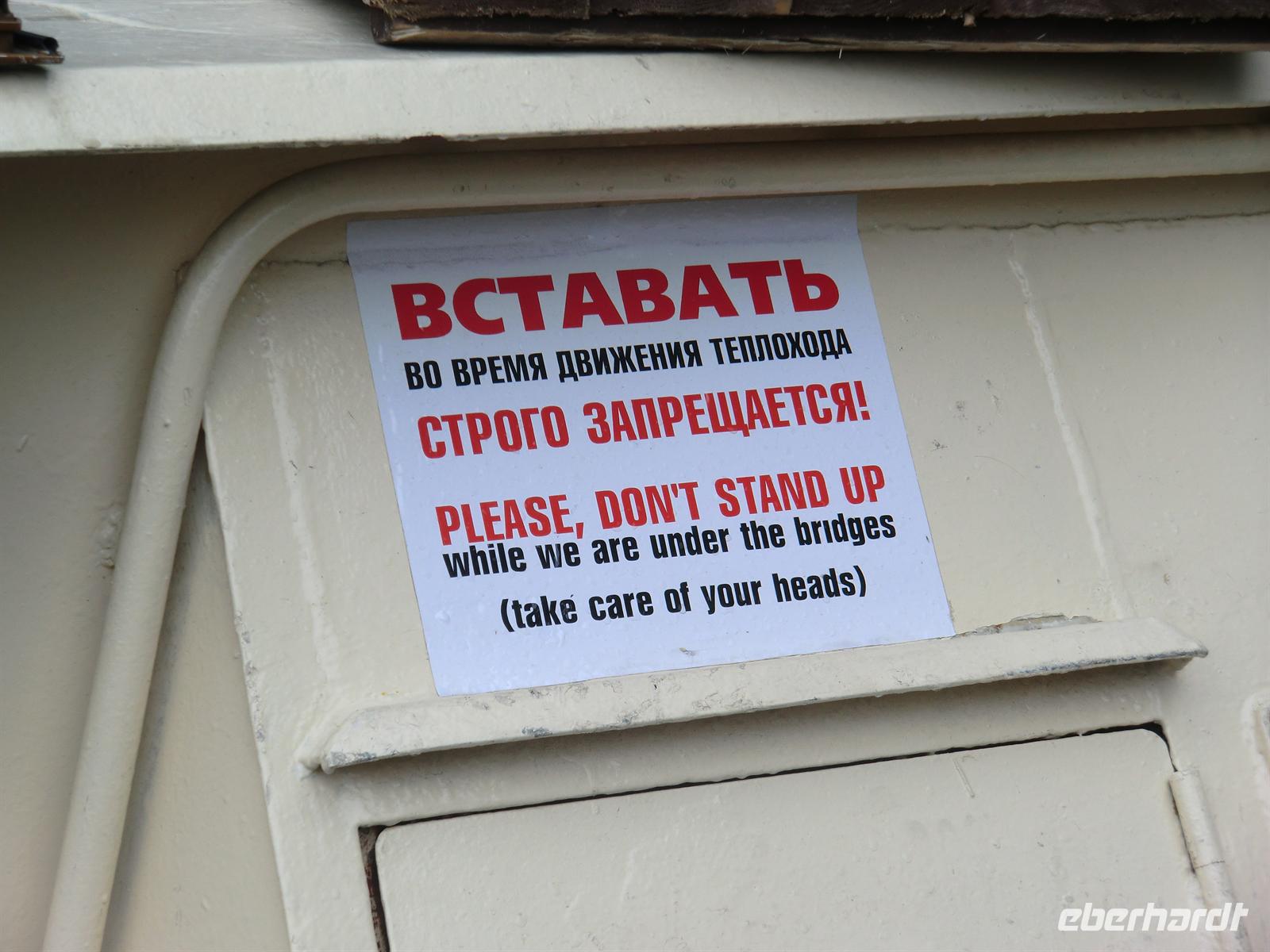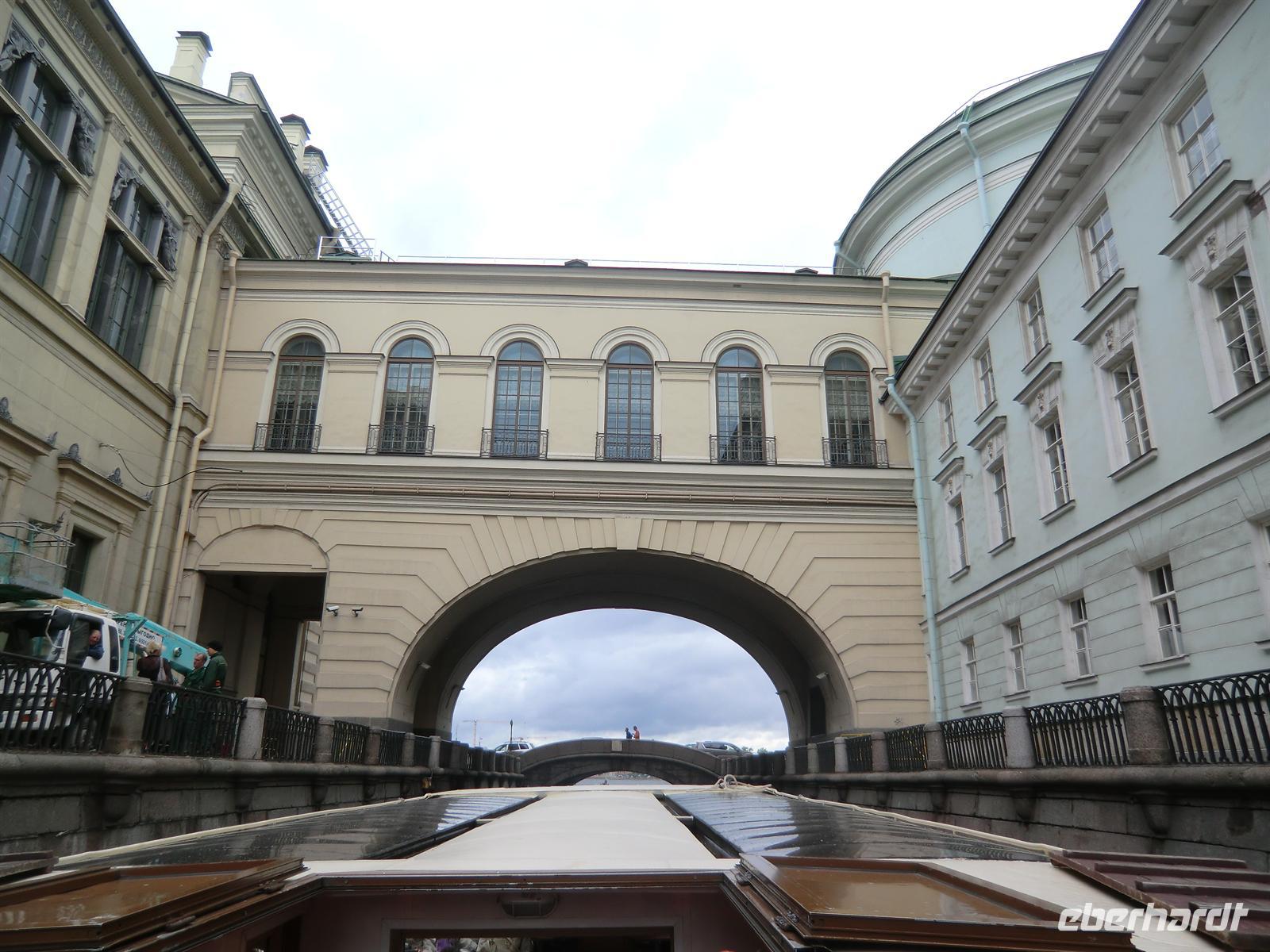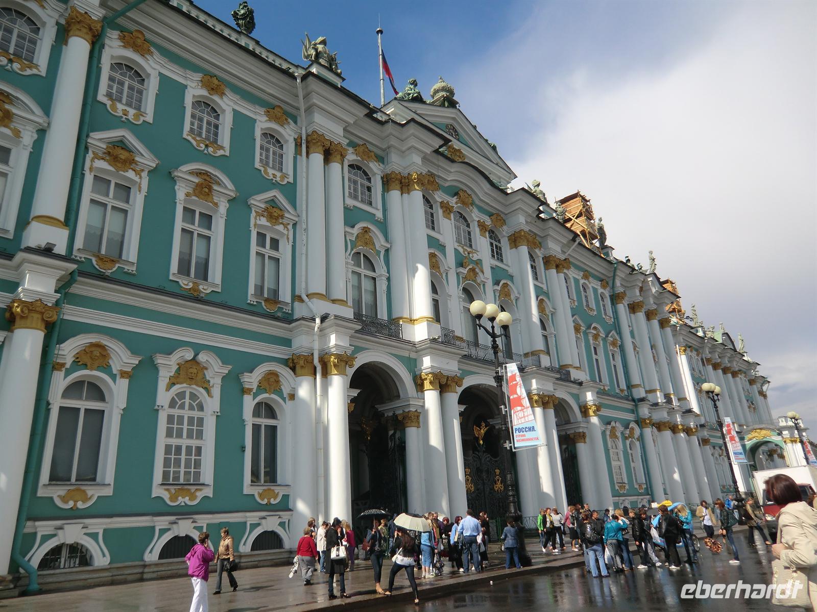 Auch heute hieß es ausschlafen und entspannt frühstücken ehe wir 10 Uhr von Igor und Sergej zu unserer heutigen Besichtigungstour abgeholt. Bereits nach einer halben Stunde Fahrt entlang des Platzes der Arbeit, des Wohnhauses von Otto von Bismarck und der Dreifaltigkeitsbrücke erreichten wir die Anlegestelle am Newa-Kai. Unser privates Boot erwartete uns bereits auf den Wogen des Flusses. Während einer einstündigen Bootspartie entlang der Kanäle von St. Petersburg bestaunten wir die Sehenswürdigkeiten der Stadt vom Wasser aus. Durch den hohen Pegelstand der Newa wurde die Fahrt zum Abenteuer, indem es beim Durchfahren der zahlreichen Brücken hieß: „Köpfe einziehen!“. Jene Gäste, die sich für das wohlig warme Sitzen unter Deck entschieden hatten, lebten in diesem Fall weniger gefährlich und konnten das Wohnhaus von Puschkin, das edle Hotel Kempinski und andere am Ufer stehende Gebäude durch die Panoramafenster beobachten.