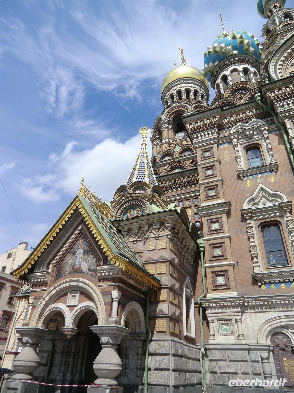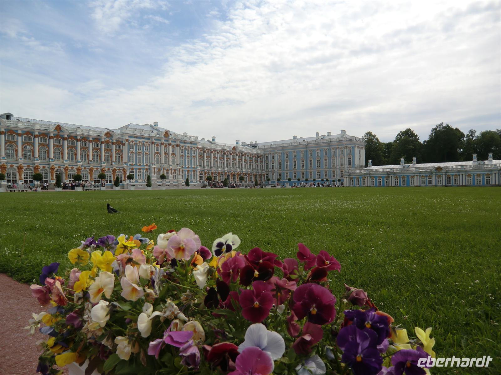 Am frühen Nachmittag folgte das nächste Event auf dem Fuße: die Blutskirche mit ihren wunderbar bunten Zwiebeltürmen. Im Inneren der Kirche bestaunten wir die imposanten Mosaikgemälde und herrlich bunt ausgekleideten Erker und Kuppeln. Direkt neben der Kirche konnten wir bereits einen Blick auf das Restaurant „St. Petersburg“ werfen, das uns am heutigen Abend empfangen werden wird. Im Anschluss verließen wir die Stadtgrenzen von St. Petersburg und fuhren nach Puschkin, um das berühmte Katharinenpalais zu besuchen. Obwohl Igor uns auf der einstündigen Fahrt einen kleinen Mittagsschlaf versprach, gönnte er uns lediglich 15 Minuten Ruhe zum Augen schließen und Luft holen ;-)