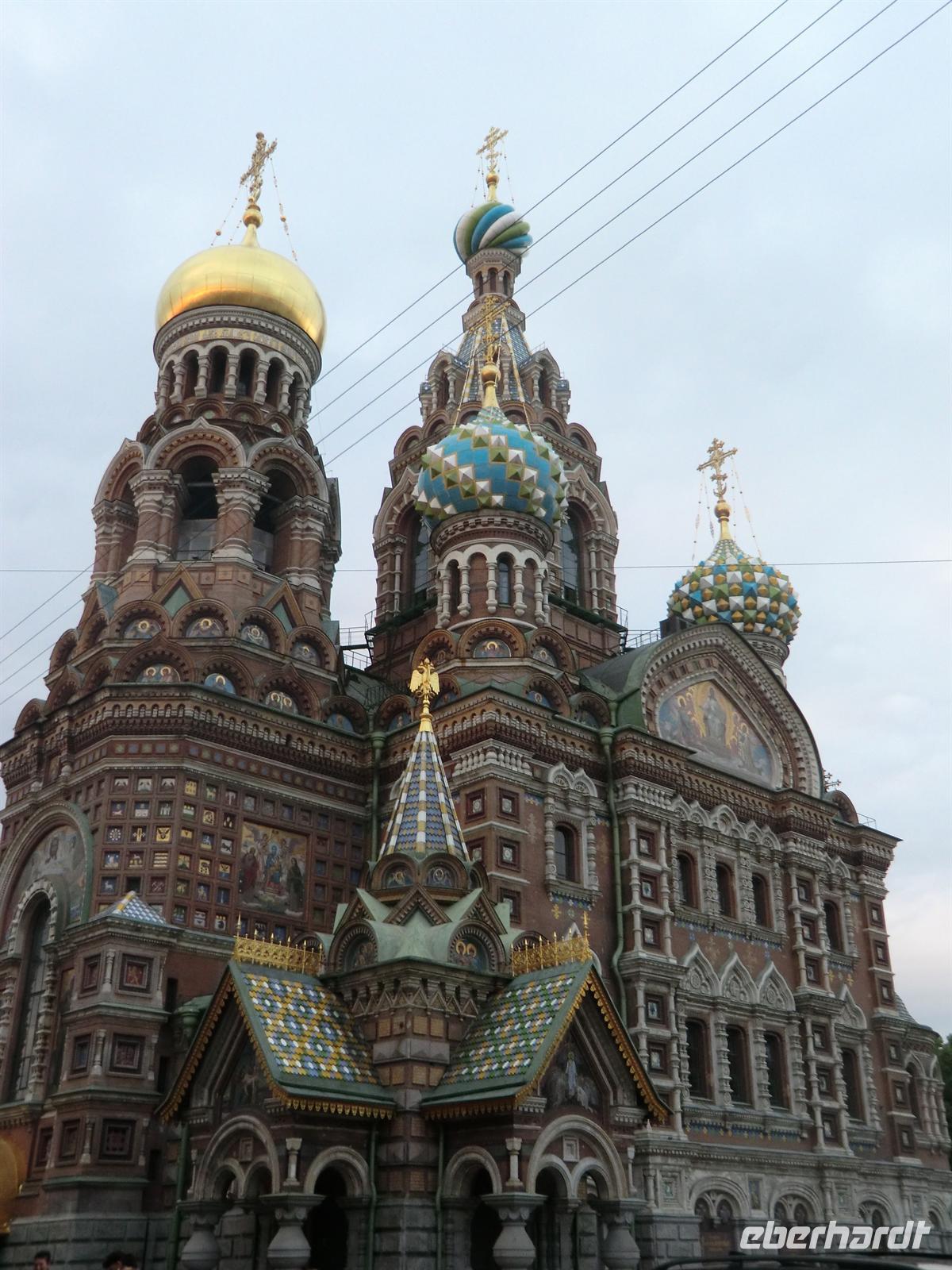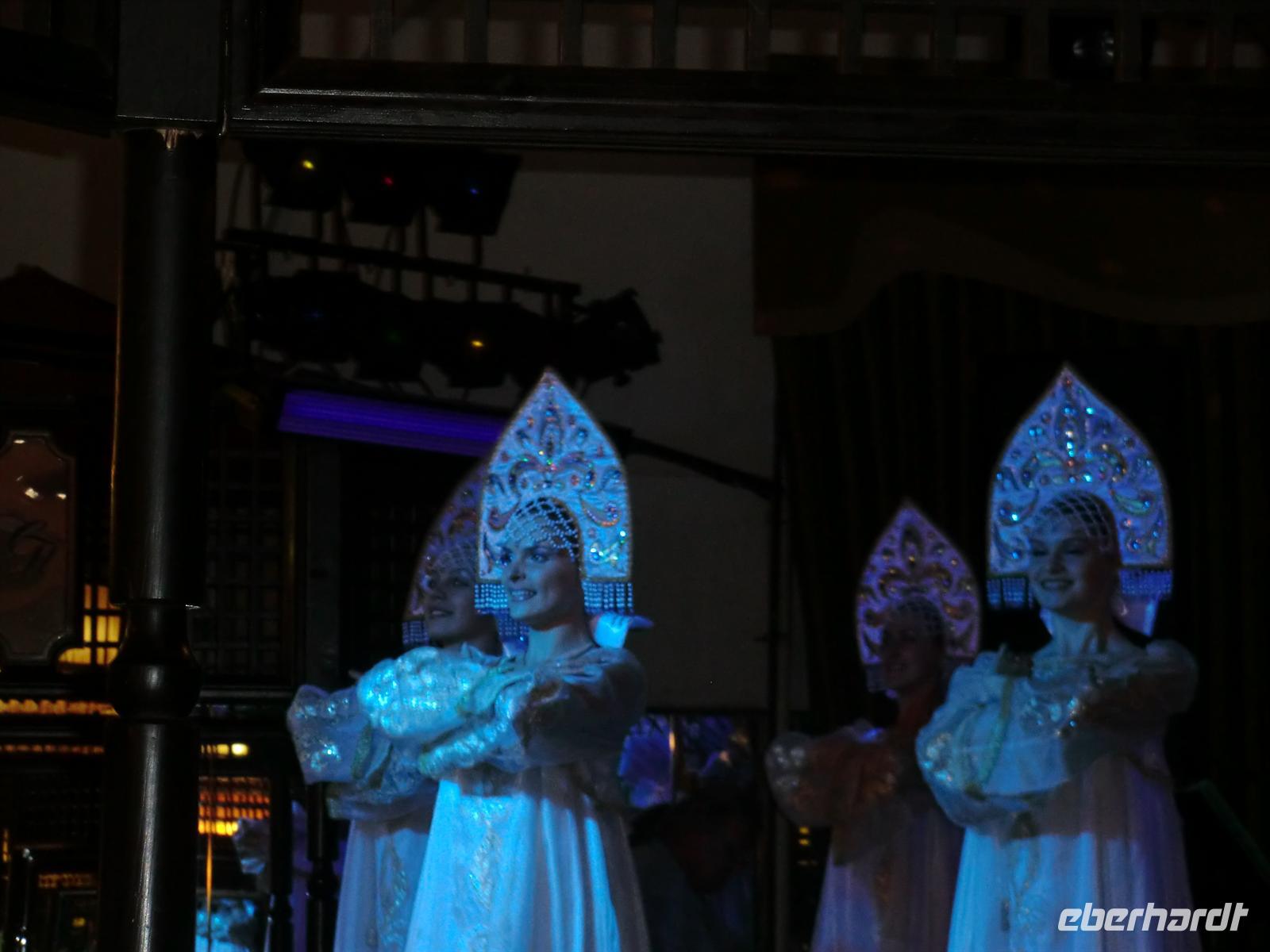 Bernsteinzimmer ist. Nach einem kleinen Spaziergang durch die idyllische Parkanlage fuhren wir 17:30 Uhr zurück nach St. Petersburg - der abendlichen Lokalität entgegen. Nach einer kleinen Pause am Platz der Künste erreichten wir 20 Uhr das Restaurant an der Blutskirche in einer kleinen Querstraße des Newski Prospekt. In einem äußerst schicken Ambiente genossen wir ein typisch russisches 4-Gänge-Menü, dessen Einstieg ein köstlich kühles Glas Wodka bildete. So konnten wir auf unsere schöne Reise und den abschließenden Abend anstoßen ehe wir den Moskauer Salat genossen, der von frischen Pfannkuchen mit rotem Kaviar gefolgt wurde. Bei Beginn der prächtigen Folkloreshow wurde uns der Hauptgang in Form eines köstlichen „Beef Stroganov“ serviert. Zum Abschluss versüßte uns eine Portion Eis den Abend ehe wir nach begleitendem Wein, Bier und weiteren Gläschen Wodka durch Sergej heil in unser Hotel gebracht wurden. Nun galt es, die letzte „Weiße Nacht“ zu genießen und von diesem herrlichen Tag zu träumen.