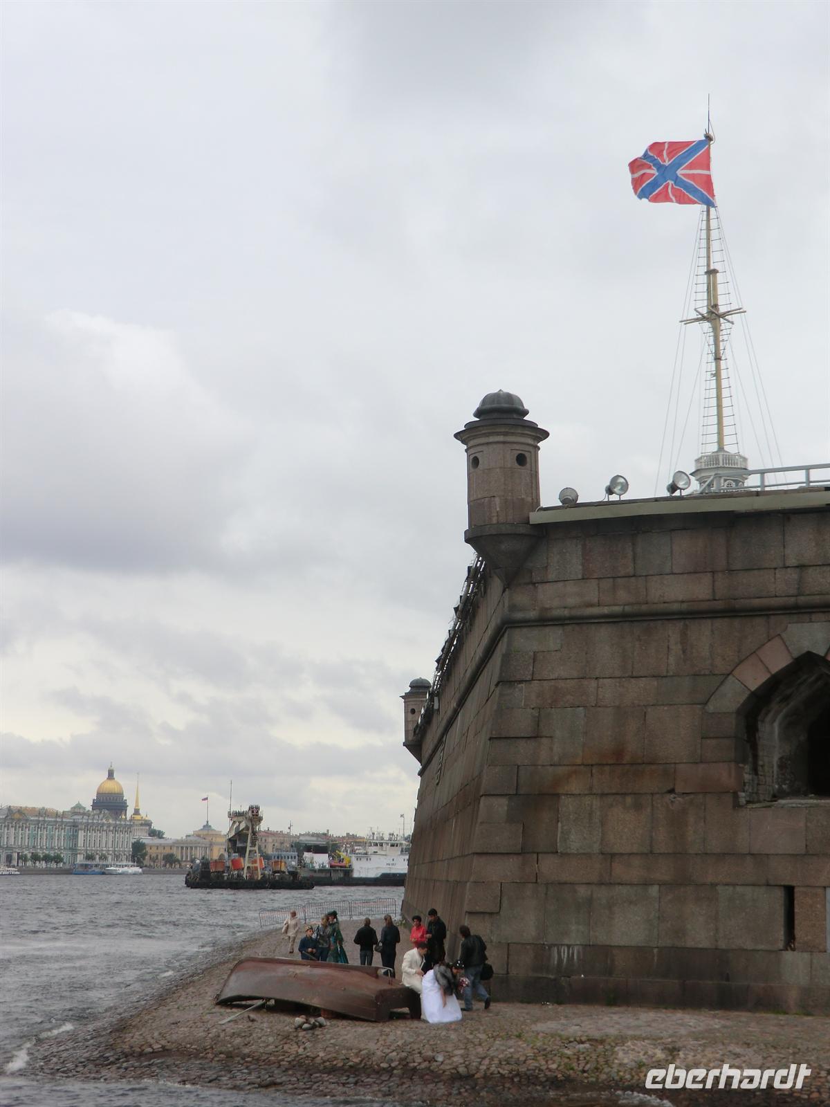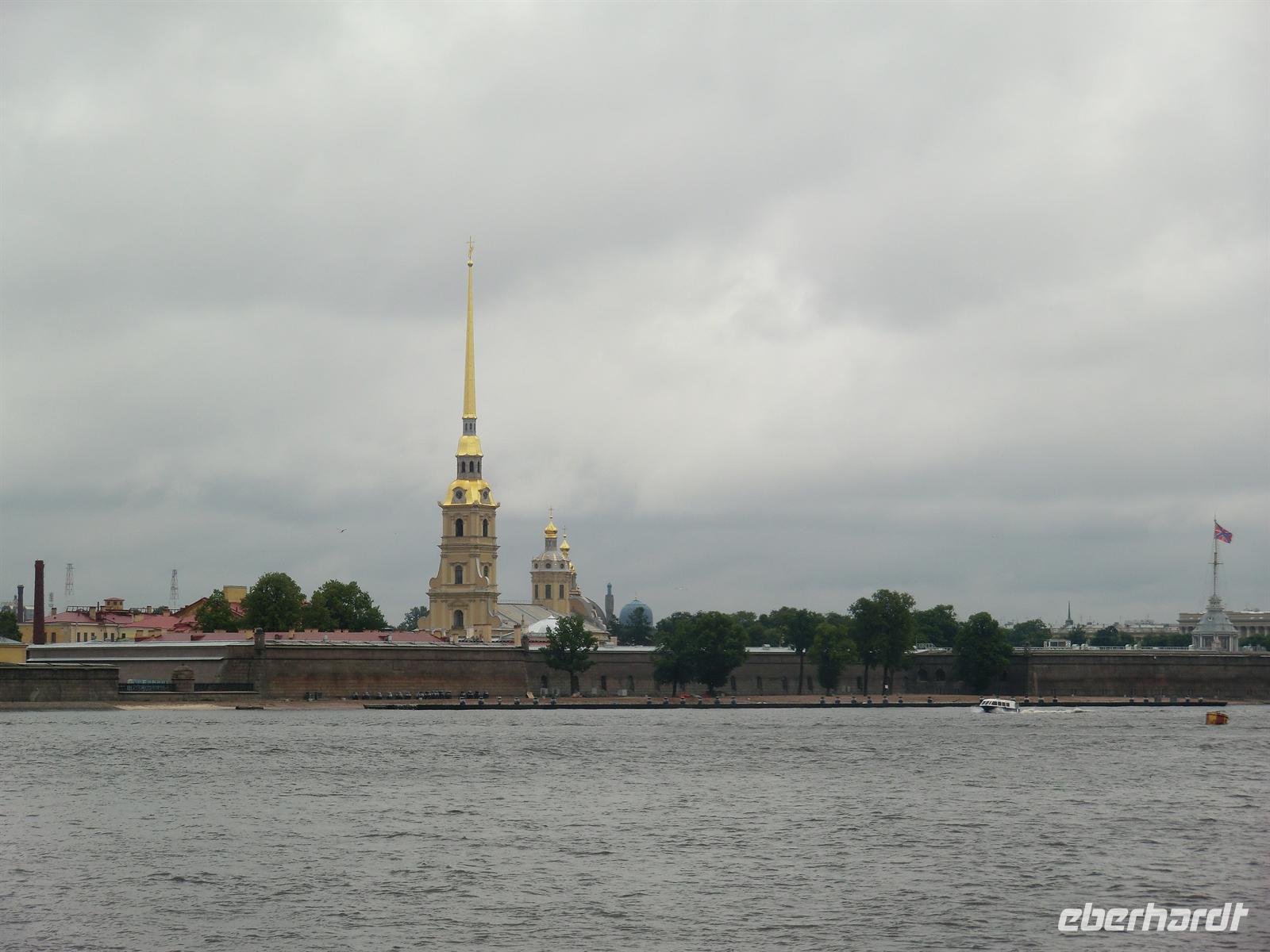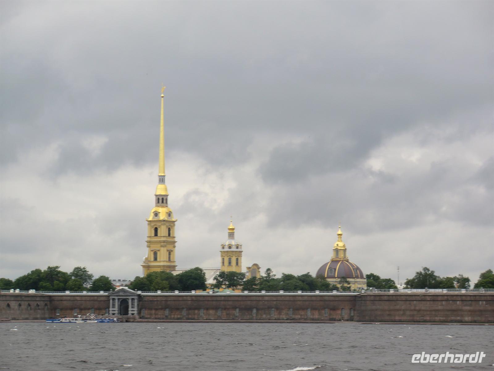 Paul-Festung. Anschließend passierten wir das Marinemuseum und das ehemalige Waffenarsenal der Stadt, ehe wir den berühmten Gegenstand eines jeden Geschichtsunterrichts aus DDR-Zeiten erreichten: den Kreuzer Aurora. Über die Freiheitsbrücke hinweg, entlang der Konzerthalle und des als „Kreuz“ bezeichneten Gefängnisses erreichten wir den Leninplatz mit dem finnischen Bahnhof. Von dieser Station ausgehend starten zahlreiche Zugverbindungen in Richtung Helsinki. Unter zahlreichen Russen sind Ausflüge nach Finnland äußerst beliebt, um sich mit Vorräten an Spülmittel, Schokolade und Olivenöl einzudecken. Einen nächsten Halt machten wir an einem ehemaligen Kloster, wo heute in erster Linie Konzerte gespielt werden und das St. Petersburger Goethe-Institut seinen Sitz hat. Unser nächster Stopp stand im Zeichen der „Keramik“ - verbunden mit dem Bummeln in einem wunderbaren Souvenirladen, dessen Angebot von Probierproben an Kaffee, Tee und Wodka abgerundet wurde. Im Anschluss folgte der nächste Besichtigungshöhepunkt - der Bauernmarkt. Bei einem kleinen Spaziergang boten köstlicher Kavier, eingelegtes Gemüse und Honig einen Augenschmaus. Mit dem Bus überquerten wir während unserer Weiterfahrt den Aufstandsplatz mit dem Moskauer Bahnhof. Hier fahren zahlreiche Schnellzüge in nur 3 Stunden und 45 Minuten in die russische Hauptstadt. Über den berühmten Newski Prospekt mit seinen zahllosen Boutiquen, Kneipen, Restaurants und dem größten Kaufhaus der Stadt erreichten wir am frühen Nachmittag die Peter- und Paul-Festung. Die eindrucksvolle Führung in der Kathedrale wurde mit dem Gesang des lokalen Männerchors abgerundet. Nach diesem Moment des entspannenden Musikgenusses machten wir uns auf den Rückweg zu unserem Hotel. Nach einer kleinen Ruhezeit am späten Nachmittag trafen wir uns 19 Uhr an der Rezeption, um heute im Grillrestaurant des Hotels ein leckeres 3-Gänge-Menü zu uns zu nehmen. Nach diesem Schmaus machten sich einige Gäste auf den Weg in die Innenstadt, um am Newski Prospekt die „Weiße Nacht“ zu genießen.