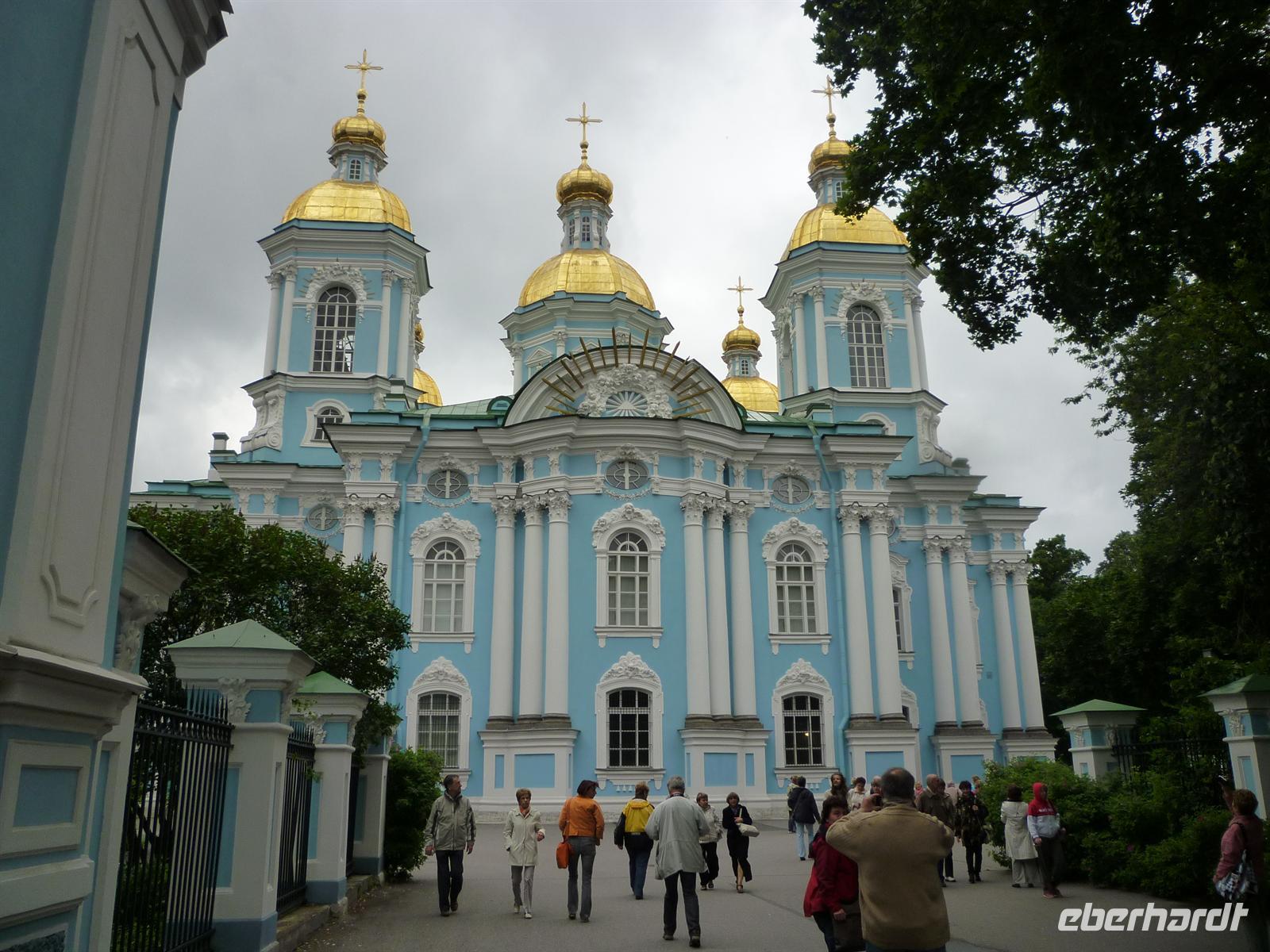 Nach dem Frühstück erwartete uns Natalia und wir fuhren in die Stadt. Unsere Stadtrundfahrt führte uns zur Nikolaus-Marine-Kathedrale (Bild) und zum weltberühmten Panzerkreuzer „Auroa“. Der längst eine Legende geworden ist. Mächtige Bauten und breite Straße und Plätze beeindruckten uns sehr. Das Smolny-Institut, welches ursprünglich als Kloster konzipiert ist, jedoch nie als solches benutzt wurde, konnten wir bestaunen. Es diente im 19. Jahrhundert als Bildungsanstalt für adelige Mädchen, die auf das Leben in der höheren Gesellschaft als Hofdame vorbereitet wurden. Vorbei an der Issak Kathedrale und der Admiralität sowie dem Newski- Prospekt ging es mit voller Erwartung zur Peter-und-Paul-Kathedrale. Sie ist die älteste Kathedrale der Stadt und bildet das Herzstück der Peter-und-Paul-Festung auf der Haseninsel. Typisch an der im holländischen frühbarockem Stil erbauten Kathedrale ist ihre lange goldene Turmspitze, eines der Wahrzeichen von St. Petersburg. Am Nachmittag hatten wir die Möglichkeit, Sankt Petersburg individuell zu erkunden. Mit vielen Eindrücken und vielen Fotomotiven trafen wir zum Abendessen im Grillrestaurant im Hotel ein. Bei gemütlicher Runde ließen wir uns die leckeren Speisen schmecken.