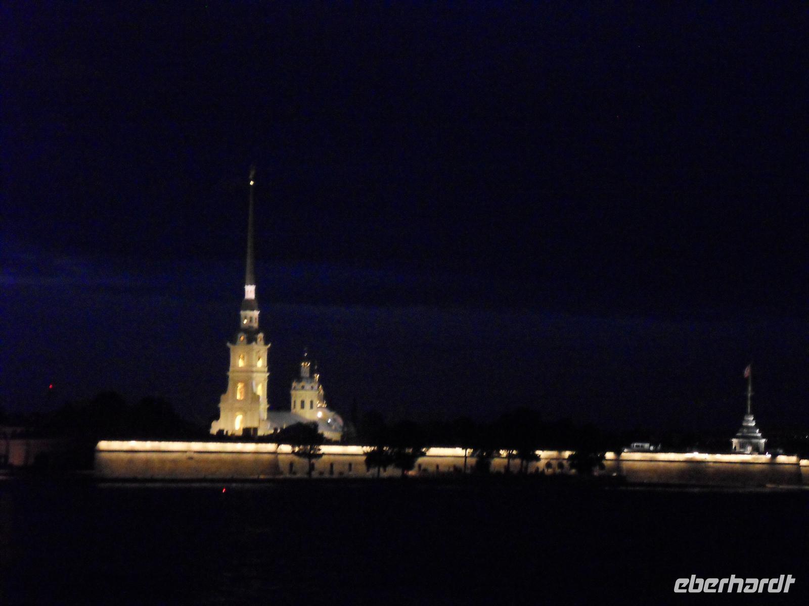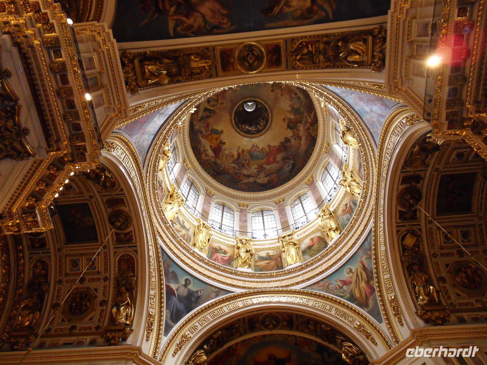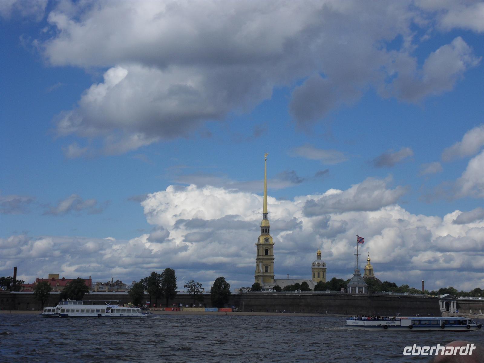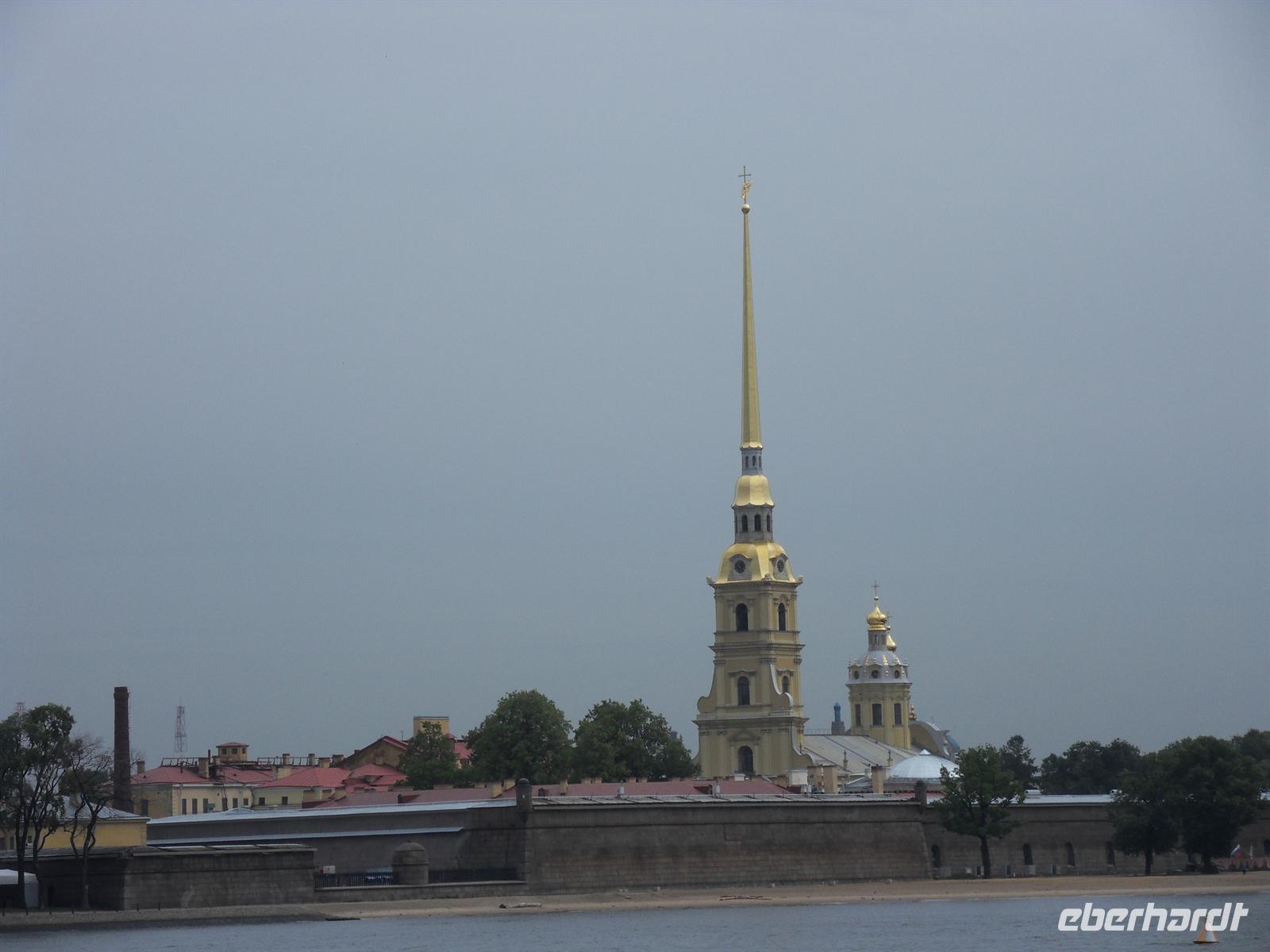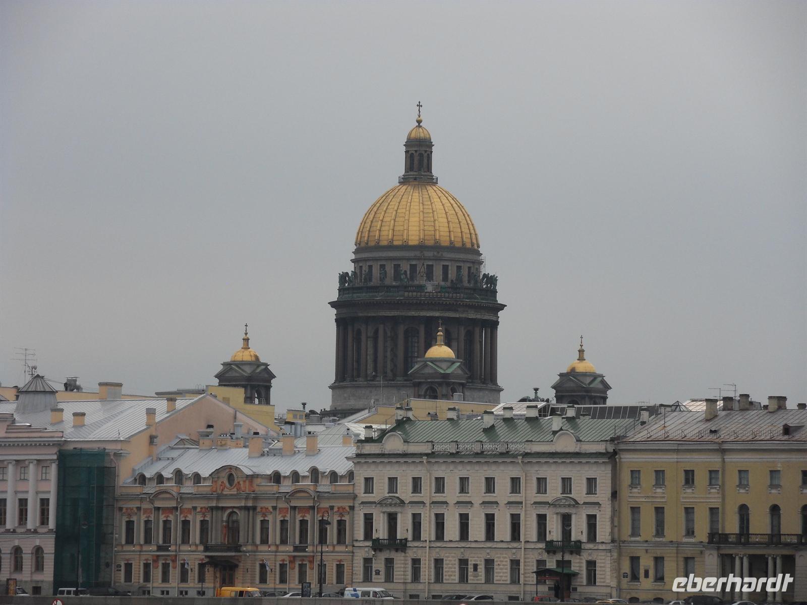 Nach einem stärkenden Frühstück ging es um 10 Uhr los mit unserer Stadtrundfahrt. Dabei sehen wir auch die große Newa, die hier zwischen 300 und 800 Metern breit sein kann. An der Spitze der Wassilij-Insel hatten wir einen tollen Ausblick auf das erste bebaute Gebiet des heutigen St. Petersburg, auf die Peter- und Paulsfestung, die wir dann auch betraten. Die beeindruckende Kathedrale ist nicht nur reich verziert, sondern diente auch über 200 Jahre lang als Begräbnisstätte für die russischen Zaren, so dass uns Natalia allerhand zur Geschichte und den verschiedenen Zaren und Zarinnen erläutert. Hier wie auch in jeder anderen orthodoxen Kirche gibt es keine Kirchenbänke wie bei uns, weil man sich zum Beten auf den Boden kniet. Für die Zarenfamilie gab es eine mit Samt ausgekleidete solche Betstelle. Auch für die letzten Romanows gibt es hier eine Gedenkstätte. Weiter geht unsere Stadtrundfahrt zum ältesten Haus der Stadt und zum Panzerkreuzer Aurora, dessen Schuss als Beginn der Oktoberrevolution gesehen wird. Nach einer Kaffee-Pause in einem schönen Souvenirgeschäft ging es weiter zum Newskij-Prospekt, wo wir ein wenig Freizeit zum Bummeln und Pelmeni-Essen haben. Am Nachmittag fahren wir gemeinsam zur Isaak-Kathedrale, deren Kuppel durch 100 Kilogramm Gold schon von weitem her sichtbar ist. Diese Kathedrale wurde auf 30.000 Pfählen errichtet und ist innen mit Marmor, Edelsteinen und beeindruckenden Mosaiken ausgestattet, aber dabei auch die drittgrößte Kuppelkathedrale nach dem Petersdom in Rom und der St.Pauls-Kathedrale in London. Nach dieser Besichtigung machen sich einige Gäste auf den Weg in die Innenstadt oder besteigen die Isaak-Kathedrale, während der Großteil der Gruppe mit dem Bus ins Hotel gebracht wird, wo wir am Abend gemeinsam im Grillrestaurant zu Abend essen.