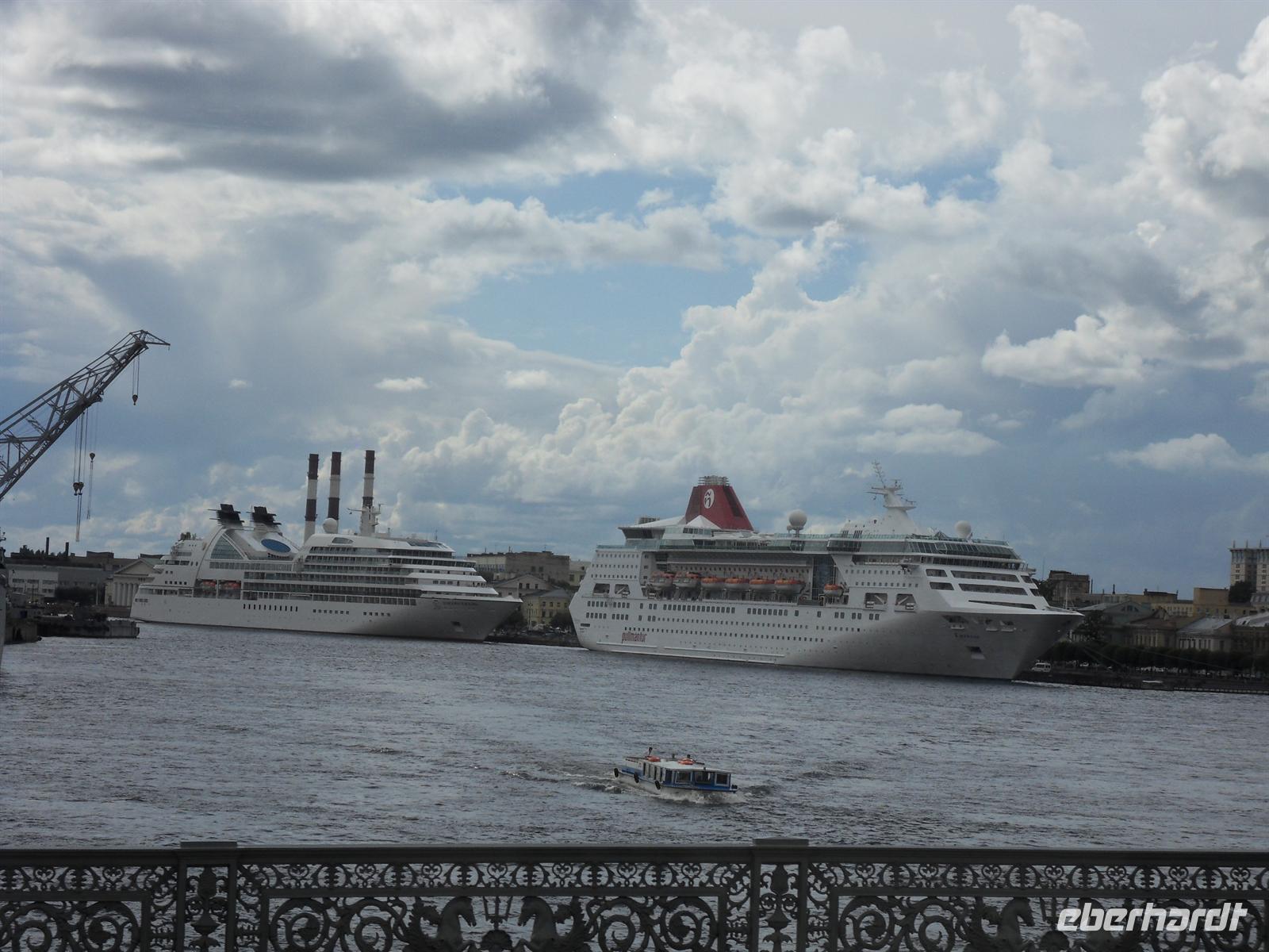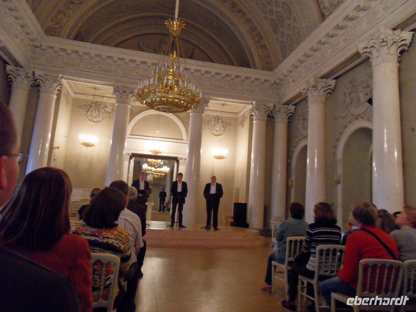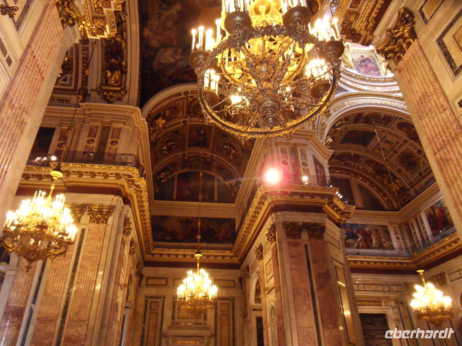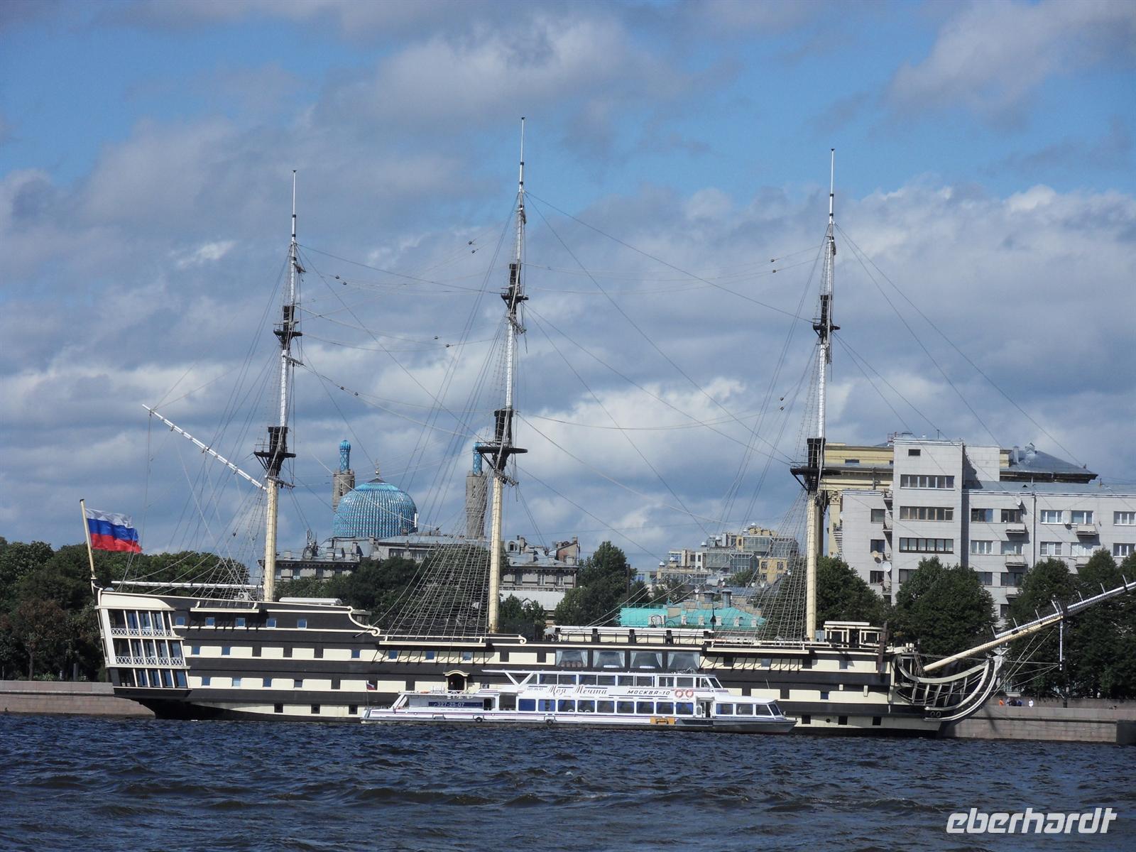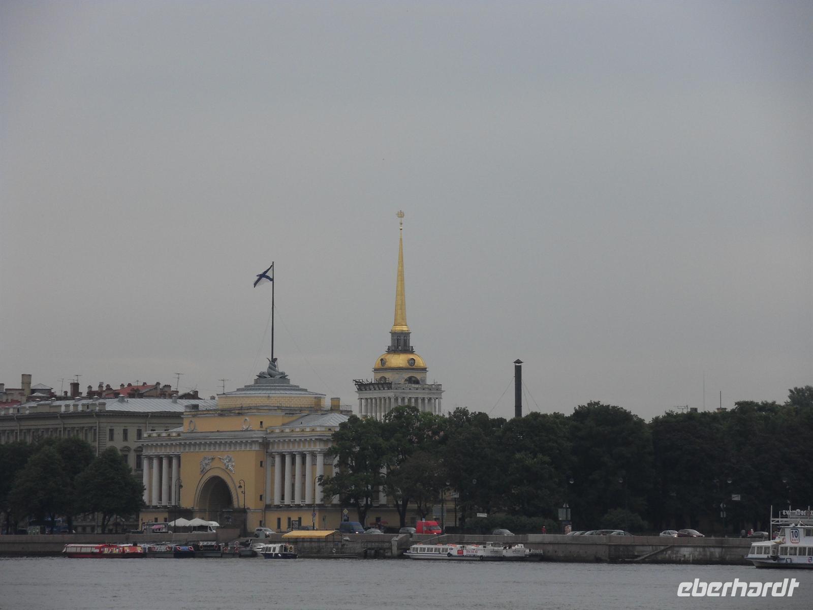 Nach einem stärkenden Frühstück ging es um 10 Uhr los mit unserer Stadtrundfahrt. Dabei sehen wir auch die große Newa, die hier zwischen 300 und 800 Metern breit sein kann. An der Spitze der Wassilij-Insel hatten wir einen tollen Ausblick auf das erste bebaute Gebiet des heutigen St. Petersburg, auf die Peter- und Paulsfestung, die wir dann auch betraten. Die beeindruckende Kathedrale ist nicht nur reich verziert, sondern diente auch über 200 Jahre lang als Begräbnisstätte für die russischen Zaren, so dass uns Natalia allerhand zur Geschichte und den verschiedenen Zaren und Zarinnen erläutert. Hier wie auch in jeder anderen orthodoxen Kirche gibt es keine Kirchenbänke wie bei uns, weil man sich zum Beten auf den Boden kniet. Für die Zarenfamilie gab es eine mit Samt ausgekleidete solche Betstelle. Auch für die letzten Romanows gibt es hier eine Gedenkstätte. Weiter geht unsere Stadtrundfahrt zum ältesten Haus der Stadt und zum Panzerkreuzer Aurora, dessen Schuss als Beginn der Oktoberrevolution gesehen wird. Nach einer Kaffee-Pause in einem schönen Souvenirgeschäft ging es weiter zum Newskij-Prospekt, wo wir ein wenig Freizeit zum Bummeln und Pelmeni-Essen haben. Am Nachmittag fahren wir gemeinsam zur Isaak-Kathedrale, deren Kuppel durch 100 Kilogramm Gold schon von weitem her sichtbar ist. Diese Kathedrale wurde auf 30.000 Pfählen errichtet und ist innen mit Marmor, Edelsteinen und beeindruckenden Mosaiken ausgestattet, aber dabei auch die drittgrößte Kuppelkathedrale nach dem Petersdom in Rom und der St.Pauls-Kathedrale in London. Nach dieser Besichtigung machen sich einige Gäste auf den Weg in die Innenstadt oder besteigen die Isaak-Kathedrale, während der Großteil der Gruppe mit dem Bus ins Hotel gebracht wird, wo wir am Abend gemeinsam im Grillrestaurant zu Abend essen.