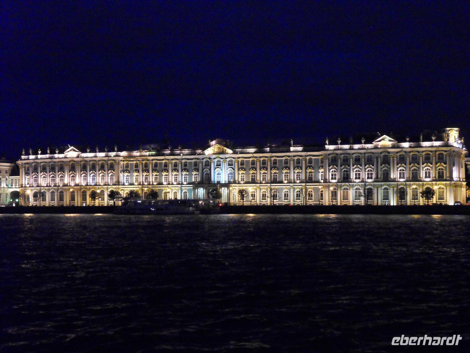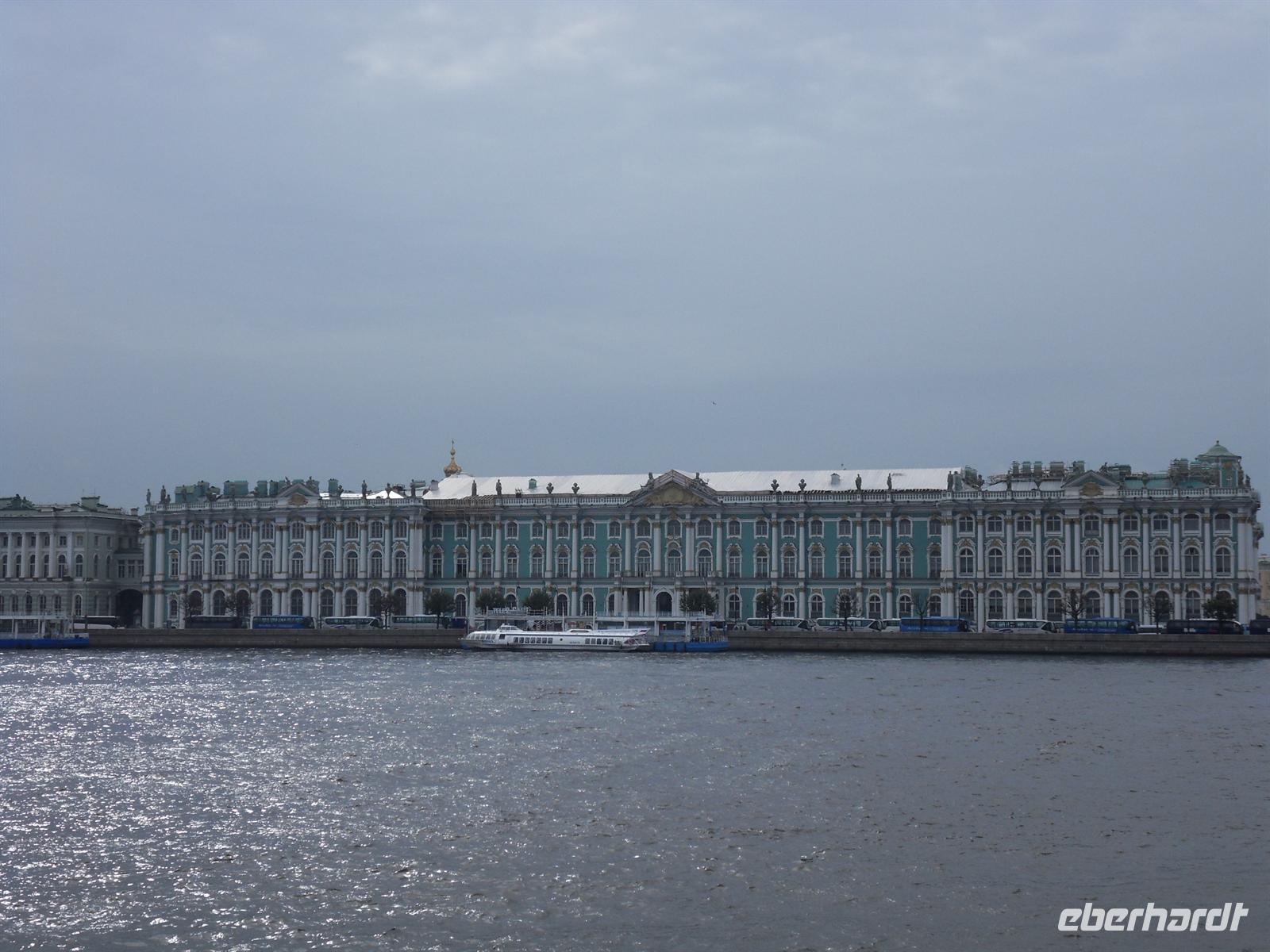 Heute besuchten wir die Eremitage. Das Winterpalais ist schon von außen beeindruckend, aber die Fülle an Ausstellungsstücken, ob Gemälde zahlreicher Epochen, prachtvoll gestaltete Räume wie der St. Georg-Saal mit dem Thronstuhl, endlose Gänge, Skulpturen, Silber- und Goldgegenstände oder die Schlitten der Zarenfamilie und deren Wohnräume, verschlägt einem den Atem. Der schöne Pavillonsaal zeigt wunderschöne Mosaike und die Pfauenuhr und natürlich gibt es zahlreiche Kunstsammlungen, so dass wir sogar je ein Canalettobild von Dresden und Pirna entdecken können. Sehr beeindruckend war aber die Ägyptische Sammlung, Werke von Rubens und Rembrandt sowie die französischen Künstler des 19. und 20. Jahrhunderts, darunter Monet, Gauguin, Renoir und Matisse. Noch voll mit gewaltigen Eindrücken aus der Eremitage ging es am Nachmittag dann zur Ablegestelle für unsere Fahrt durch die Kanäle der Stadt. Dazu hatten wir bestes Wetter: Sonnenschein und blauen Himmel. So ging es für uns über die Moika vorbei an hübschen Jugendstilfassaden, hindurch unter reich verzierten Brücken, bei denen wir den Kopf einziehen wollten, bis auf die große Newa mit einem tollen Blick auf die Peter- und Paulsfestung. Wir entdecken unterwegs auch den Sonnergarten und biegen auf den Fluss Fontanka. Derweil erklärt uns Natalia die Paläste und benennt die Brücken, die wir passieren. Leider war diese schöne Rundfahrt viel zu schnell vorbei. Wer wollte, konnte die Stadt noch weiterhin auf eigene Faust erkunden. Zurück im Hotel gab es dann gemeinsames Abendessen.