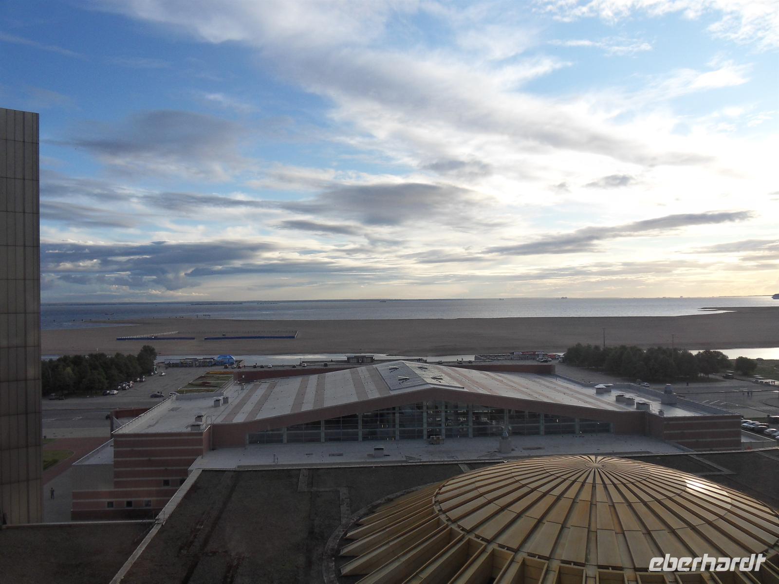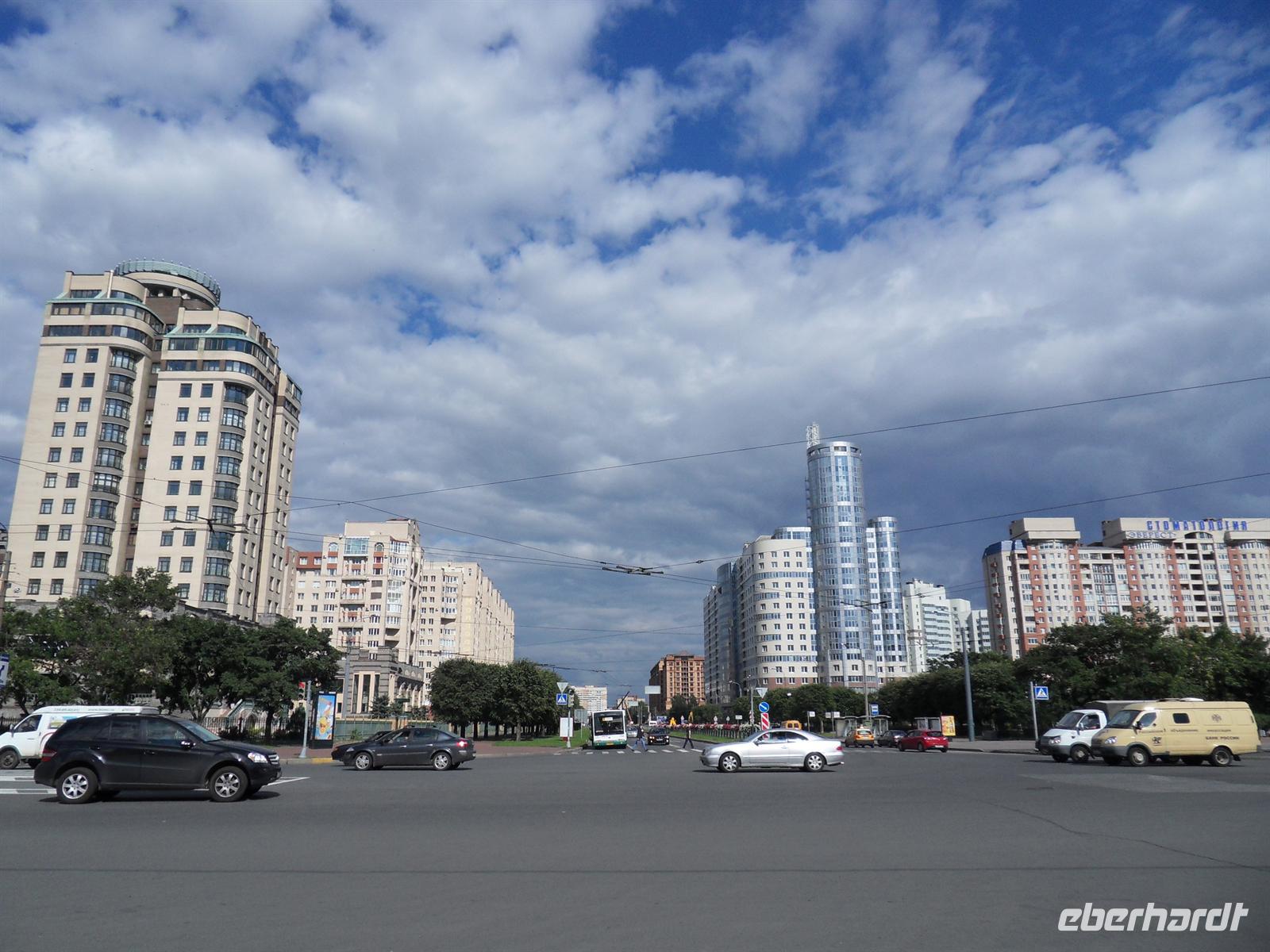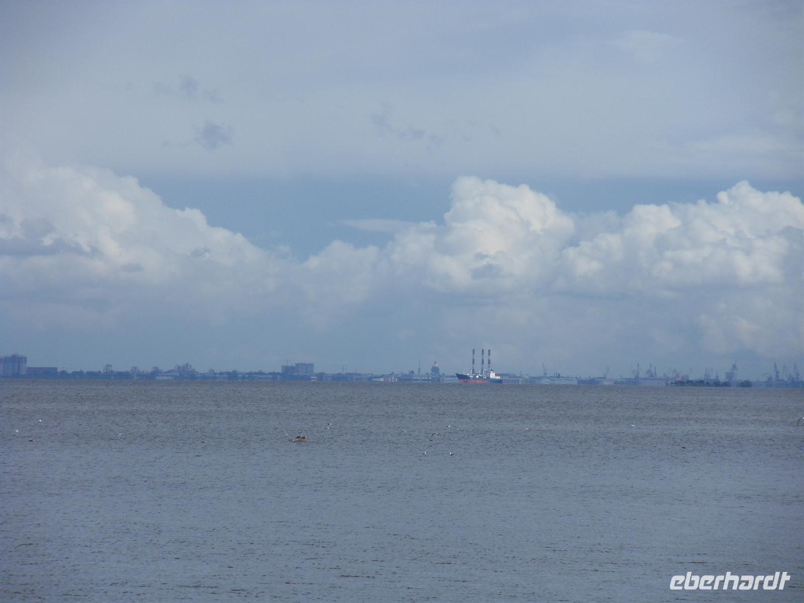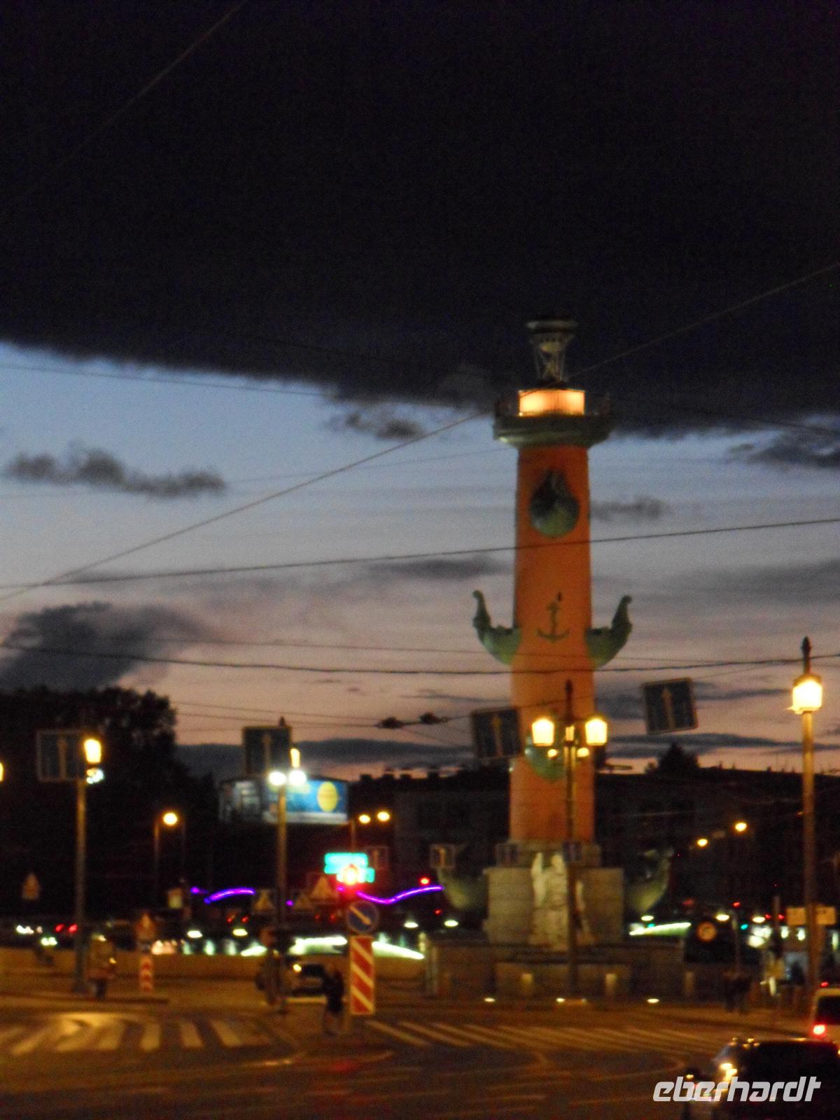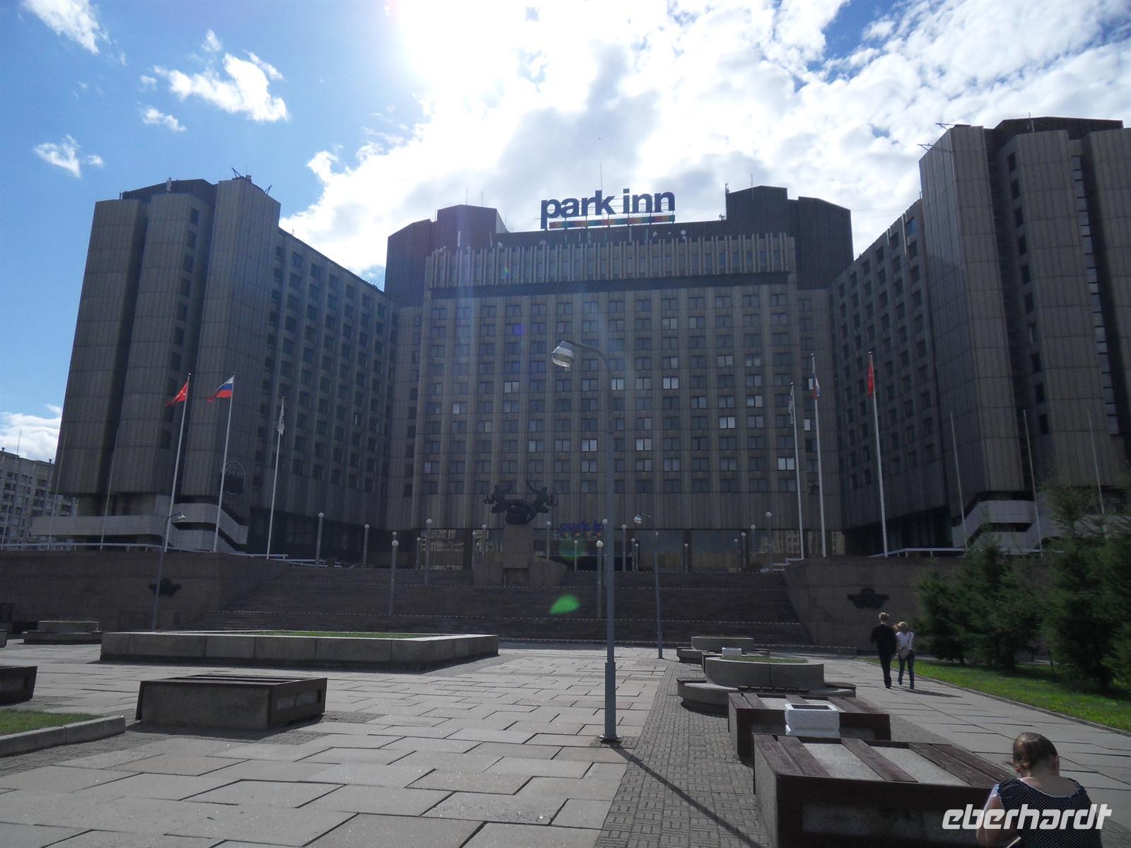 Auf die Minute genau trafen wir uns am Flughafen Berlin-Tegel. Nach gemeinsamem Check-In und einem kleinen Snack ging es auch schon los in Richtung Osten. Der Flug war ging schnell vorüber, so dass wir nach dem Ausfüllen der Einreisekarten auch gleich von unserer örtlichen Reiseleitung Natalia und unserem Fahrer Igor in Empfang genommen werden konnten. Gemeinsam fuhren wir in die verregnete Innenstadt, die sich uns mit auffällig vielen Denkmälern und breiten Prachtstraßen präsentierte. Dabei gab uns Natalia erste Informationen über ihr Heimatland & zeigte uns auf dem Weg zum Hotel die ersten Sehenswürdigkeiten. Schon an den Straßenschildern und Reklametafeln konnten wir uns wieder mit der kyrillischen Schrift vertraut machen. Nach dem Check-In im Hotel „Pribaltyiskaya“ direkt am Finnischen Meerbusen und dem gemeinsamen Abendessen hatten wir noch einige Stunden, bis es richtig dunkel wurde. So nutzten viele von uns die Gelegenheit, uns die Gegend am Hotel etwas näher anzuschauen.