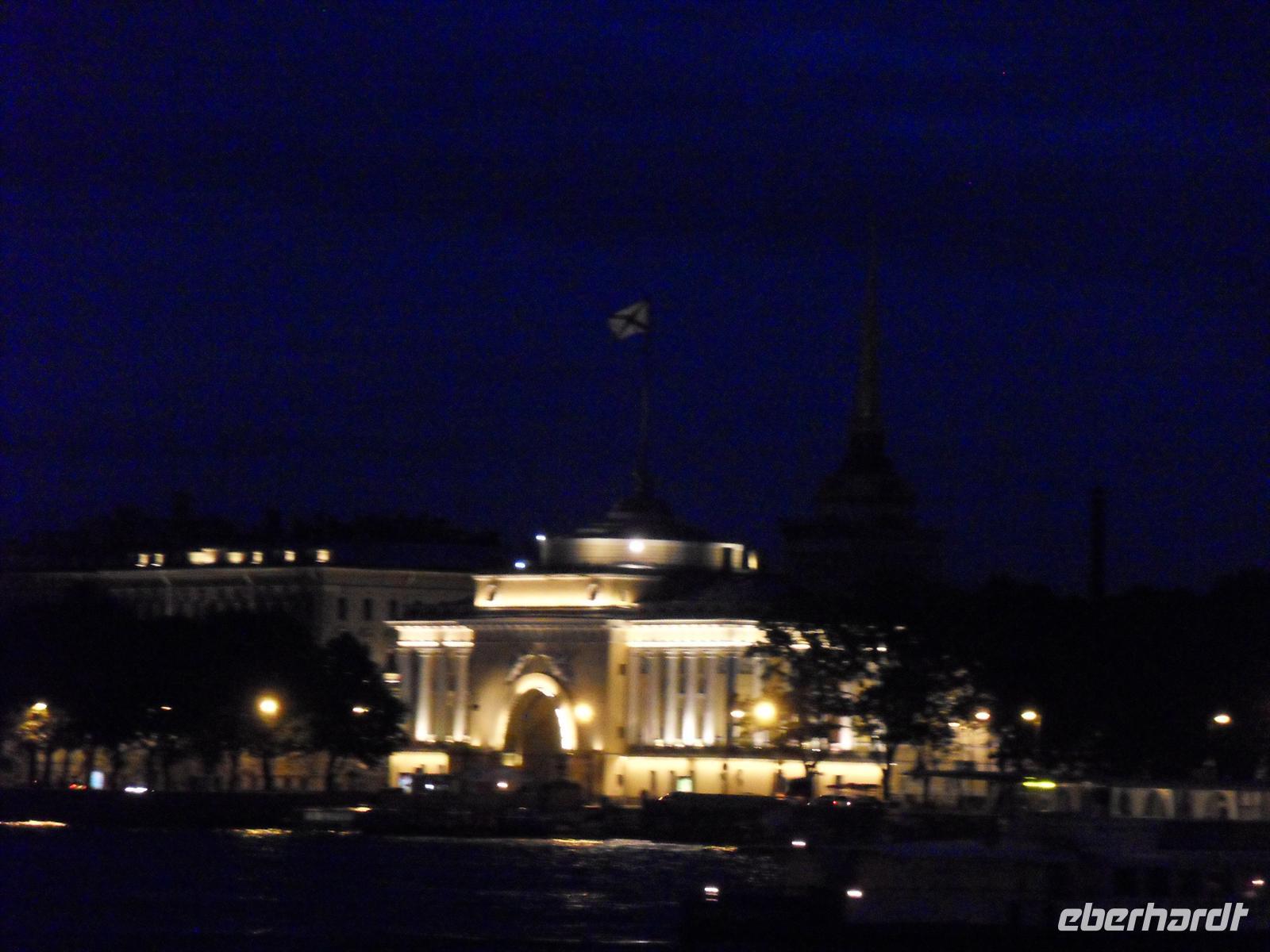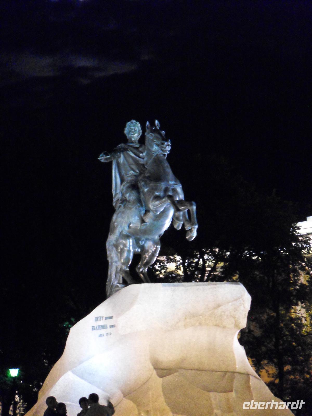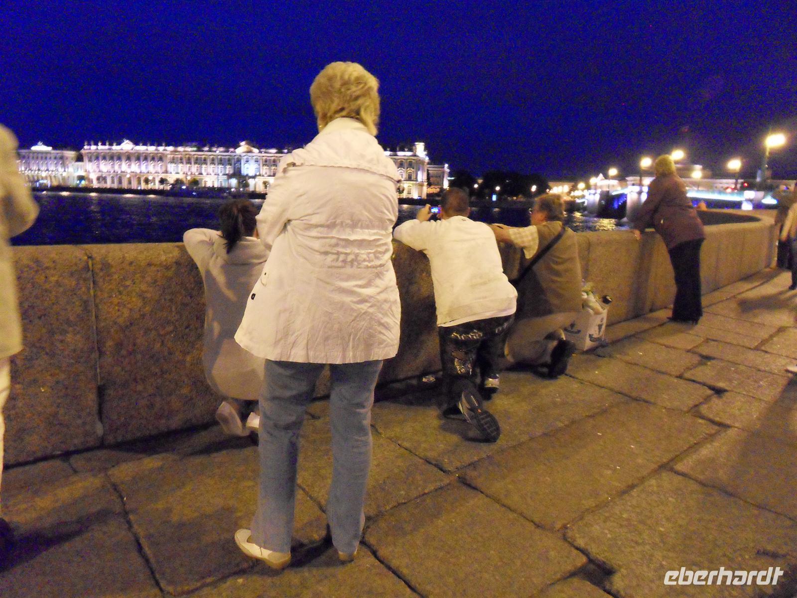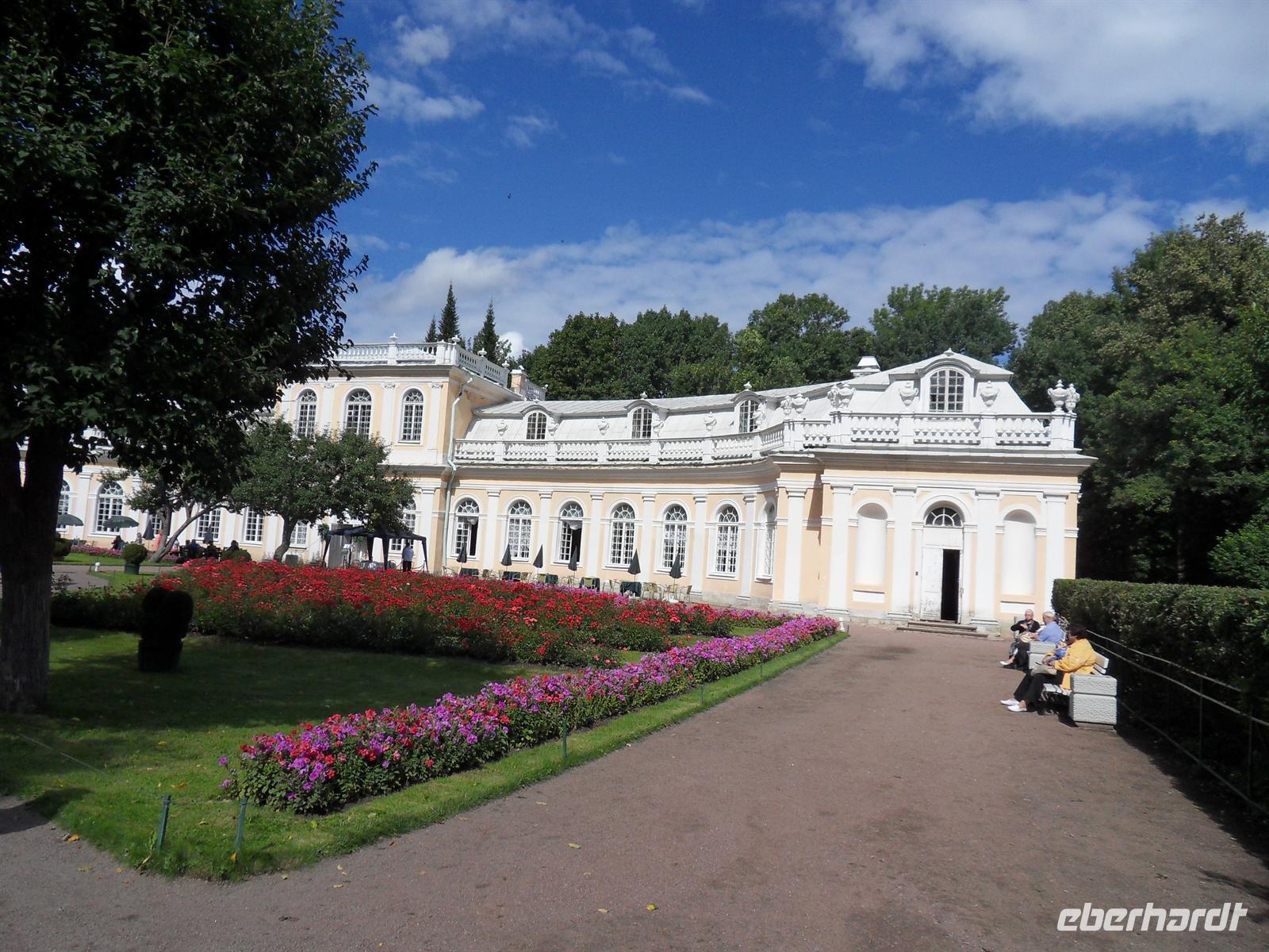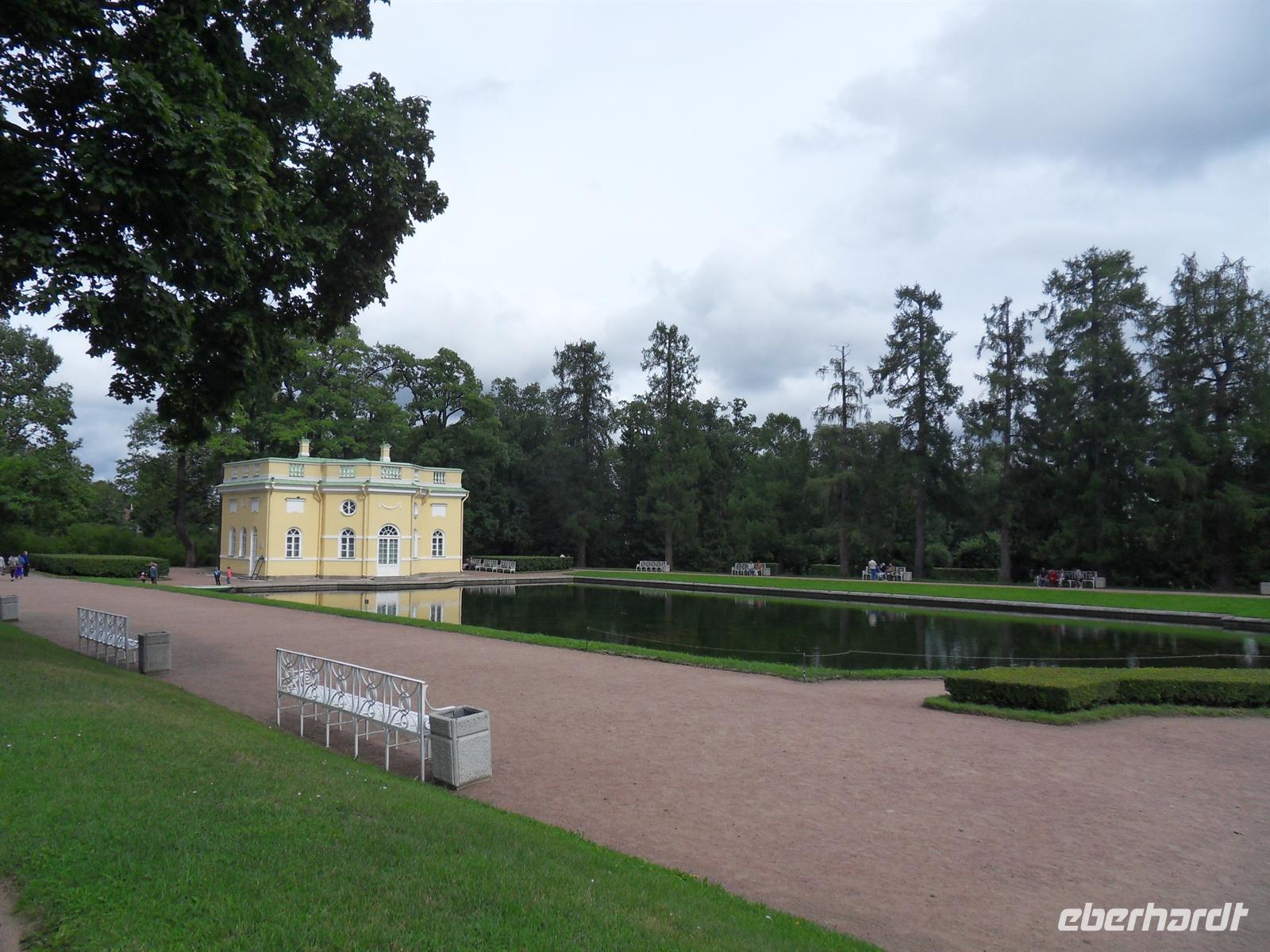 Danach spazierten wir durch die riesige Parkanlage mit ihren zahlreichen Wasserspielen und Fontänen. Zunächst gingen wir an der Großen Kaskade vorbei hinunter zum Finnischen Meerbusen und dem Schloss „Monplaisir“. Von hier aus konnten wir die goldene Kuppel der Isaak-Kathedrale am Horizont erkennen. Danach ging es weiter vorbei an wunderschön gepflegten Blumen, Hecken und Gartenanlagen zur Sonnenfontäne, den Vogelhaus und der Pyramidenfontäne. Unterwegs trafen wir auf ein paar Wasserspiele, die uns zum Teil etwas nass machten, je nachdem, ob man auf den falschen Stein getreten war. An der Schachbrettkaskade beendeten wir den gemeinsamen Rundgang, so dass wir uns an den Souvenirständen umschauen oder auf einen Kaffee in die Orangerie gehen konnten. Wer sich durch die basarähnlichen Stände voll mit Andenken kämpfen konnte, erreichte dann auch wieder unseren Bus, mit dem wir zurück nach St.Petersburg fuhren. Einige unserer Gäste fuhren aber auch mit dem Boot zurück nach St.Petersburg, was ca. 30 Minuten dauerte. Den Abend ließen wir dann nach einem Zwischenstopp im Hotel mit einer Lichterfahrt durch St. Petersburg ausklingen.