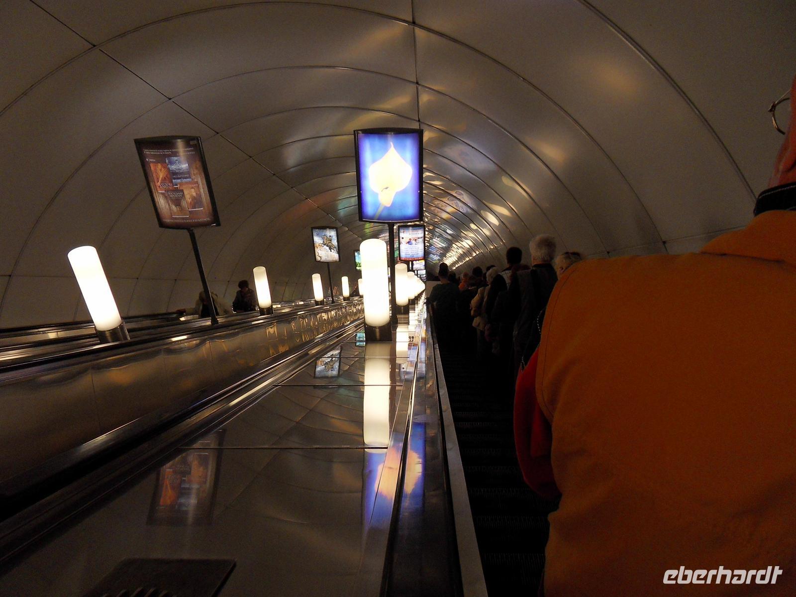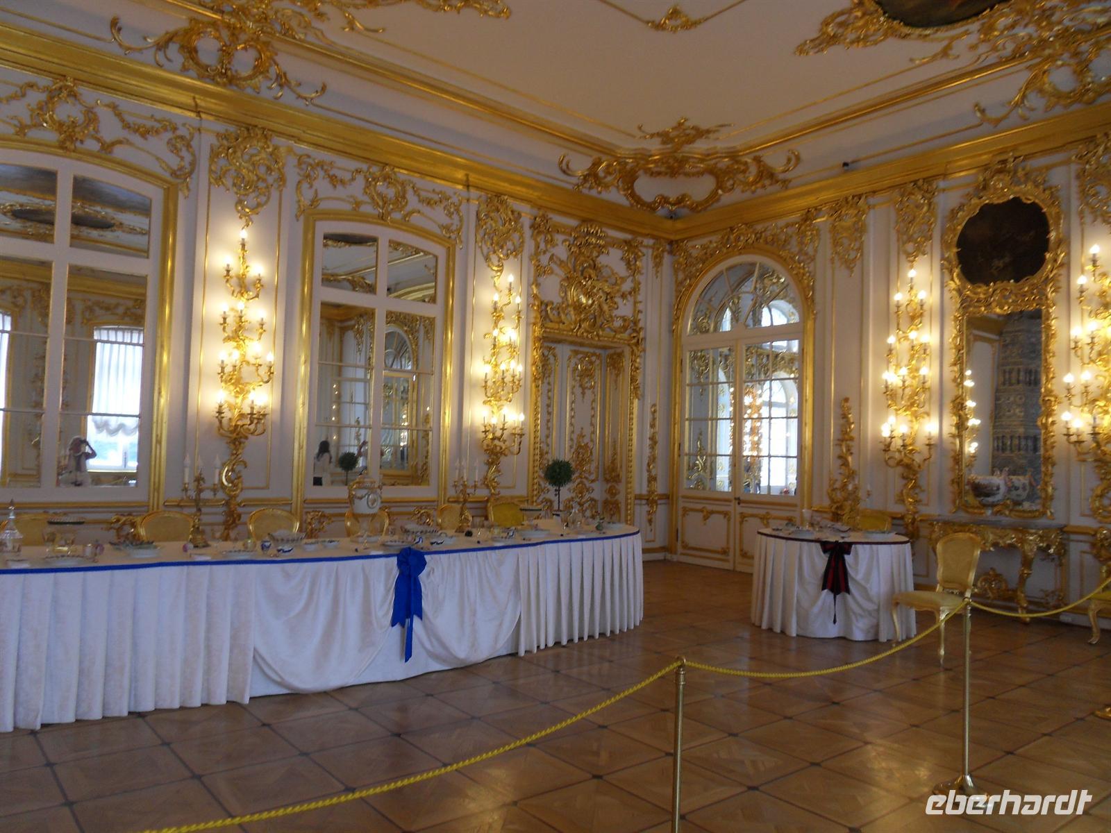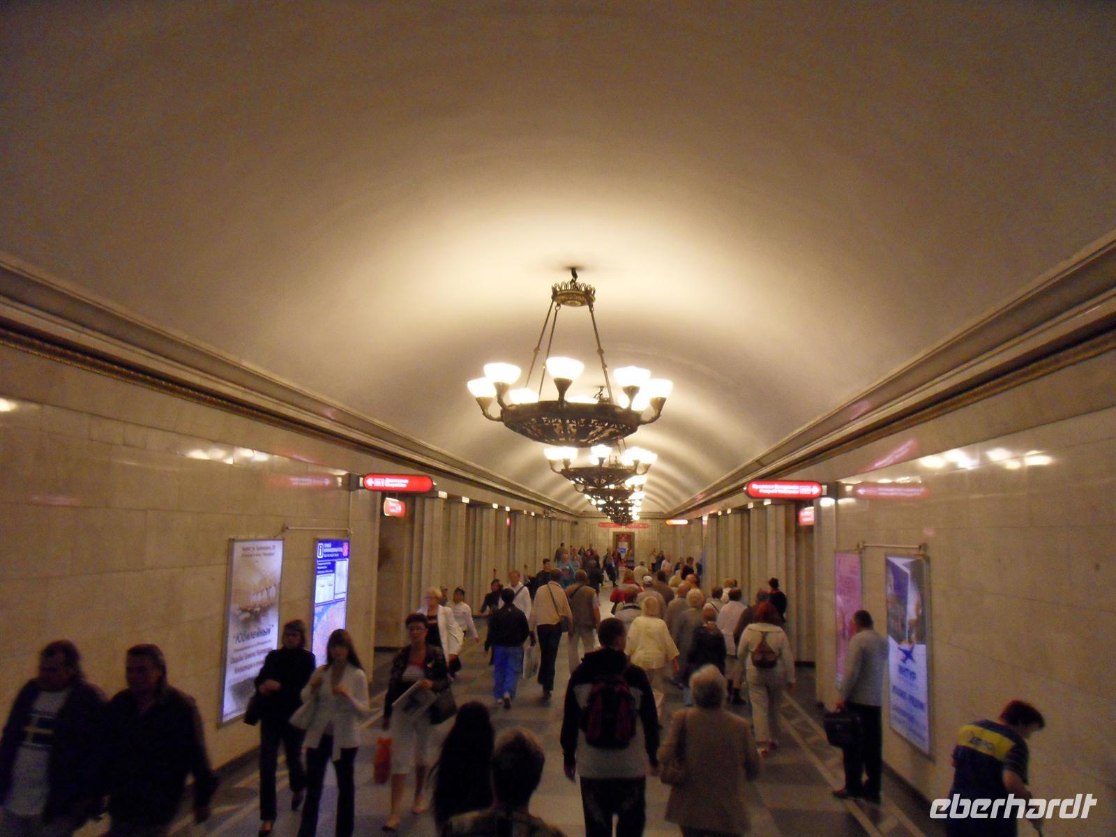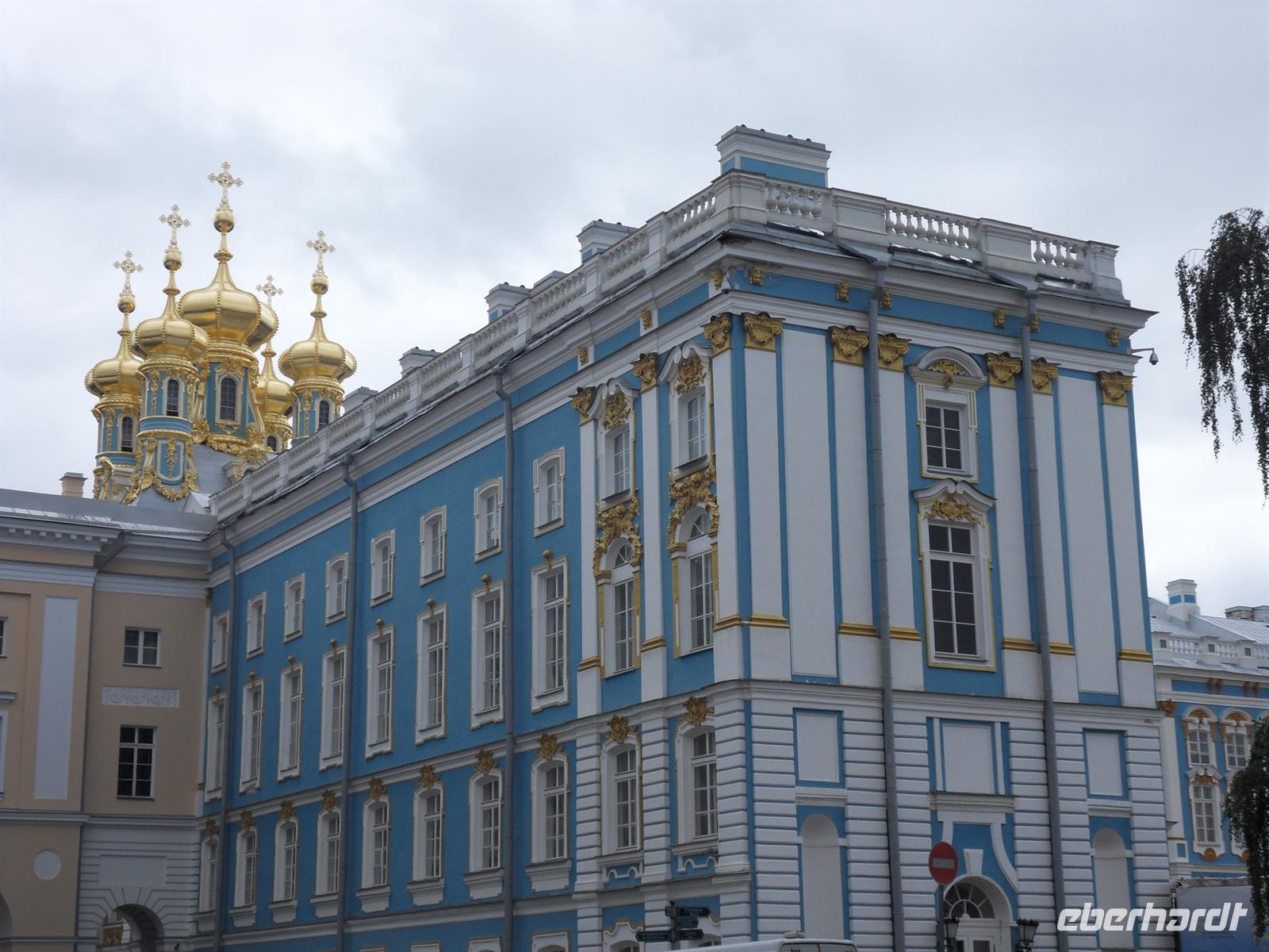 Als erster Programmpunkt stand heute der Besuch der Heilig-Blut- oder Auferstehungs-Kirche auf dem Programm. Diese mit farbenprächtigen Mosaiken gestaltete Kirche wurde an der Stelle gebaut, wo Zar Alexander II ermordet worden war. Danach besuchten wir eine typische Markthalle, in der viel frisches Obst und Gemüse, aber auch Fleisch, Fisch, Honig & Milchprodukte angeboten wurden. Gleich nebenan befindet sich die Metrostation „Vladimirskaya“, wo wir auf langen Rolltreppen in die Tiefe abtauchten. Nach der Metrofahrt wartete schon der Bus auf uns, der mit uns nun in Richtung Katharinenpalast und Zarskoje Zelo/ Puschkin fuhr. Unterwegs machten wir an einem Supermarkt Mittagspause, wo uns das Schnellrestaurant „Teremok“ mit leckeren, typisch russischen Blini oder Borschtsch beköstigte. Am Nachmittag besichtigten wir dann den Katharinenpalast, der einer der Lieblingsorte der Zarin gewesen war. Schon die gigantischen Ausmaße der Palastfront lässt uns staunen. Das „Versailles des Ostens“ beherbergt zahlreiche große Säle, aber auch Privatgemächer der Zarenfamilie. Absoluter Höhepunkt war aber für viele von uns sicher das Bernsteinzimmer, dass mit viel Liebe zum Detail nach altem Vorbild wieder hergestellt wurde. Interessant sind für uns aber auch die zahlreichen ausgestellten Exemplare von Meißner Porzellan, das wir nur in Vitrinen begutachten dürfen. Nach dem Besuch des Palastes spazieren wir noch kurz durch den Park, bevor wir wieder in unser Hotel fahren. Dort hatten wir noch etwas Zeit zum Ausruhen und „Frischmachen“, bevor wir uns am Abend zur Fahrt ins Restaurant St.Petersburg trafen. Mit leckeren Gerichten, Wein, Wodka und russischer Folklore ließen wir diesen erlebnisreichen Tag ausklingen.