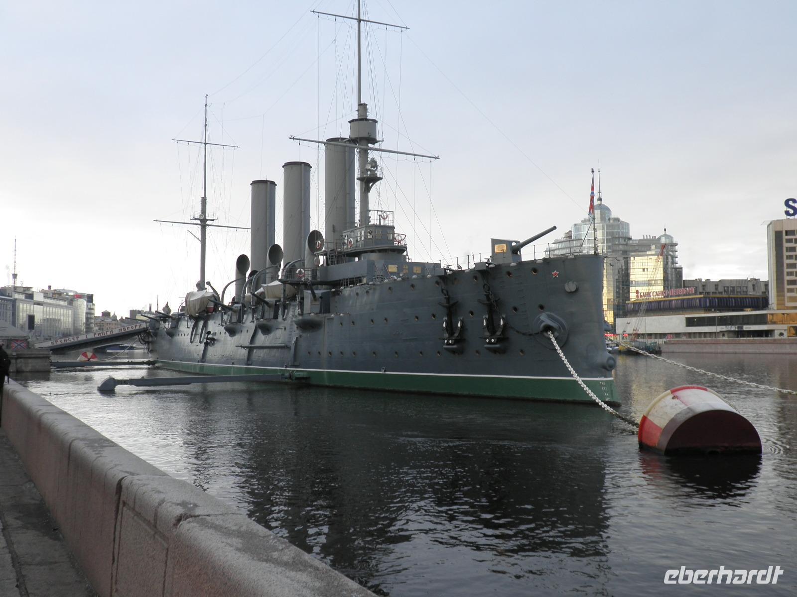 Panzerkreuzer Aurora. Mit dem Kanonenschuß der Aurora wurde eine neue Etappe in der Weltgeschichte eingeleitet. Die verbleibende Zeit bis zum Abendessen verbrachten fast alle Gäste mit einem Spaziergang am Finnischen Meerbusen, direkt hinter unserem Hotel.
