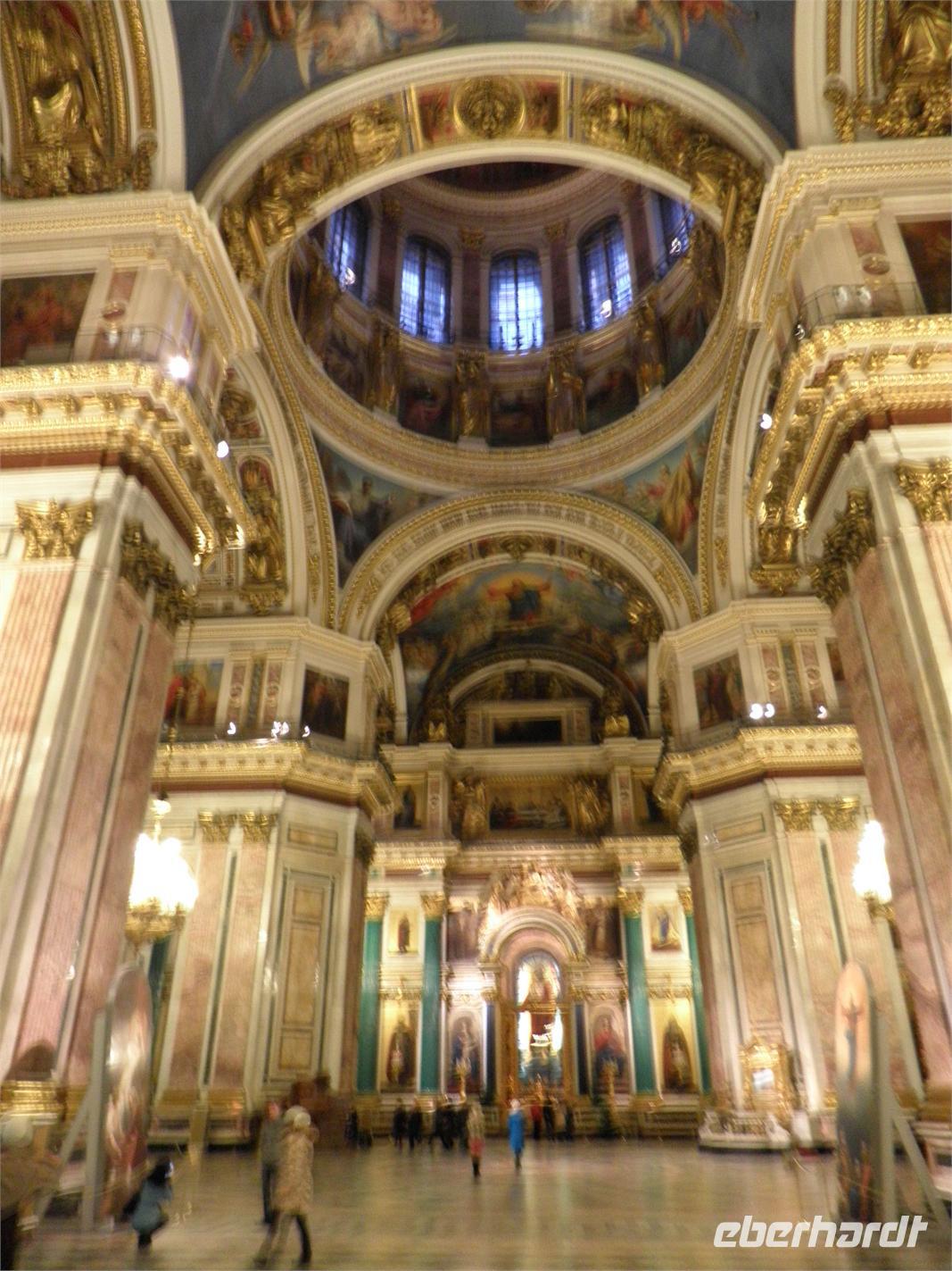 Wieder ein Tag mit vielen Höhepunkten. Gleich nach dem Frühstück ging es zur Isaak-Kathedrale. Die Kathedrale gehört mit zu den größten sakralen Kuppelbauten der Erde. So imposant wie sie von außen wirkt,ebenso beeindruckend ist auch ihre Innenausstattung. Nach der Besichtigung fuhren wir nach Puschkin zum Kaharinenpalast. Auf dem Weg nach Puschkin machten wir noch einen kurzen Abstecher zur Nikolaus-Marina-Kirche und zu der Tschesme-Kirche. Die Tschesme Kirche und der zugehörige Palast dienten den Zaren als Durchreisequartier auf dem Weg nach Puschkin. Die Besichtigung des